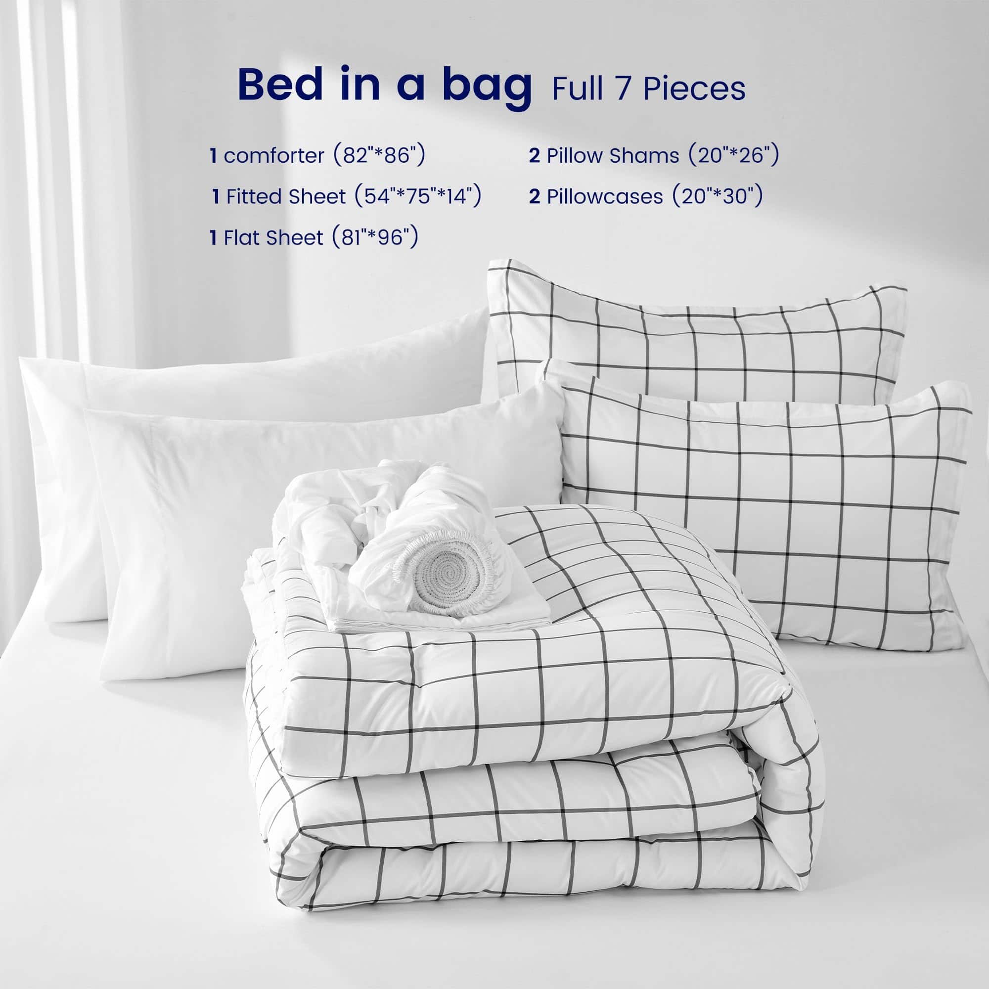 3. LO QUE PUEDE OBTENER – Este juego de cama completo incluye 1 Edredón (82″ x 86″) 1 Sábana Ajustable (54″ x 75″+14″) 1 Sábana Plana (81″ x 96″) 2 Fundas de Almohada (20″ x 26″) 2 Fundas de Almohada (20″ x 30″).