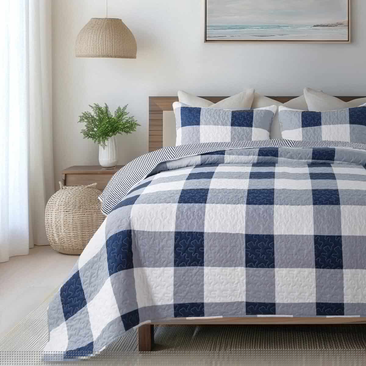 Dale un toque de encanto y versatilidad a tu hogar con el juego de edredones Checks and Stripes de Soul & Lane. Este edredón, con su diseño de cuadros buffalo, ofrece un confort caprichoso y de gran tamaño que seguramente captará la atención y traerá alegría a cualquier habitación. Diseñado para toda la familia y perfecto como regalo de compromiso, este conjunto de ropa de cama presenta un diseño de doble cara para múltiples opciones de estilo. En un lado, un patrón clásico de cuadros aporta una vibra rústica de granja, mientras que el patrón de rayas clásicas del otro lado ofrece una elegante simplicidad en azul y blanco, lo que hace que sea fácil cambiar el aspecto para adaptarse al gusto de cualquiera.