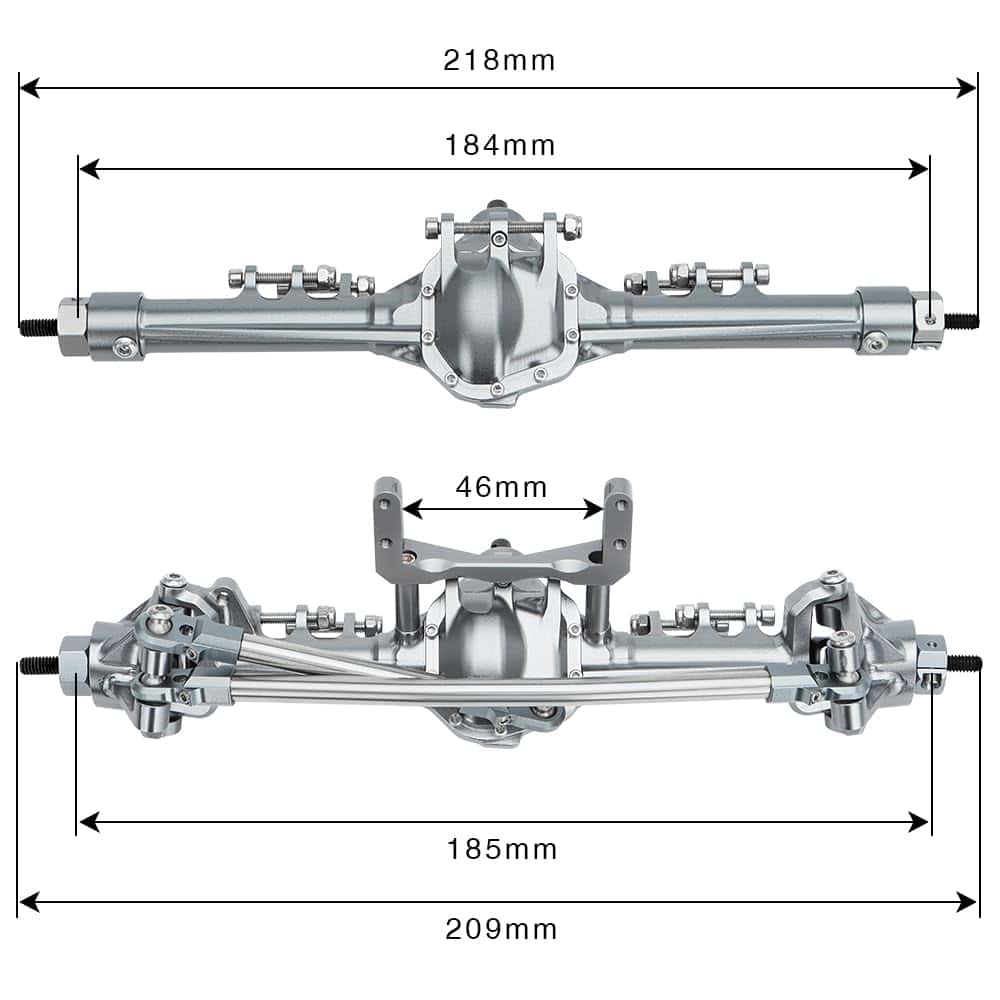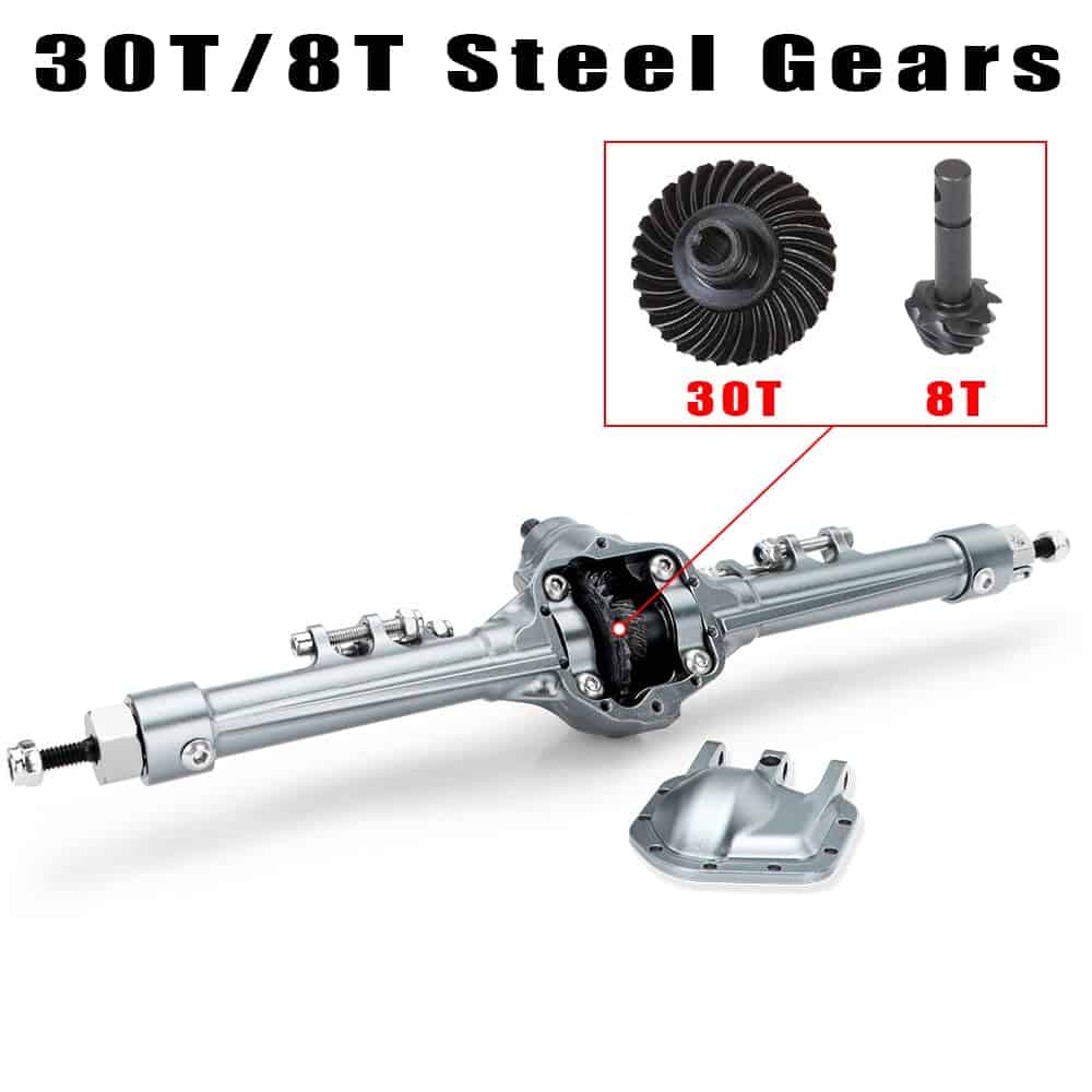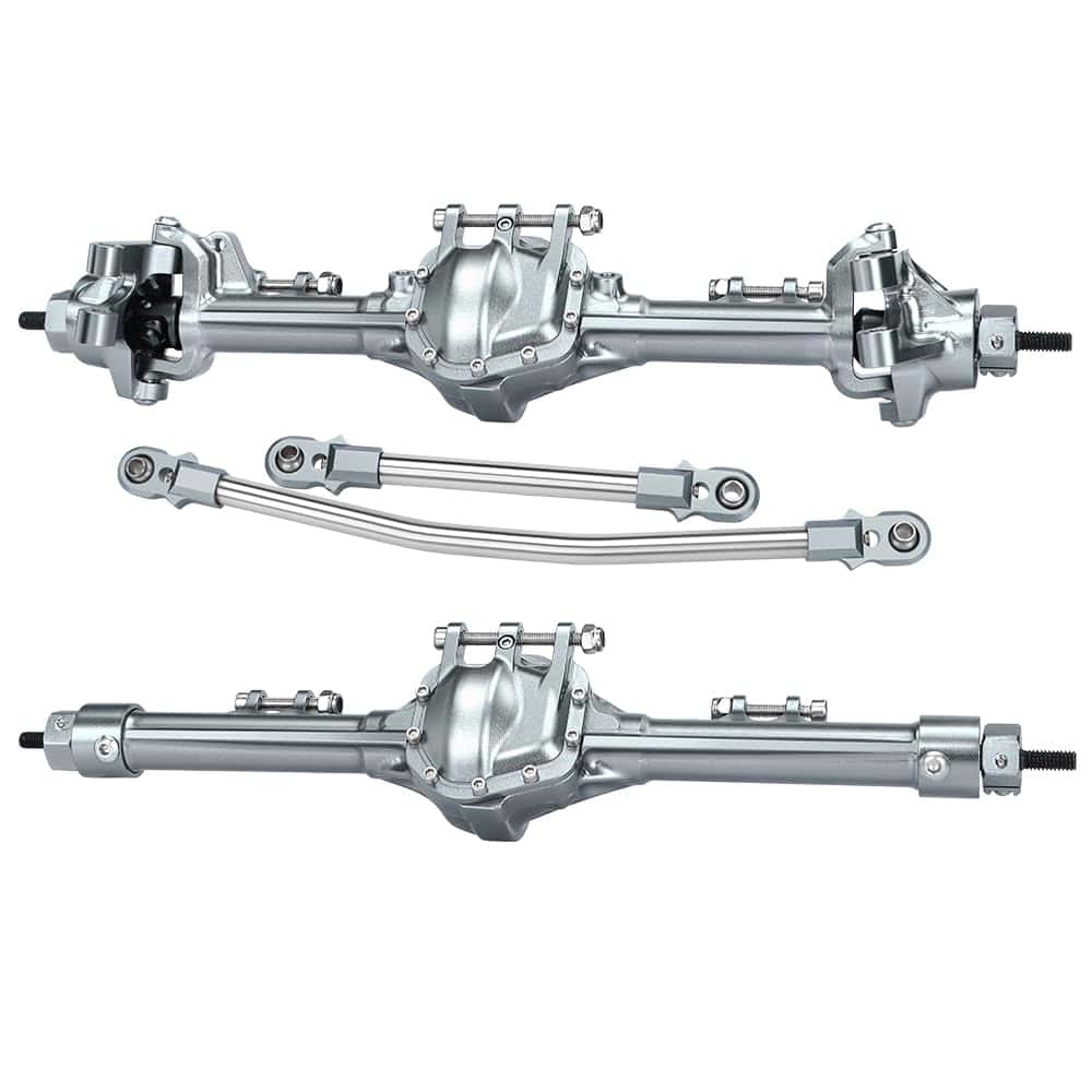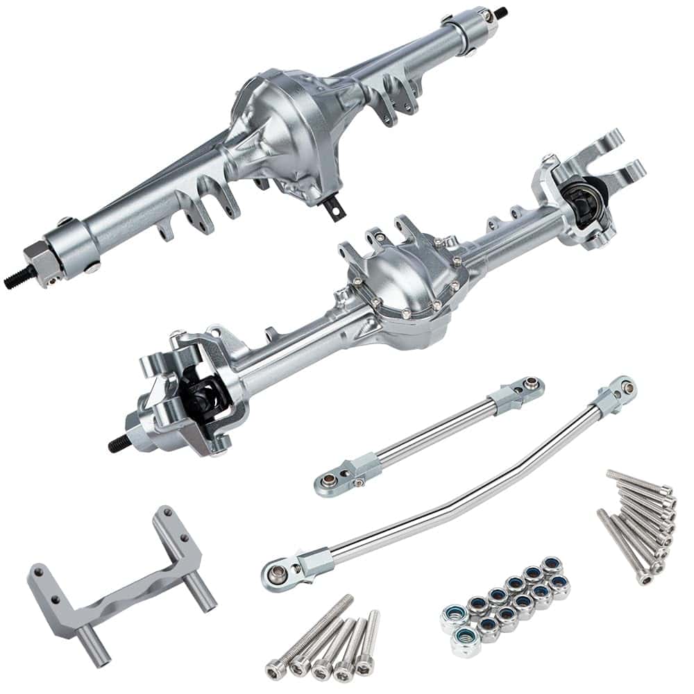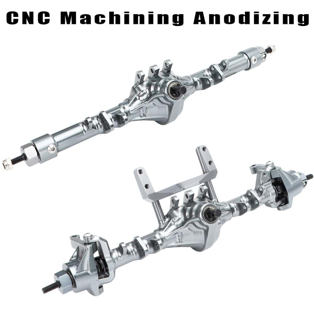 Especificaciones: Nombre del artículo: Ejes SCX10 I II de 1/10 (Delantero y Trasero) Alojamientos del Eje: Aluminio Material de los Ejes de Transmisión: Acero Material del Engranaje del Eje: Acero Relación de Engranajes: 30T/8T (3.75:1) Color: Titanio Peso: 240g Delantero, 157g Trasero Adecuado para Axial SCX10 I II 90046 90047 Lista de paquetes: 1 Eje Delantero, 1 Eje Trasero, 1 Enlace de Dirección, 1 Montaje de Servo, 1 Kit de Tornillos