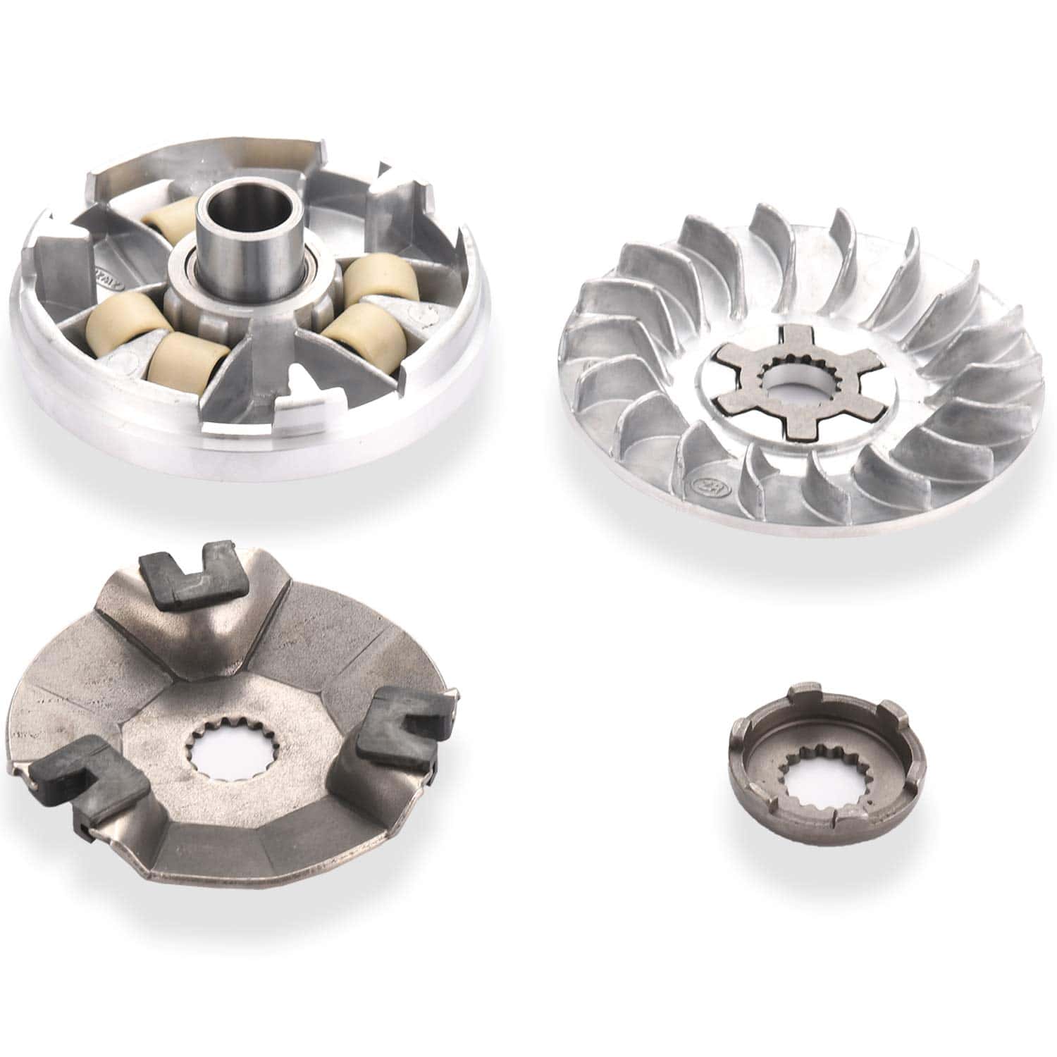 CLEO Jog 90cc clutch set incluye ensamblaje de embrague y ensamblaje de variador con correa 788, apto para motores 50cc 90cc 2 tiempos 1PE40QMB 1E50QMF Minarelli Jog. Este kit de embrague ahorra tiempo en su elección al satisfacer sus necesidades de transmisión, eliminando la búsqueda del modelo correcto y el riesgo de comprar el modelo incorrecto. Recibirá 1 ensamblaje de embrague, 1 ensamblaje de variador y 1 correa 788, solo necesita confirmar el motor o modelo correspondiente. Estas tres piezas son aplicables en juegos. El embrague de alta calidad es el embrague trasero de tres zapatas comúnmente utilizado en motores de 50cc 2 tiempos. Se ajustará a muchos motores 90cc 1E50QMF JOG90/JOG50 con 15 dientes/estrias. Viene completo con polea de transmisión, polea, muelles, embrague y campana de embrague. La correa está hecha de materiales altamente resistentes al calor y de alta resistencia. El parámetro clave de la correa es 788x17x28, proporcionando una mayor durabilidad para las aplicaciones. El ensamblaje de variador para Jog 90cc es nuevo, con rodillos para motores 49cc/50cc o algunos motores 90cc Minarelli Jog 1PE40QMB 2 tiempos. El variador de 21mm tiene 15 dientes. La arandela es de estrias y el orificio central del ventilador es de 16mm; el casquillo es de 21mm x 39mm.
