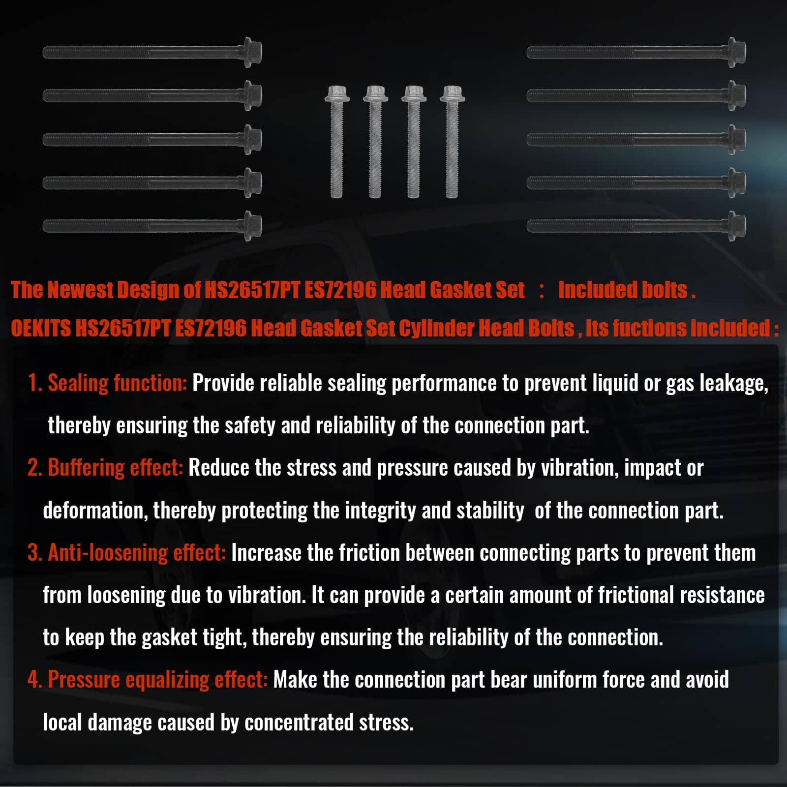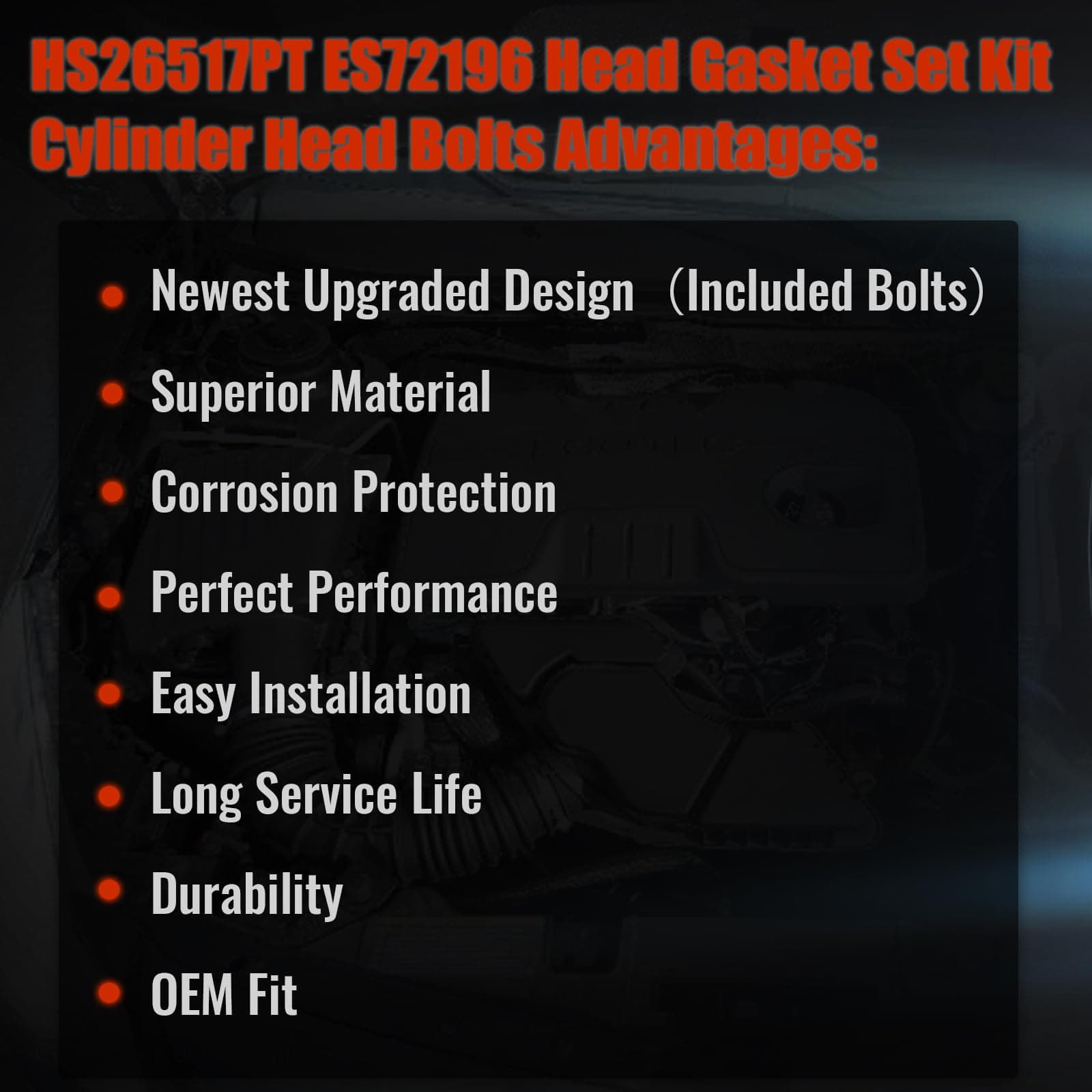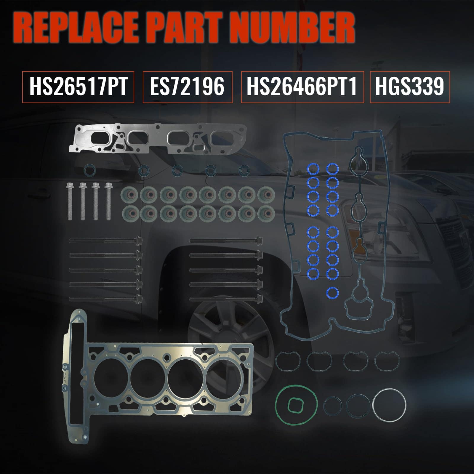 1. Número de OE HS26517PT ES72196 Juego de empaquetadura de culata con pernos de culata de cilindro de repuesto: HS26517PT, ES72196, HS26466PT1, HGS339.