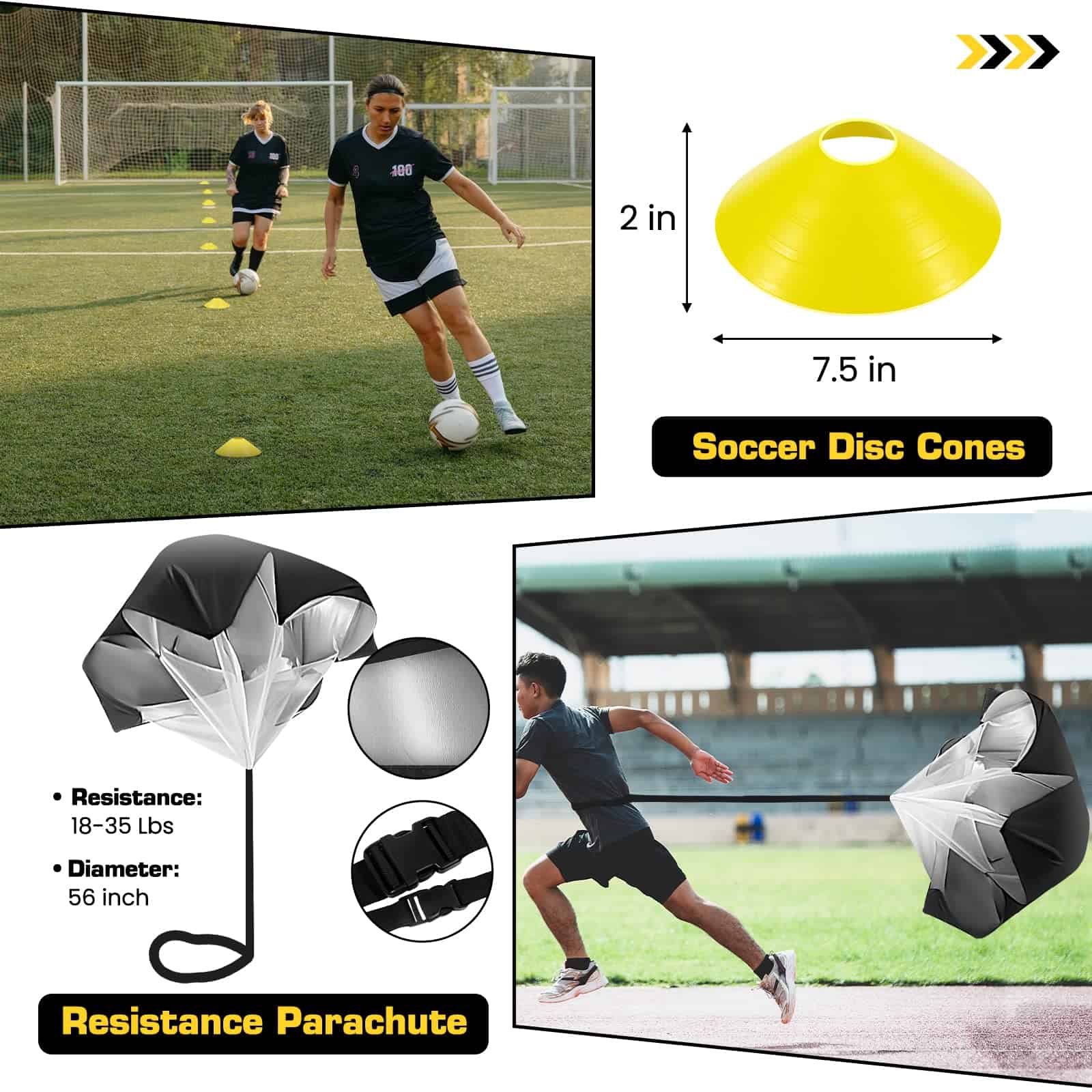3. Paracaídas de resistencia para mayor dificultad: el paracaídas de resistencia incluido tiene un cinturón de nylon resistente que se puede envolver alrededor de tu cintura. Puede producir una resistencia de 18-35 lbs mientras corres, construyendo velocidad y resistencia.