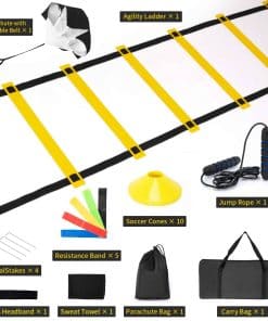 Este juego de equipos de entrenamiento de fútbol es adecuado para personas de todas las edades, incluidos niños, jóvenes, atletas, niños, entrenadores y entusiastas del deporte y la actividad física. El set de entrenamiento de velocidad de escalera de agilidad mejora la fuerza, agilidad, velocidad, coordinación y flexibilidad, aumenta la velocidad, la fuerza y la resistencia de las piernas y mejora la agilidad y coordinación del cuerpo. Fácil de llevar, ideal para varios ejercicios de entrenamiento de piernas en fútbol, baloncesto y béisbol. Viene con una bolsa de transporte de alta calidad para facilitar el transporte. Entrena en casa, en el patio trasero, en el estadio, en el parque, en el gimnasio o donde elijas. Ofrecemos un servicio satisfactorio, si tienes alguna pregunta o inquietud sobre nuestro equipo de entrenamiento de velocidad de escalera de agilidad en 180 días, contáctanos, estaremos encantados de ayudarte.