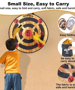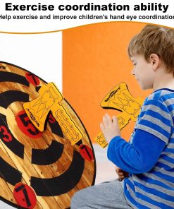 ¡Perfecto para jugar en exteriores e interiores! El gancho con ventosa y el gancho para colgar en la puerta te brindan opciones flexibles para colgar el blanco. Es como jugar a los dardos, solo que con hachas de espuma, convirtiéndolo en una actividad estupenda durante todo el año. Este juego puede desarrollar una mejor coordinación mano-ojo y mantener un seguimiento de la puntuación puede ayudar a reforzar conceptos matemáticos. ¡Llévalo contigo a todas partes! Apilable con facilidad, todo el set cabe fácilmente en la bolsa de viaje, ligero y conveniente para llevar a cualquier lugar. ¡Haz diana! Cada una de las dos cuchillas de hacha de espuma incluidas están cubiertas con una tira de cierre de gancho y bucle que se adherirá al blanco en forma de tronco de árbol al contacto. Cada anillo en el blanco vale 1, 2, 3 o 4 puntos y el objetivo es acercarse lo más posible al rojo. ¡El ojo del toro vale 6 puntos!