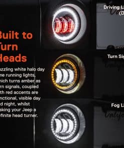 p strong La Aventura Nunca Se Vio Tan Bien Nadie mira un Jeep y piensa qué es eso ; no hay duda de que es un Jeep. Y con un juego de faros con halo de Online LED Store, nadie preguntará de quién es ese Jeep , es tu Jeep. Con un diseño único de halo blanco sobre negro, DRLs y luces de giro amarillas en los faros y luces de niebla, y luces de acento rojas en los faros de niebla, estas luces se destacan entre la multitud. strong Resistente como una Roca Un Jeep es más que solo otro vehículo, es una expectativa. Una expectativa de capacidad inigualable, resistencia y rendimiento. No subestimes tu Jeep con un juego de luces LED débiles. Nuestras luces están construidas para resistir. Con clasificación IP67, carcasas de aluminio, lentes resistentes a impactos y disipadores de calor integrados, estas luces son tan resistentes como los Jeeps que protegen. strong Sal del Garaje más Rápido Estas luces fueron diseñadas por personas que aman los Jeeps para personas que aman los Jeeps y sabemos que te gustan los senderos difíciles y las instalaciones fáciles, por lo que diseñamos nuestras luces para ser reemplazos exactos de tus luces de fábrica. Incluso integramos un chip CAN bus en los faros para eliminar el parpadeo e incluimos arneses adaptadores para minimizar la cantidad de trabajo necesario para volver a la carretera. strong Qué se Incluye (2) Faros de Niebla Redondos de 4″ 30W 6,500K con Luces de Giro y DRL de Halo /p ul li (1) Faro de Niebla de 4″ (1) Conector H16 (1) Juego de Cables de Extensión p (2) Faro de 7″ JEEP HALO Luces de Giro Ámbar – NEGRO /p ul li (1) Reemplazo de Faro JEEP HALO (1) Cables de Extensión (1) Convertidor H4-H13 (1) Manual de Instrucciones