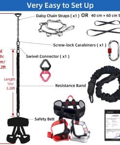 Las cuerdas de estiramiento de yoga de alta resistencia están hechas de látex de alta resistencia, buena recuperación, alta elasticidad, resistentes, anti-envejecimiento, las bandas de resistencia de fitness de bungee son perfectas para el ejercicio aéreo. Importante: Este set de baile con bungee es solo para fitness en interiores, NO para deportes extremos. Certificación de seguridad y pruebas de resistencia, para que puedas realizar con confianza entrenamientos de alta intensidad y cardio de bajo impacto y ejercicios que incluyan pliometría. Aumenta tu agilidad, mejora la velocidad de tu carrera, aumenta tu equilibrio y diviértete haciendo trucos que desafíen la gravedad. Puedes llevar un Set de Equipo de Fitness con Bungee Yoga a cualquier lugar que tenga una barra de dominadas, viga o rama de árbol sólida, en casa, afuera, en el gimnasio o en el estudio de yoga, fácil de instalar en interiores o exteriores. Este kit completo de fitness con bungee incluye 1 Giro, 1 Mosquetón, 1 Arnés, 1 Cuerda de Bungee, 2 bandas (40cm & 60cm), 11.1m Daisy Chain. Nos esforzamos por ofrecer el mejor servicio al cliente posible y los productos de mayor calidad. Por favor, contáctanos si necesitas asistencia o tienes alguna pregunta, ¡estamos aquí para ayudarte!