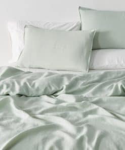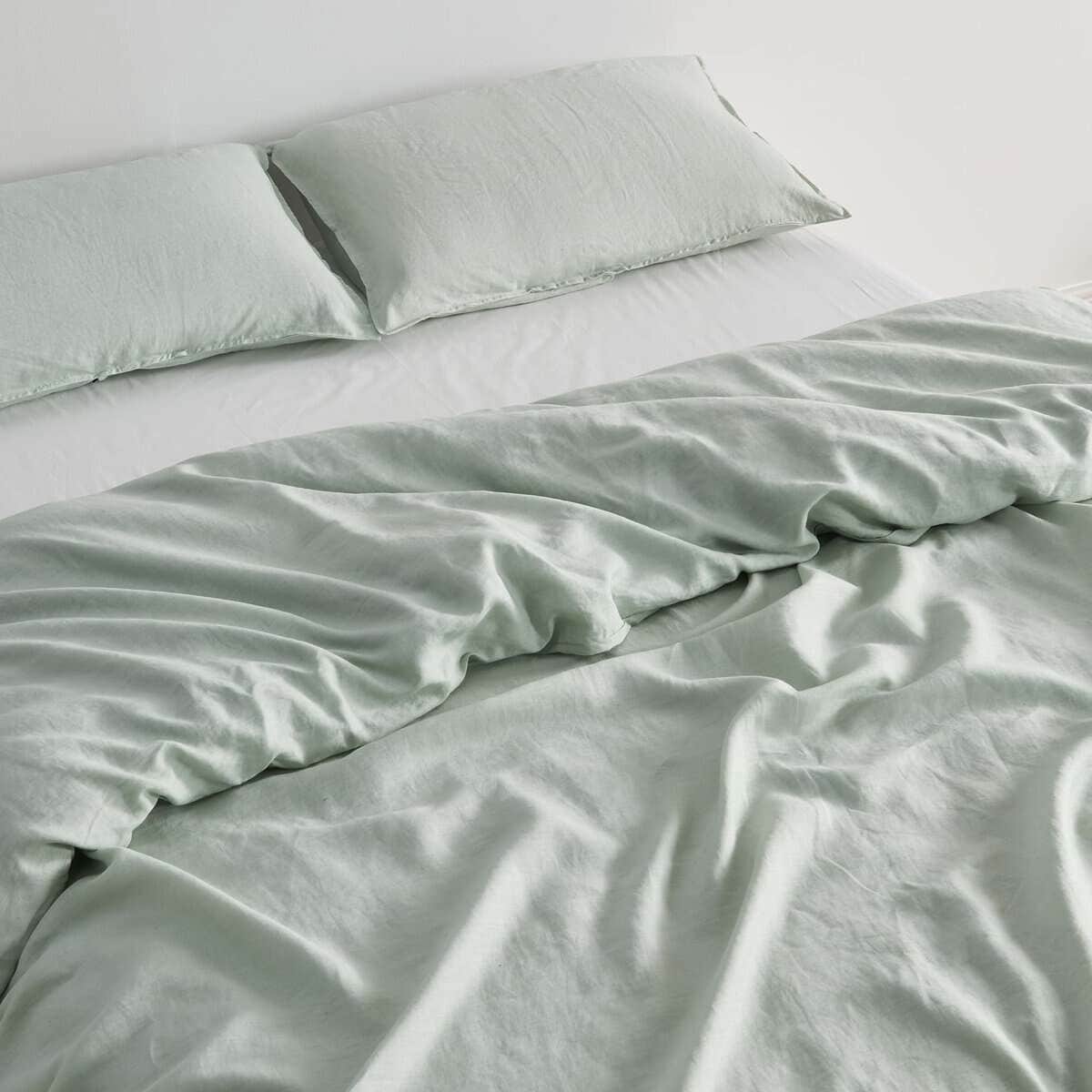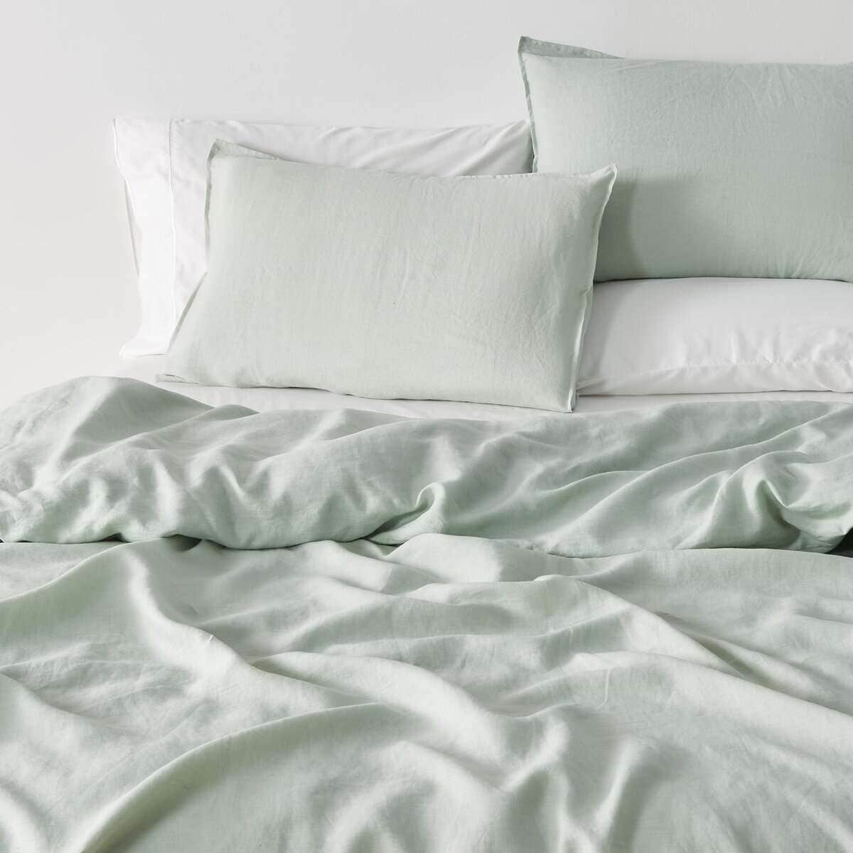 Juego de funda de edredón naturalmente relajado para tu estética de vida. Este juego de funda de edredón y de almohadas está certificado 100% Lino Europeo y fabricado éticamente en Pakistán; están hechos para sentirse bien. El lino es naturalmente absorbente de la humedad y regulador de la temperatura, diseñado para ayudarte a mantenerte fresco en verano y cálido en invierno, el set ideal para cada estación. Con lazos en las esquinas y cierre de cremallera en el edredón, y cierre de sobrecapa en las almohadas, este set hace que hacer la cama sea fácil. Con una variedad de colores en tonos terrosos, encuentra el color perfecto para complementar tu ropa de cama. Este juego de funda de edredón está certificado OEKO-TEX Standard 100 y BSCI (Business Social Compliance Initiative).