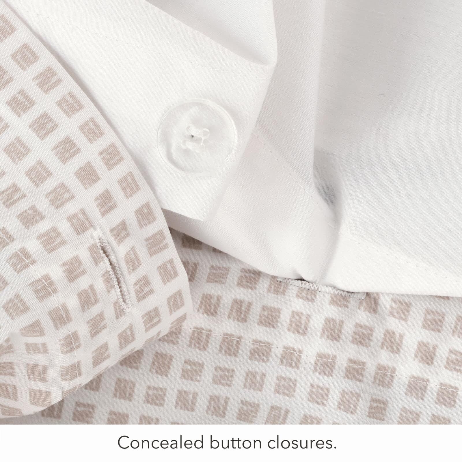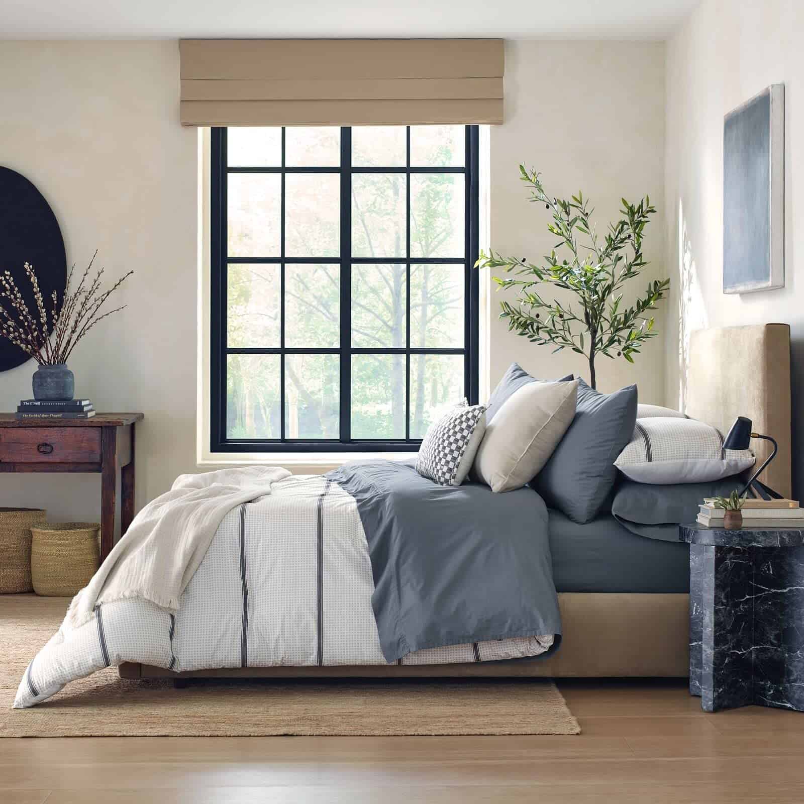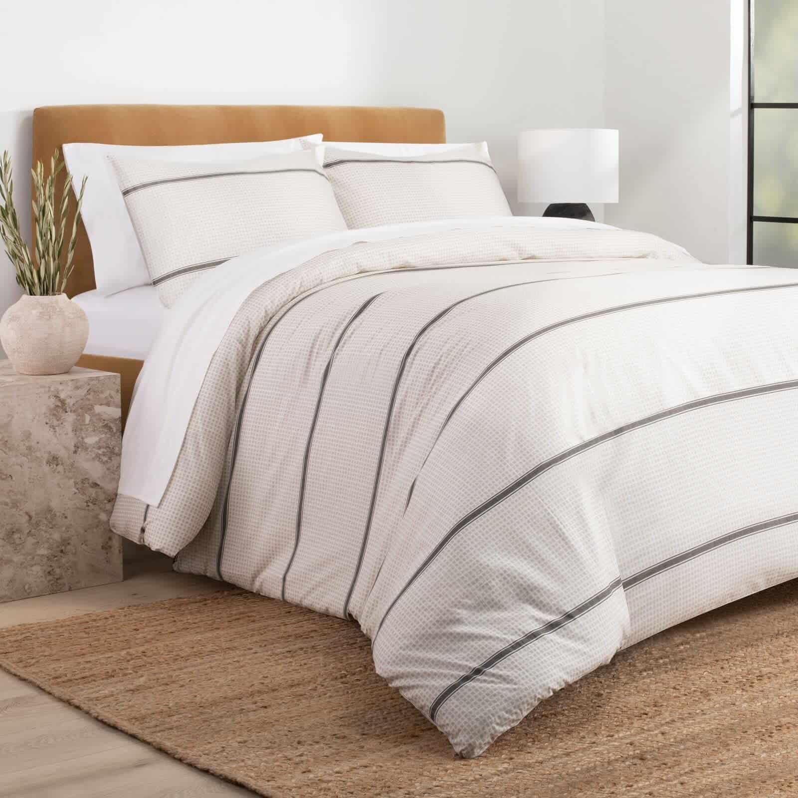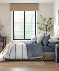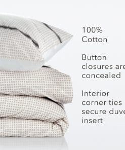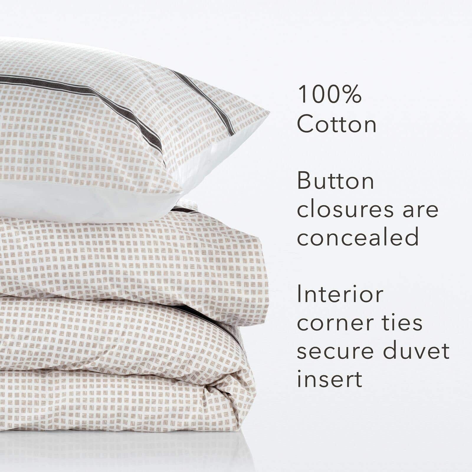 Compra el look: Estos son los artículos adicionales que se muestran en la foto de estilo de vida; Juego de Sábanas de Seda de Algodón en Azul (B0BSRF5G7D); Almohada Decorativa de Terciopelo de Algodón en Beige (B0BQP7BKG9); Almohada Decorativa de Bloques Impresos en Gris Oscuro (B0BSVVDCSL); Manta Matelasse de Borlas en Marfil (B0BQ8HMVJJ); Usa el número entre paréntesis para ir al listado en nuestra tienda; Desplázate hacia abajo para obtener más información. Detalles finos: El juego de 2 incluye 1 funda de edredón y 1 funda de almohada estándar/queen; Este juego de funda de edredón de 100% algodón y 250 hilos es increíblemente suave y duradero; El set es ligero y tejido de forma ajustada para ser fresco al tacto – perfecto para los que duermen calientes; Los lazos en las esquinas evitan que la ropa de cama se mueva; Los cierres de botones ocultos no se enganchan en mantas o ropa; Las fundas de almohada presentan un cierre de solapa central de 4 pulgadas que mantiene las almohadas guardadas; La funda de edredón y las fundas de almohada muestran un acabado impecable y elegante. Crea tu historia única: La ropa de cama es una forma sencilla de añadir un toque personal a tu espacio; La paleta de colores neutros crea la base de ropa de cama perfecta; Combina esta funda de edredón con sábanas, un edredón, mantas, y almohadas de la colección Nate Home para un look elegante; Integrar tus patrones, telas e impresiones favoritos crea textura y añade un toque elegante a tu dormitorio; Explora toda la colección en nuestra Tienda de la Marca Nate Home. Material + Cuidado: Hecho con fibras de algodón premium al 100% con un estampado; 250 hilos; Cuidado: Lavable a máquina; Sigue las instrucciones de cuidado de la etiqueta para obtener los mejores resultados; CERTIFICADO OEKO-TEX: Este producto está certificado por el Estándar 100 de OEKO-TEX; Todos los textiles hechos en una fábrica OEKO-TEX Standard 100 cumplen con los estándares de seguridad y ambientales y están libres de productos químicos dañinos y sustancias. Medidas: Funda de Edredón 68″ x 94″; Cada Funda de Almohada Estándar/Queen 20″ x 26″; Puede haber ligeras variaciones de color entre la imagen del producto y el producto debido a diferencias en los ajustes del monitor y dispositivo. Nos esforzamos por asegurarnos de que nuestras imágenes muestren el producto lo más precisamente posible.