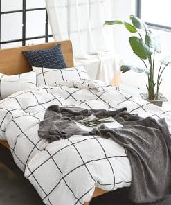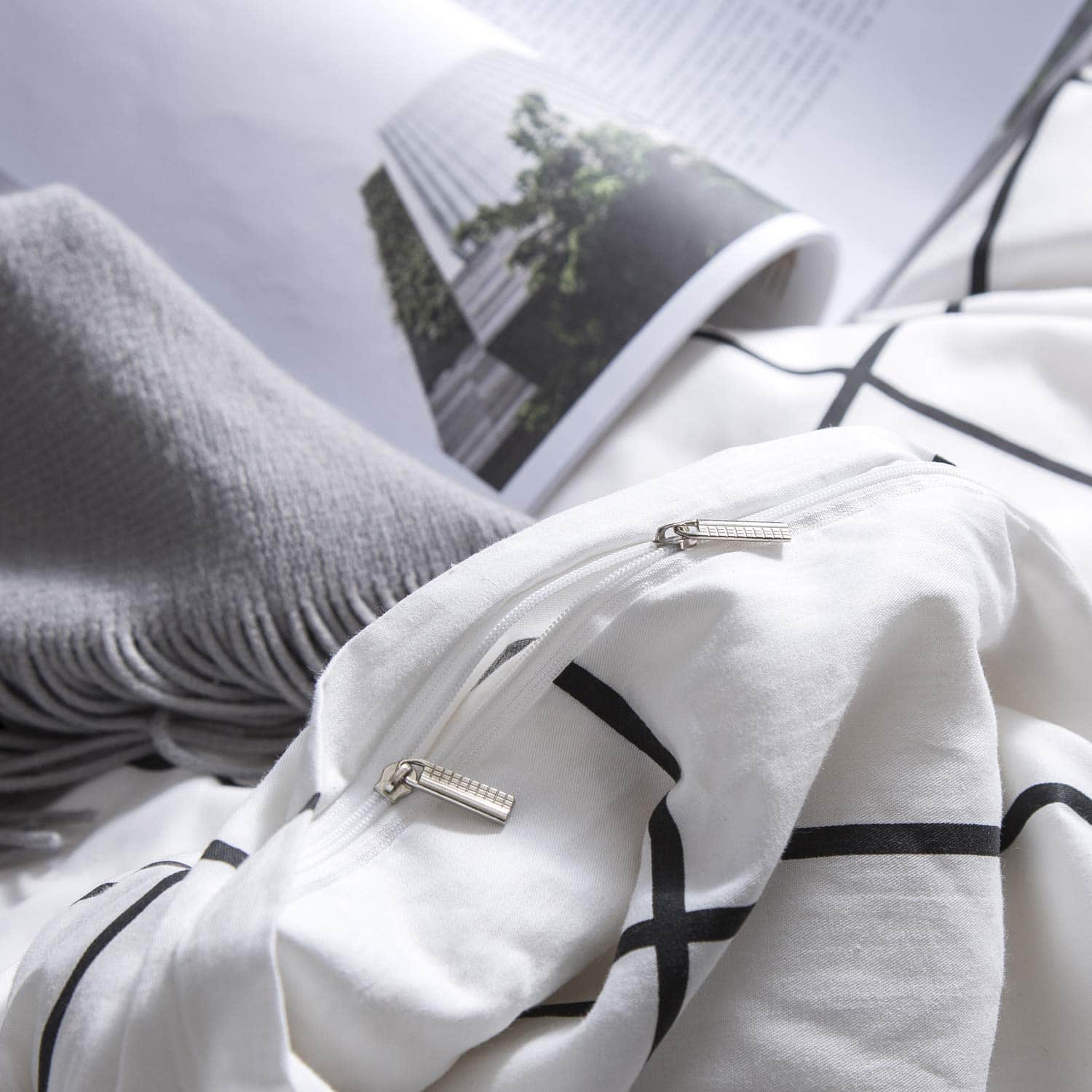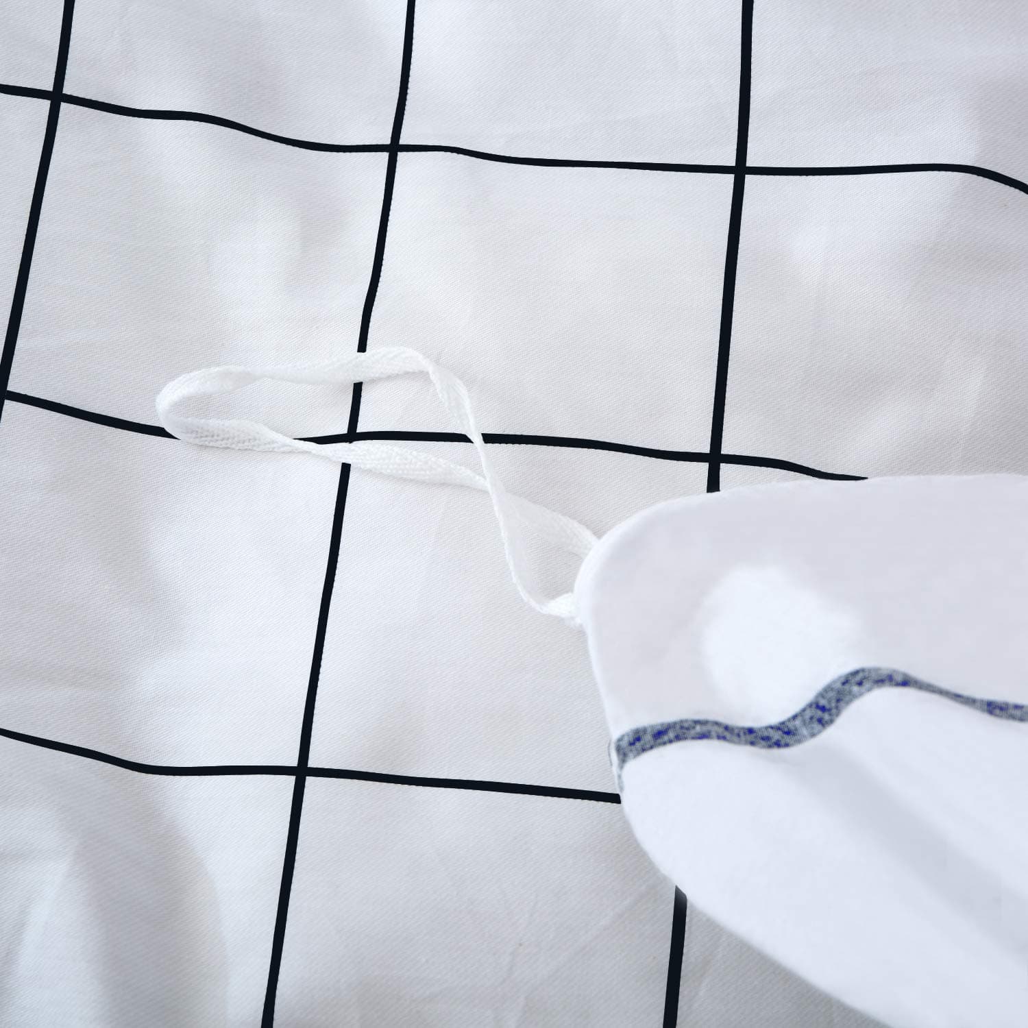 Conjunto de ropa de cama de alta calidad en blanco y negro a cuadros que incluye una funda de edredón de reina (90″ x 90″) y dos fundas de almohada estándar (20″ x 26″). El diseño moderno de cuadros blancos y negros hace que su habitación sea simple y cálida. La funda de edredón a cuadros viene con cierre de cremallera y cuatro lazos en las esquinas para sujetar su inserto. Las dos fundas de almohada tienen cierre de sobre. Es un buen regalo para cumpleaños, festividades especiales, Día de Acción de Gracias y más. Se puede lavar a máquina en frío, por separado y con ciclo suave. No usar lejía. Secar en secadora con ciclo suave y sin calor. Darle la vuelta para lavar, agitar antes de ponerlo en la secadora y no dejarlo al sol para evitar que se decolore. Ofrecemos un servicio de atención al cliente las 24 horas y garantía de por vida. ¡Gracias por elegirnos!