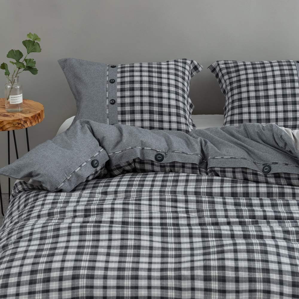Juego de Funda de Edredón a Cuadros de Búfalo en Blanco y