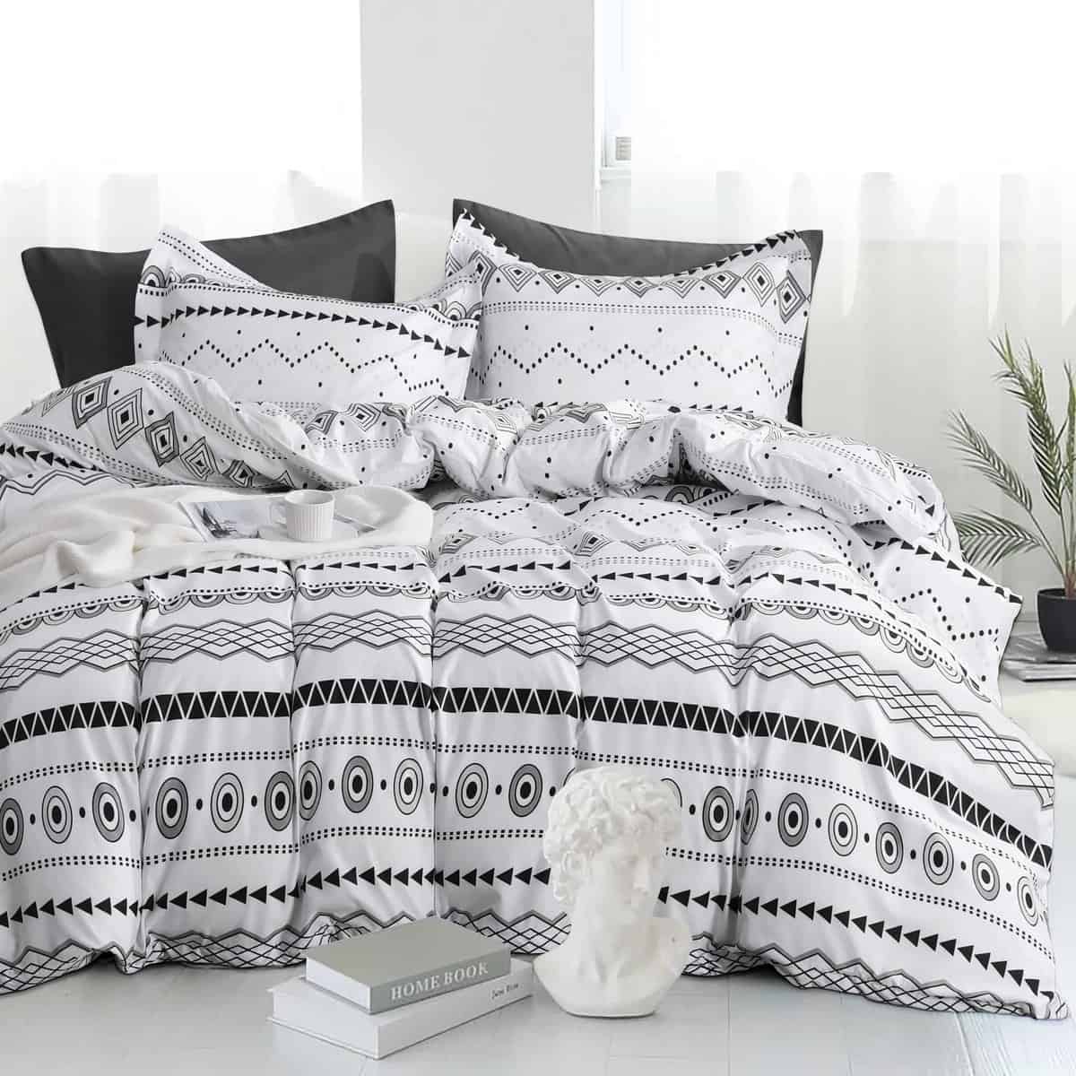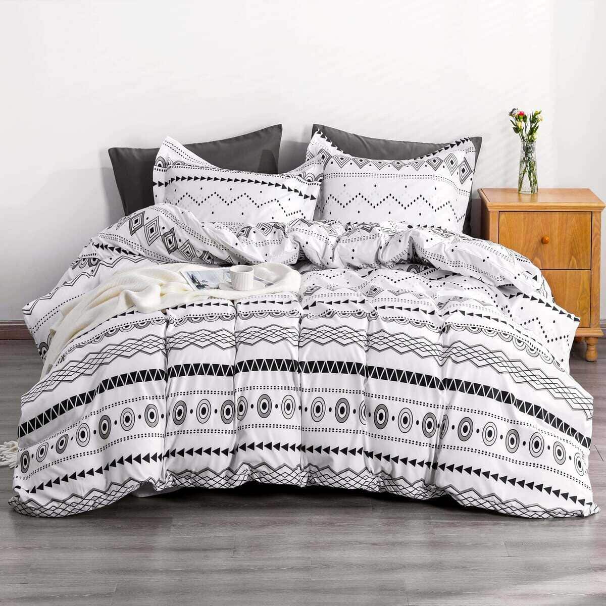 La funda de edredón única le da a tu dormitorio una decoración elegante, adecuada para cualquier habitación de la casa, dormitorio, habitación de invitados, habitación de niños, habitación de vacaciones, haciendo que tu dormitorio parezca sacado de una revista. Esta funda de edredón ultra suave te mantiene cómodo toda la noche y protege tu edredón, duvet o cobija del polvo y la suciedad para que puedan durar años. Incluye: Tamaño Matrimonial: 1 x Funda de Edredón (68 x 90 pulgadas) + 1 x Funda de Almohada (20 x 26 + 2 pulgadas) Tamaño Queen: 1 x Funda de Edredón (90 x 90 pulgadas) + 2 x Fundas de Almohada (20 x 26 + 2 pulgadas) Tamaño King: 1 x Funda de Edredón (104 x 90 pulgadas) + 2 x Fundas de Almohada (20 x 36 + 2 pulgadas) (El edredón no está incluido en el juego). Esta funda de edredón es una excelente elección como regalo para familiares y amigos, haciéndola un regalo ideal para ocasiones como Acción de Gracias, Navidad o Año Nuevo. Lleva calidez y cuidado a tus seres queridos. Instrucciones de cuidado: Lavar a máquina en frío, ciclo suave, secar en secadora a baja temperatura, planchar en frío si es necesario. No usar blanqueador.