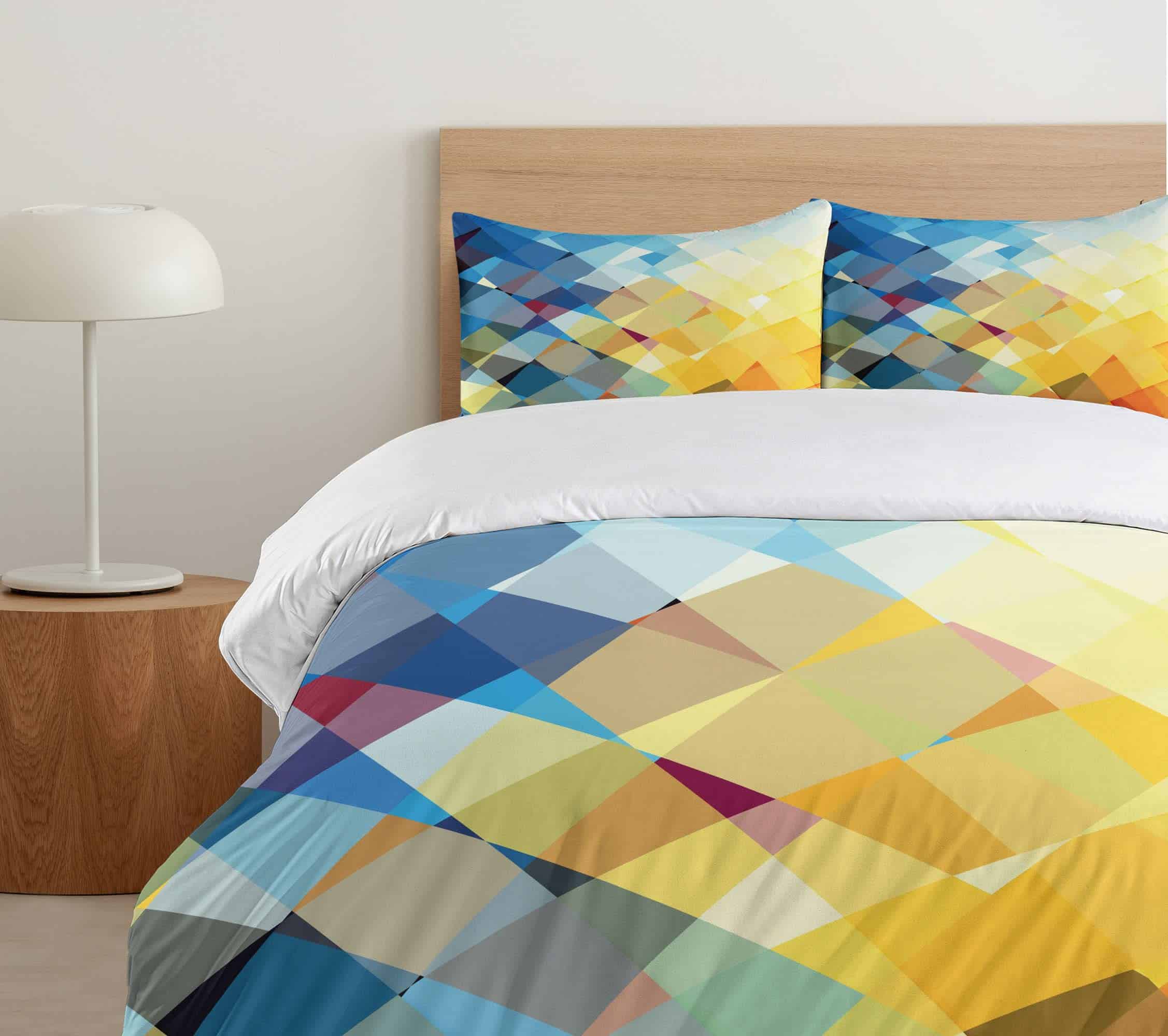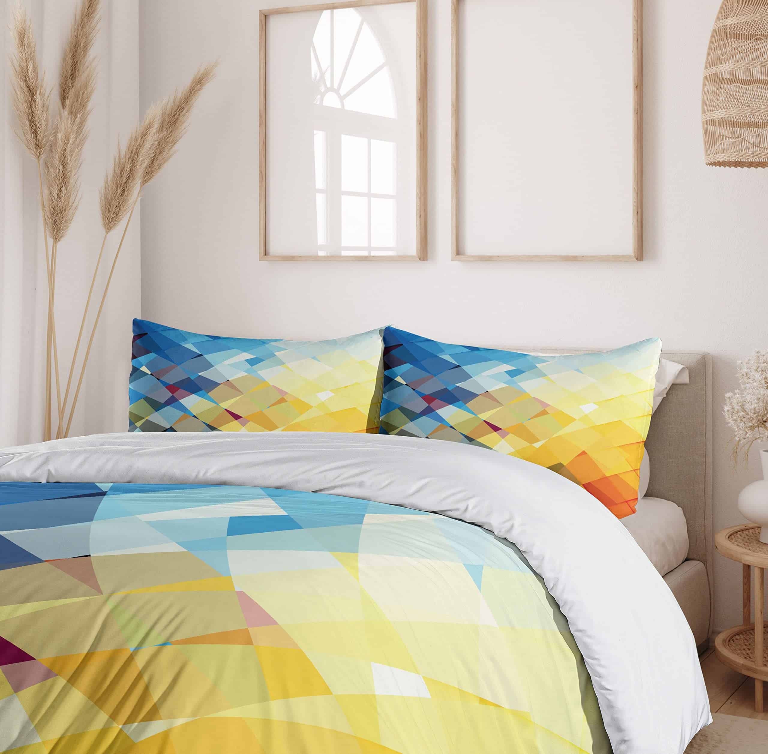 Juego de Funda de Edredón Amarillo y Azul Ambesonne, Patrón
