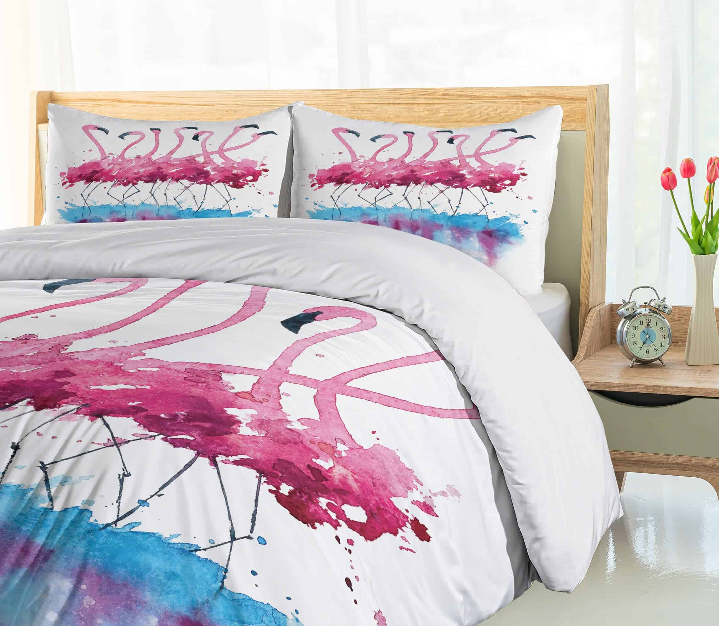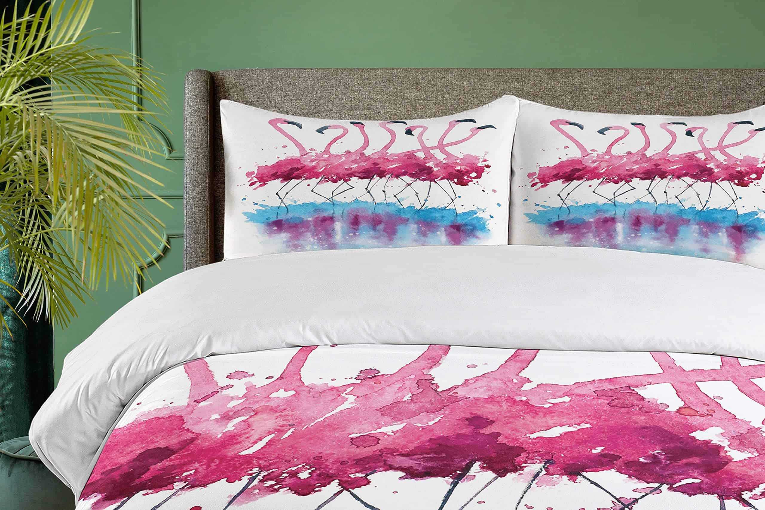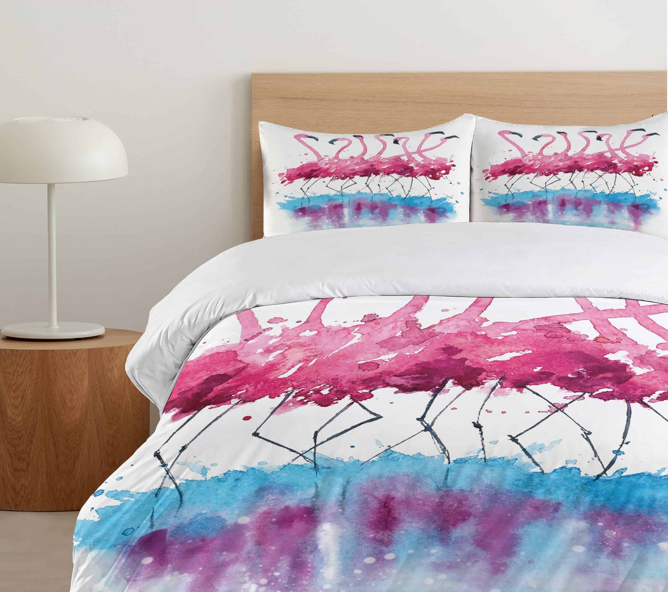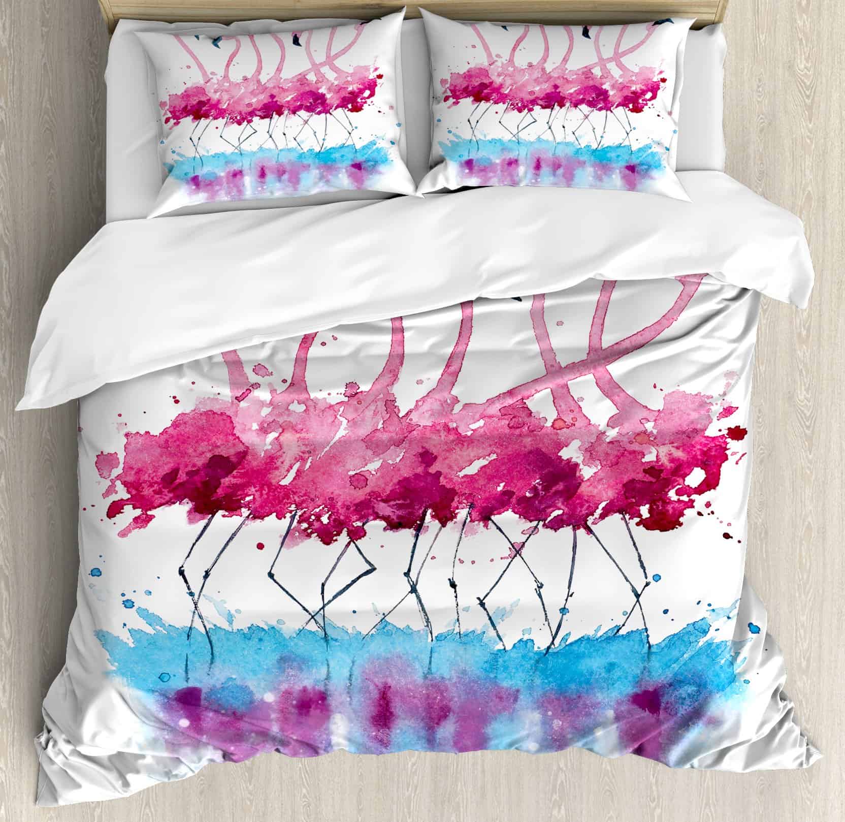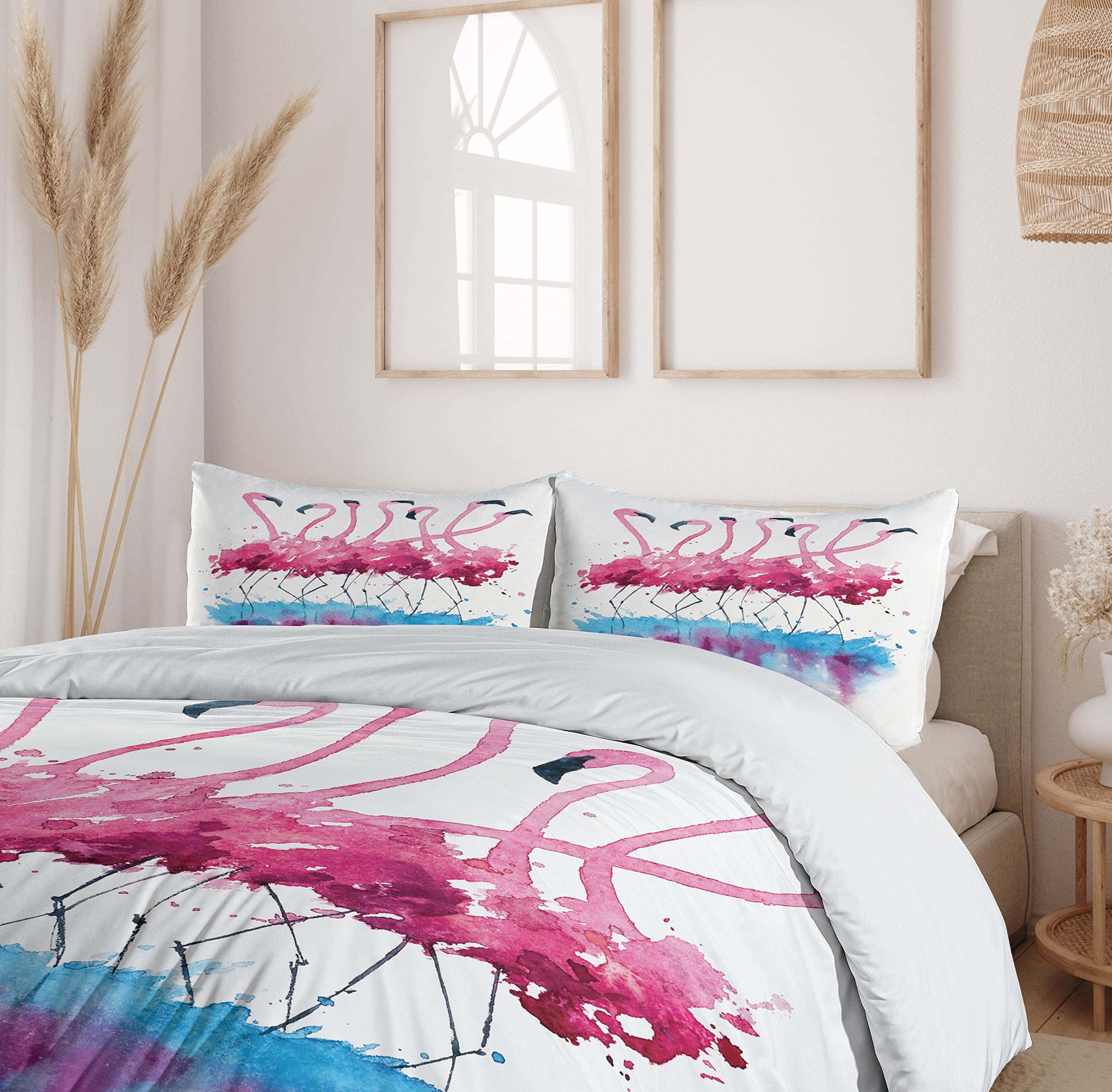 Juego de Funda de Edredón Ambesonne Animal, Flamencos Aves