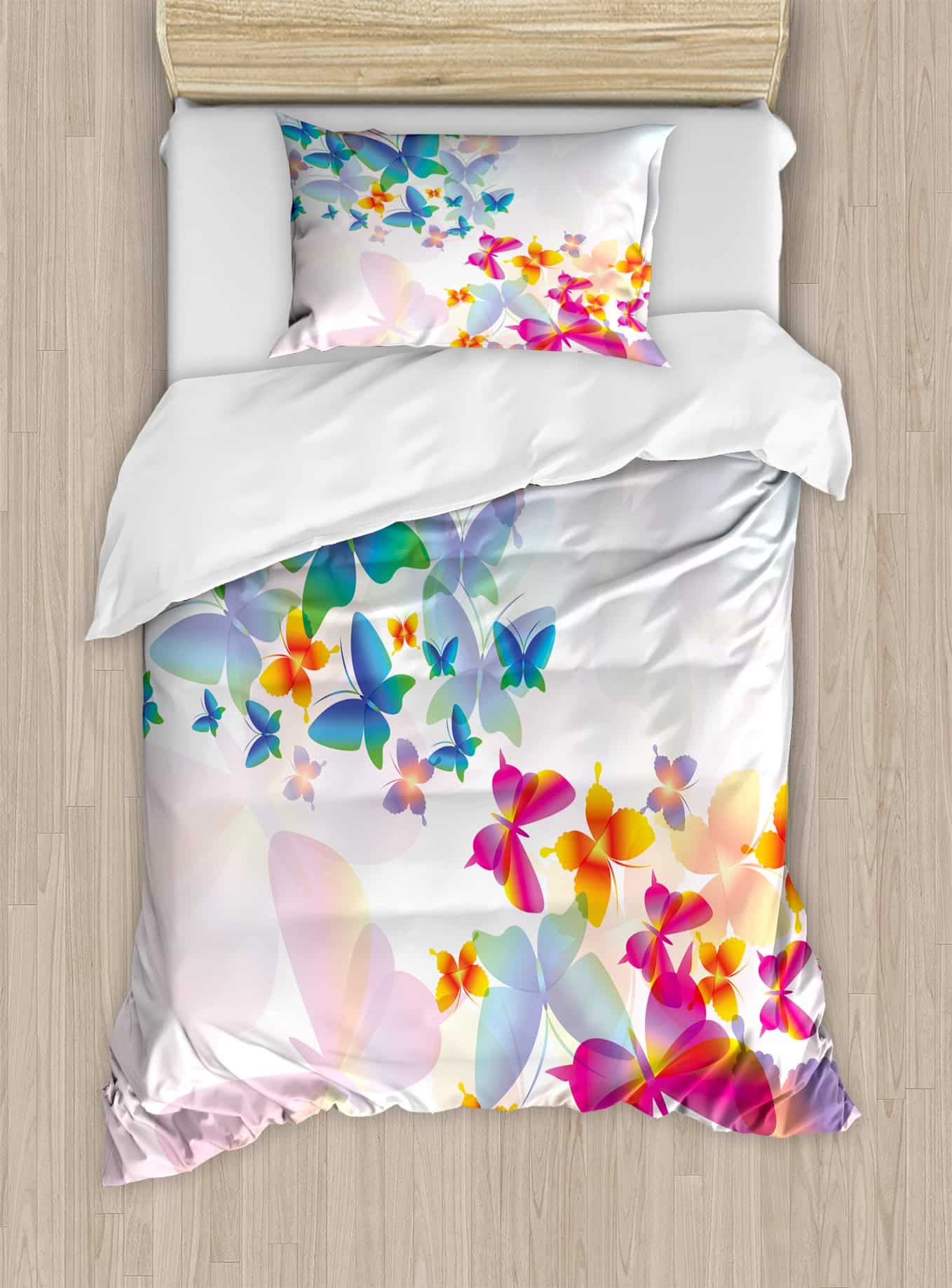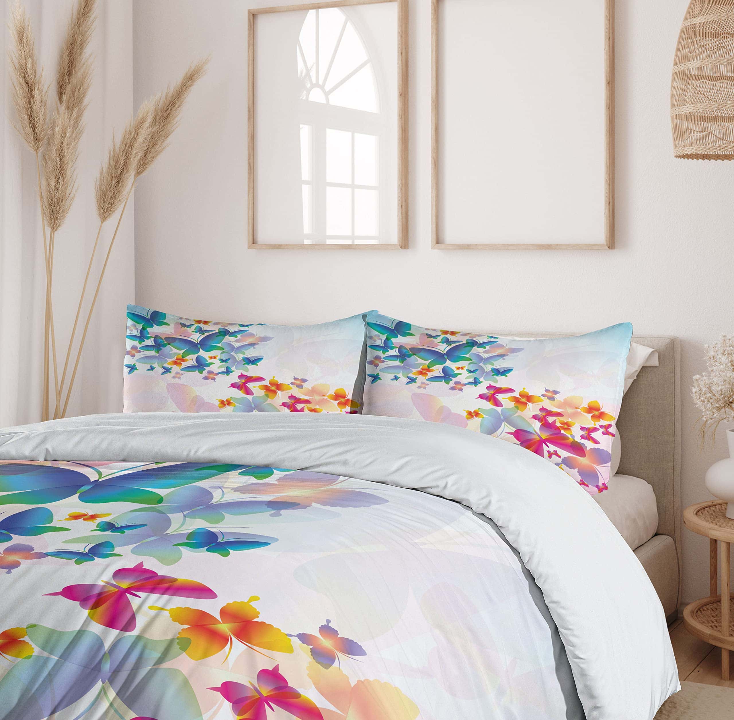 Juego de Funda de Edredón Ambesonne Mariposa, Coloridos