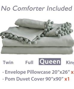 El juego de funda de edredón Andency Queen Size incluye una funda de edredón verde salvia sólido y dos fundas de almohada a juego. El diseño de borlas de pom pom añade un toque de sofisticación única a esta bonita funda de edredón. Con un color seleccionado, esta funda de edredón de borlas de pom pom cobra vida con vitalidad, aportando un aire fresco a tu dormitorio. El tejido de microfibra lavada es increíblemente suave y cómodo, asegurando que puedas sumergirte en una noche de sueño reparador después de un largo día. La cremallera oculta facilita el cambio de funda de edredón y las esquinas con lazos mantienen el edredón en su lugar para que disfrutes de una noche de descanso sin preocupaciones. Este juego de funda de edredón es perfecto para regalar a tus seres queridos, ya sean hombres, mujeres o niños. Llévate a casa este juego de funda de edredón Andency y disfruta de la comodidad y el estilo que aporta a tu dormitorio.