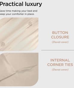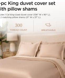 La funda de edredón Threadmill Beige Tamaño King es el complemento perfecto para tu colección de ropa de cama. Hecha de 100% algodón, esta funda de edredón es ligera, suave al tacto y se vuelve más suave con cada lavado. La funda de edredón de algodón es transpirable y proporciona un toque fresco para una protección cómoda durante todo el año. Gracias al patrón de tejido de alta calidad, esta funda de edredón es ideal para aquellos a quienes les gusta la sensación lujosa del algodón suave sobre su piel. El juego de 3 piezas incluye una funda de edredón de tamaño king que mide 106 pulgadas de ancho por 90 pulgadas de largo, y 2 fundas de almohada que miden 21 pulgadas de ancho por 37 pulgadas de largo. Con cierre de botones conveniente y correas internas en las esquinas, este juego de funda de edredón facilita el proceso de hacer la cama y garantiza un ajuste ceñido para tu edredón, evitando que se deslice durante la noche. Los diseños premium ofrecidos en varios colores te permiten llevar la experiencia de lujo del hotel a tu hogar. La artesanía y el acabado suave de nuestras fundas de edredón pueden elevar la estética de cualquier habitación, ya sea la principal, la infantil, la de invitados, la de AirBnB, la de la casa de playa o el lugar de vacaciones. También se incluyen fundas de almohada coordinadas con cierre de sobre para completar el look general de la ropa de cama. Para un mantenimiento fácil y duradero, simplemente lava la ropa en frío y sécala a baja temperatura. Retira las fundas de la secadora al final del ciclo y, si es necesario, plancha tibia para mantener la apariencia fresca de las fundas de edredón hechas de hilo de fibra larga. Disfruta de un descanso placentero con el juego de funda de edredón Threadmill Beige Tamaño King.