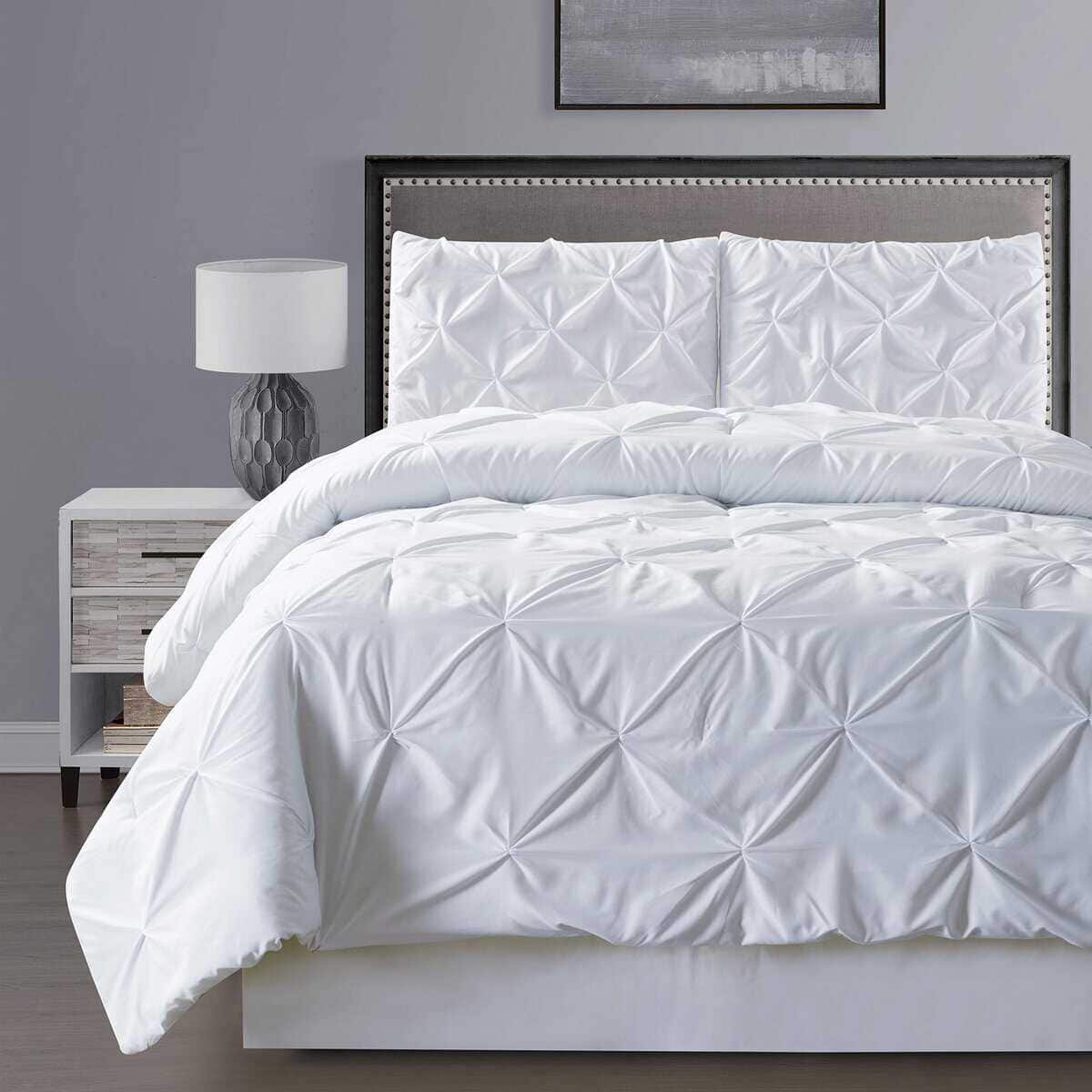 Juego de Funda de Edredón Blanco de Pliegues en Abanico