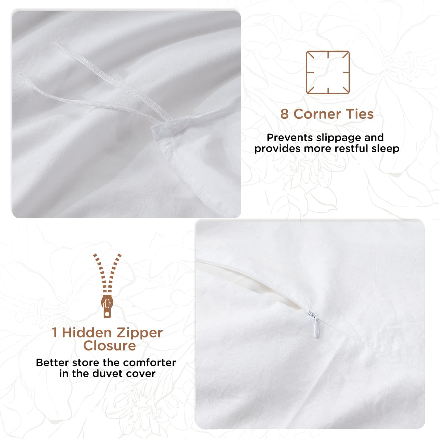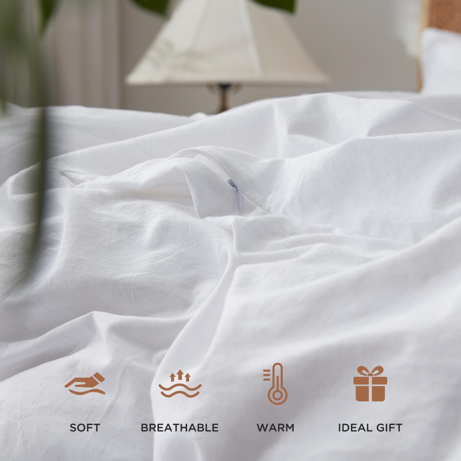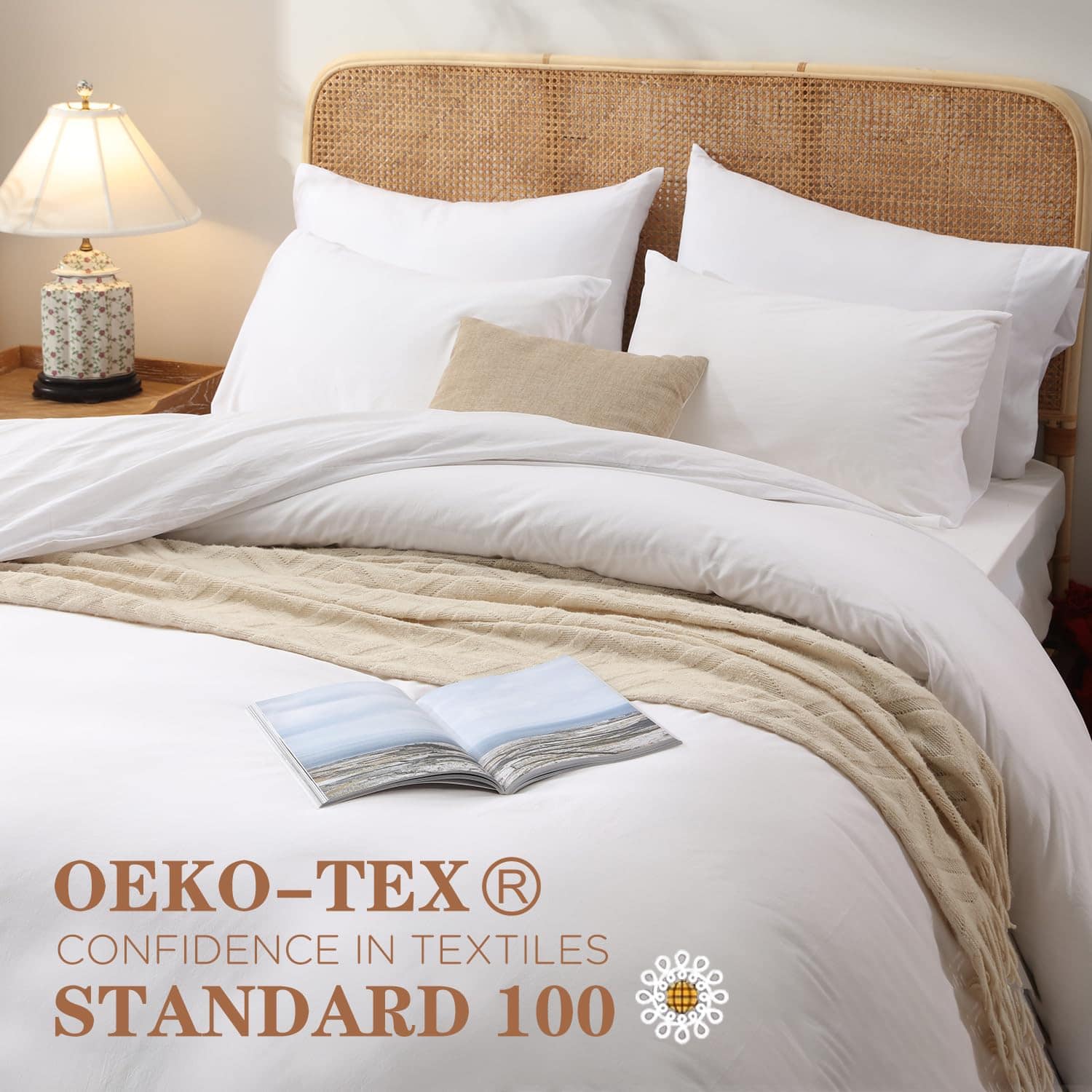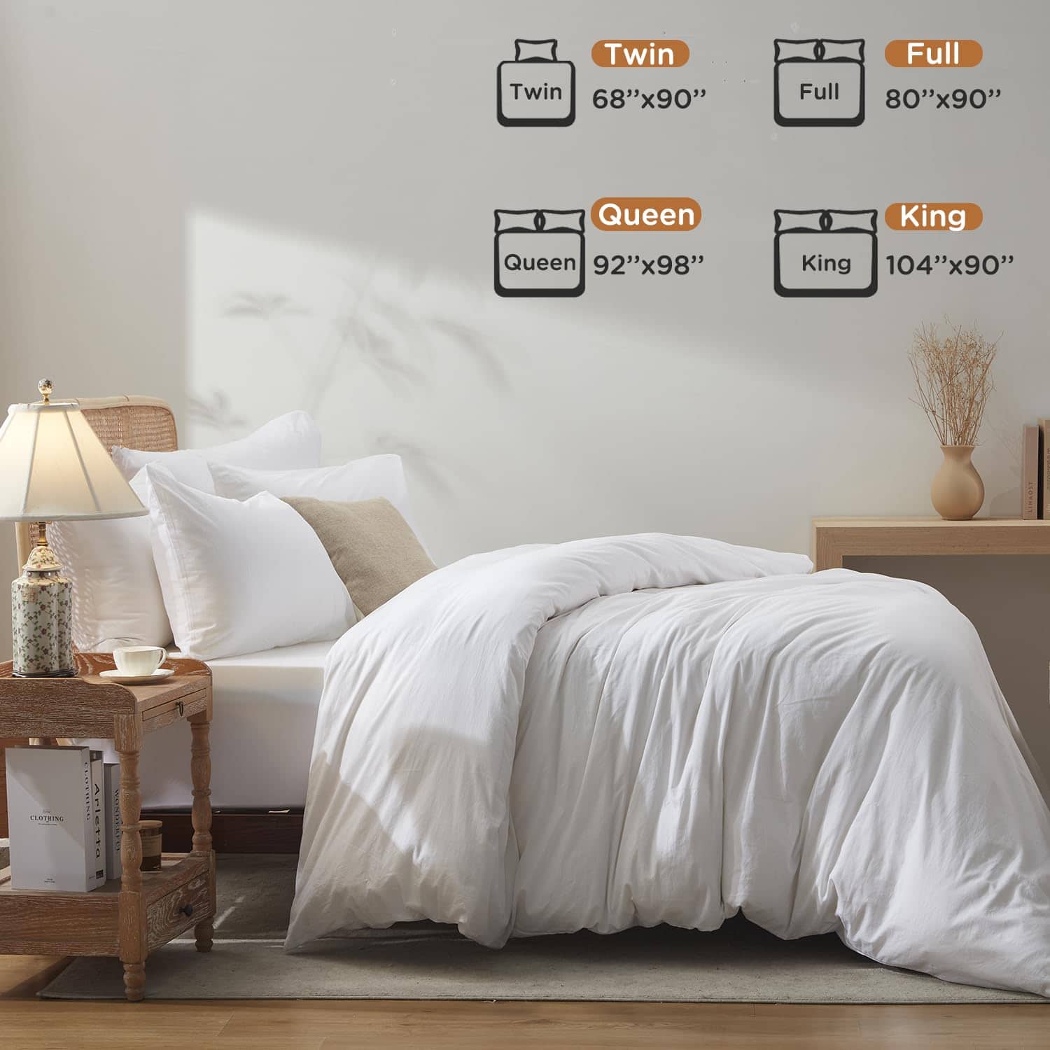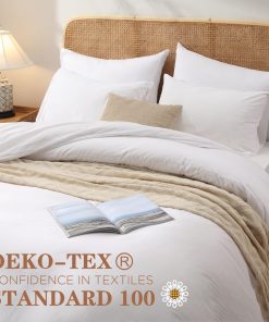 Juego de Funda de Edredón Blanco Tamaño King BedTreat – 100% Algodón Lavado Sensación de Lino Texturizado Set de Funda de Edredón – 3 Piezas – Súper Suave y Transpirable Juego de Ropa de Cama para Todas las Estaciones, Fácil Cuidado (Sin Edredón). Este juego de funda de edredón tamaño king incluye 1 funda de edredón queen con cierre de cremallera y lazos en las esquinas (104×90 ), y 2 fundas de almohada (20×36 ). ¡SIN EDREDÓN! El diseño único de este set de funda de edredón cuenta con 8 lazos en las esquinas y cierre de cremallera, lo que garantiza que el edredón se fije adecuadamente dentro del set. Esto asegura que el edredón se mantenga en su lugar mientras duermes, permitiendo al cliente disfrutar de una mayor calidad de sueño. Además, el diseño de cierre de sobre de las fundas de almohada facilita el meter la almohada con mayor facilidad. El material suave y transpirable de este juego de funda de edredón está elaborado con 100% algodón lavado, lo cual garantiza tu comodidad y calidez en las noches frías, sin hacerte sudar en las noches cálidas. Su look ligeramente arrugado y la sensación de lino que posee, le proporcionan a tu dormitorio un estilo elegante y lujoso. La transpirabilidad de este set mantiene la cama con un olor fresco, sin rastros de la suciedad animal. Con una garantía de marca calificada, todas las piezas de este juego de funda de edredón son elaboradas en nuestra propia fábrica, certificada con el estándar OEKO-TEX 100%. Con 22 años de experiencia en la producción de ropa de cama, todos los materiales de nuestros productos son cuidadosamente seleccionados y rigurosamente inspeccionados. Nuestro objetivo es proporcionar a los clientes el retorno adecuado por cada centavo que gastan. Para un mantenimiento sencillo, este set es lavable a máquina en ciclo suave con agua fría. Secar en secadora a baja temperatura para eliminar las arrugas. No usar lejía ni planchar. El tejido de algodón lavado 100% permite que el producto mantenga su forma y suavidad después de cada lavado. Renueva tu dormitorio con este elegante y cómodo juego de funda de edredón blanco tamaño king de BedTreat.