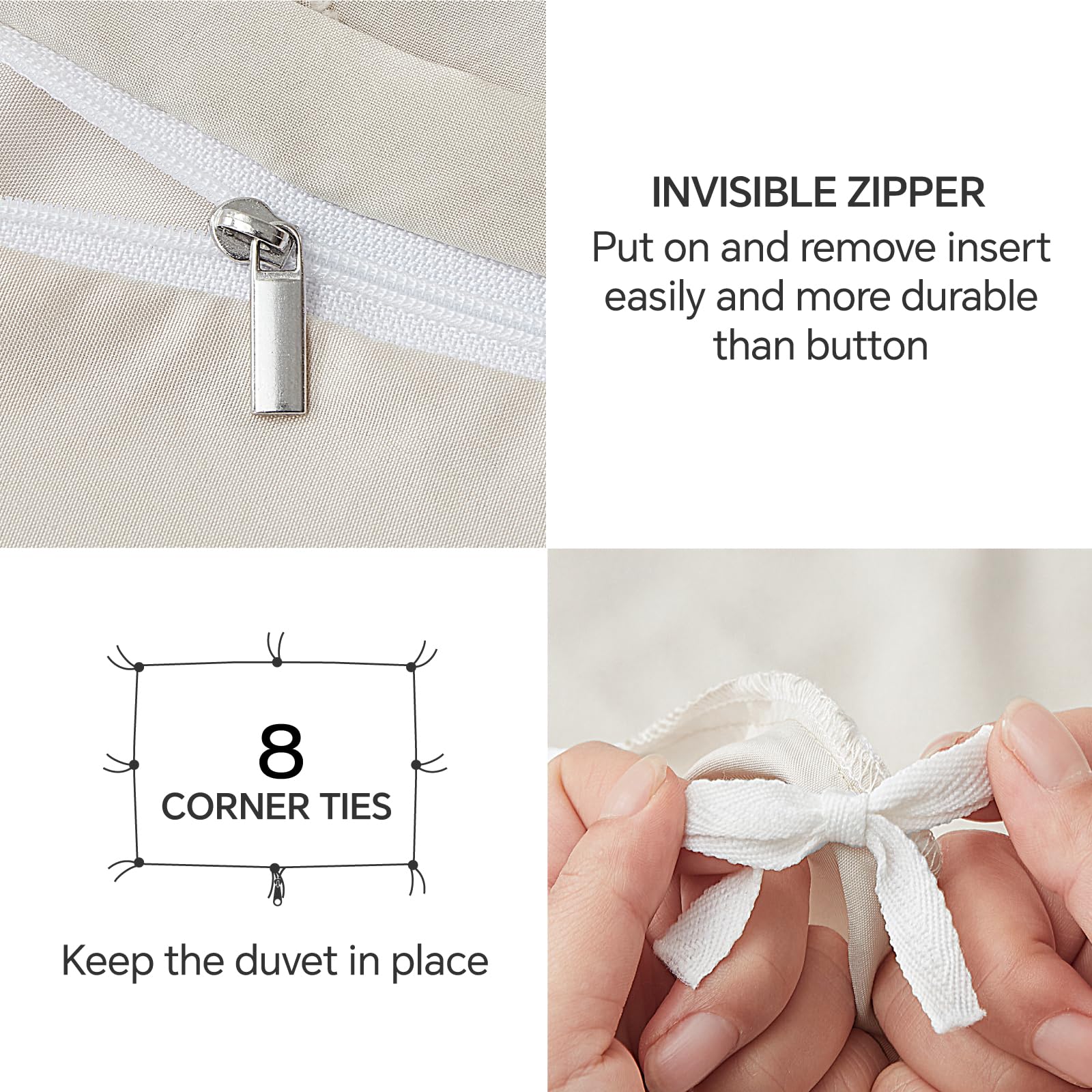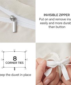 4. Ajuste Perfecto: Nuestra funda de edredón está equipada con una cremallera que puedes cerrar fácilmente para un ajuste perfecto. Además, cuenta con 8 lazos en las esquinas dentro de la funda de edredón, evitando que el relleno se desplace y proporcionando un ajuste seguro. Diseño de funda de almohada tipo sobre, liso y cómodo.