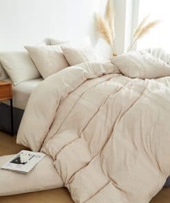 Con costuras de borde fino y una cremallera oculta fácil de quitar y lavar, este juego de funda de edredón es duradero y resistente al paso del tiempo. Los 4 lazos de esquina evitan que el edredón se amontone o se mueva durante la noche, garantizando una colocación perfecta en todo momento.