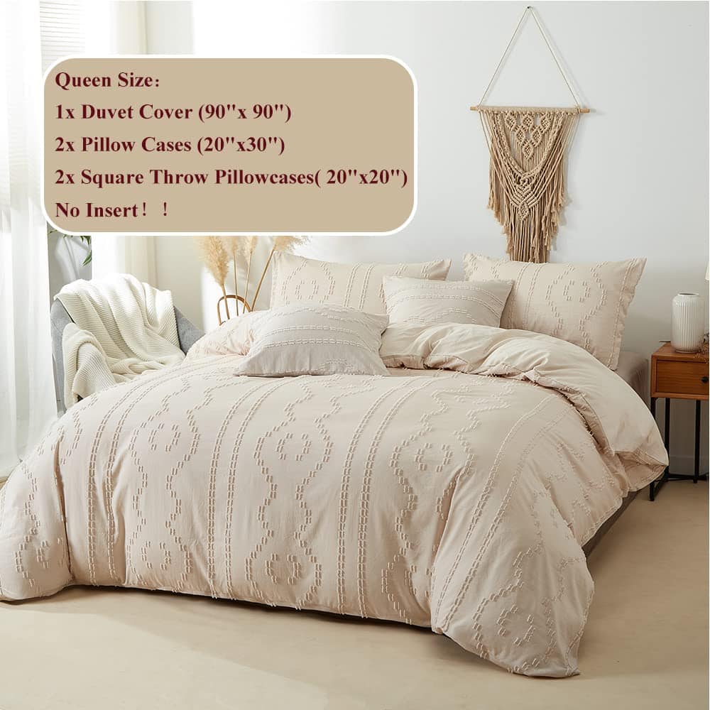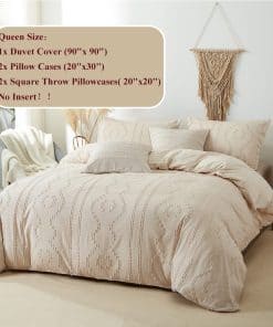 El Juego de Funda de Edredón Boho de CinYana 5 Piezas es perfecto para darle a tu dormitorio un toque elegante y sofisticado. Este juego incluye una funda de edredón de tamaño Queen, dos fundas de almohada estándar y dos fundas de almohada cuadradas, todo en un suave y transpirable tejido de microfibra.