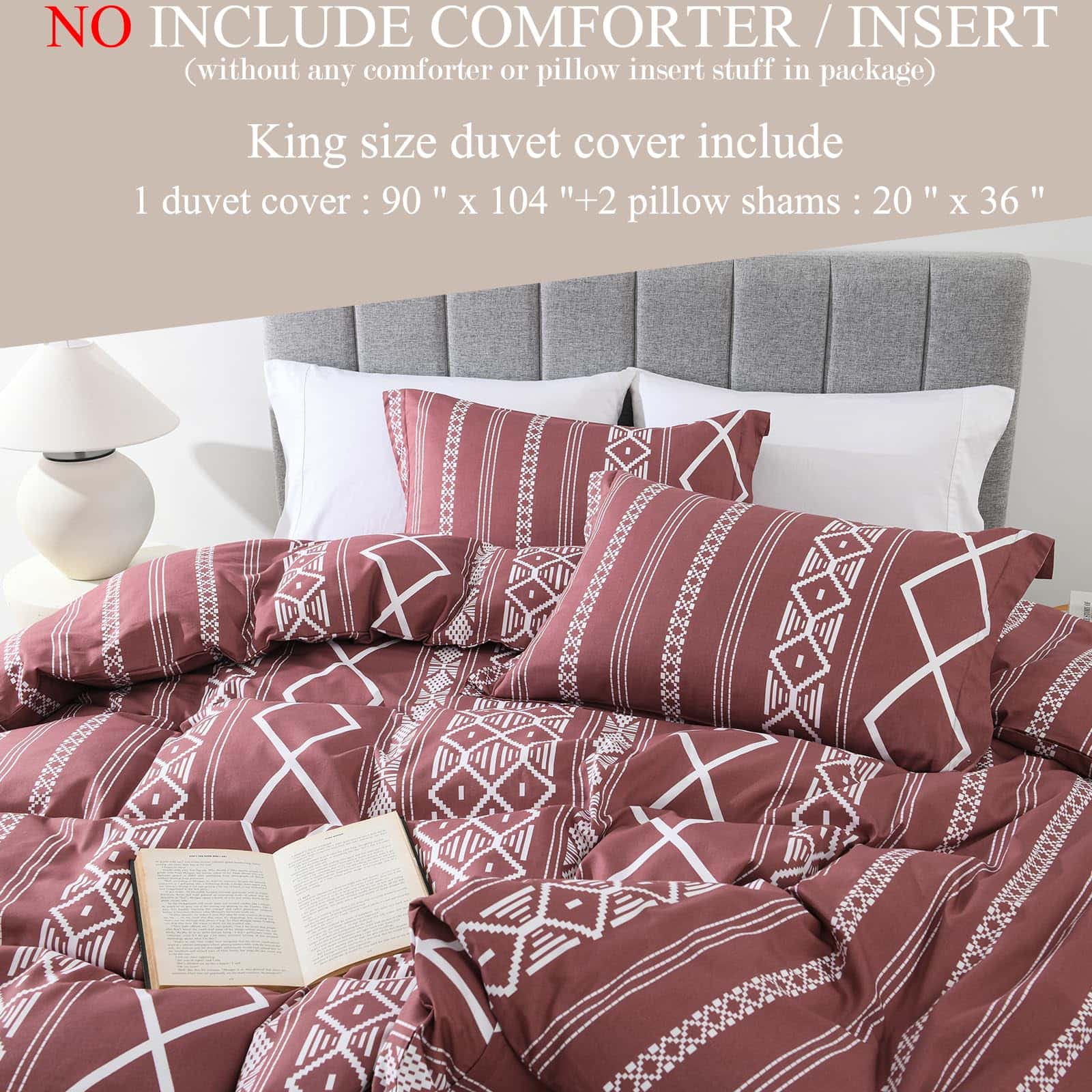 Juego de Funda de Edredón Boho King Size, 100% Algodón Rojo