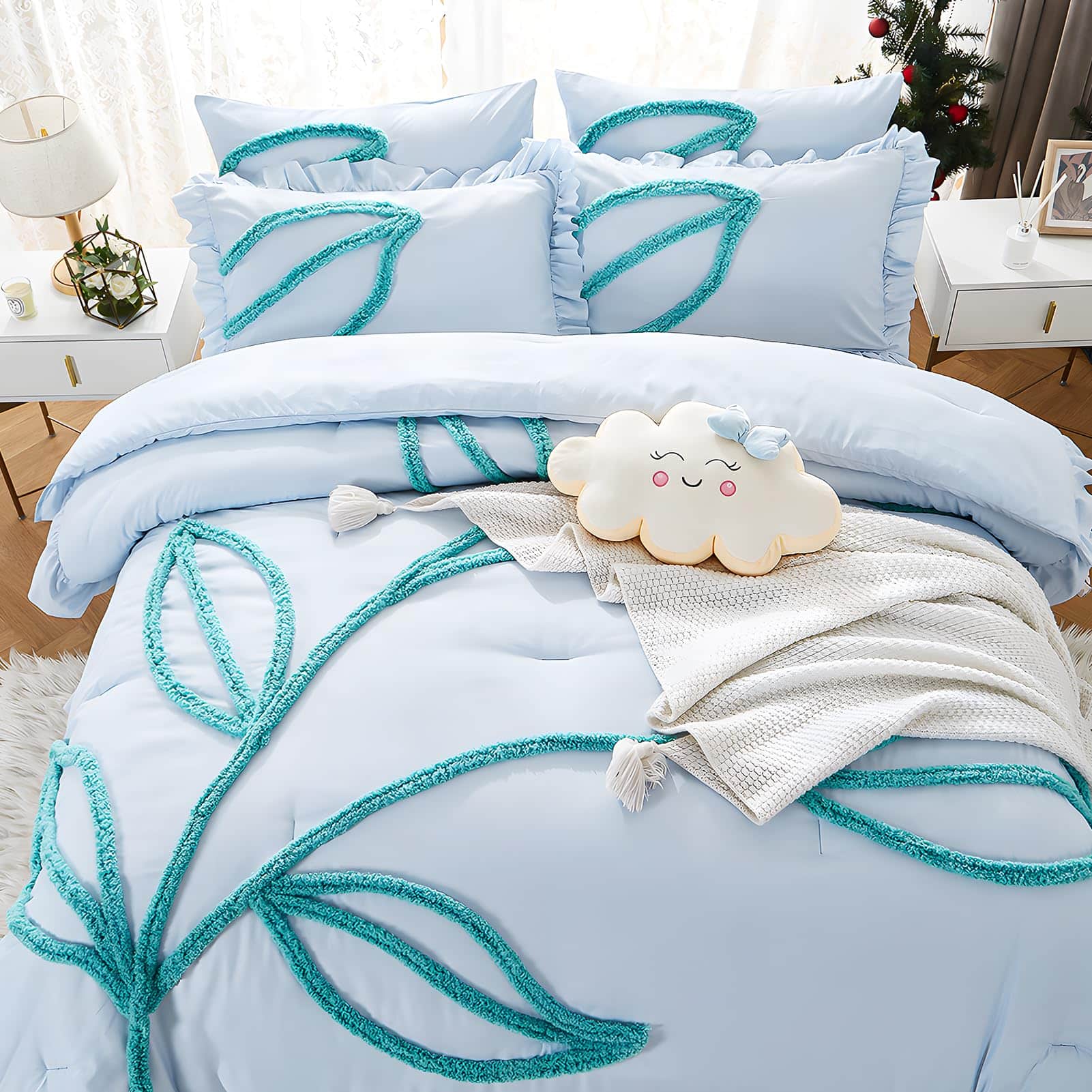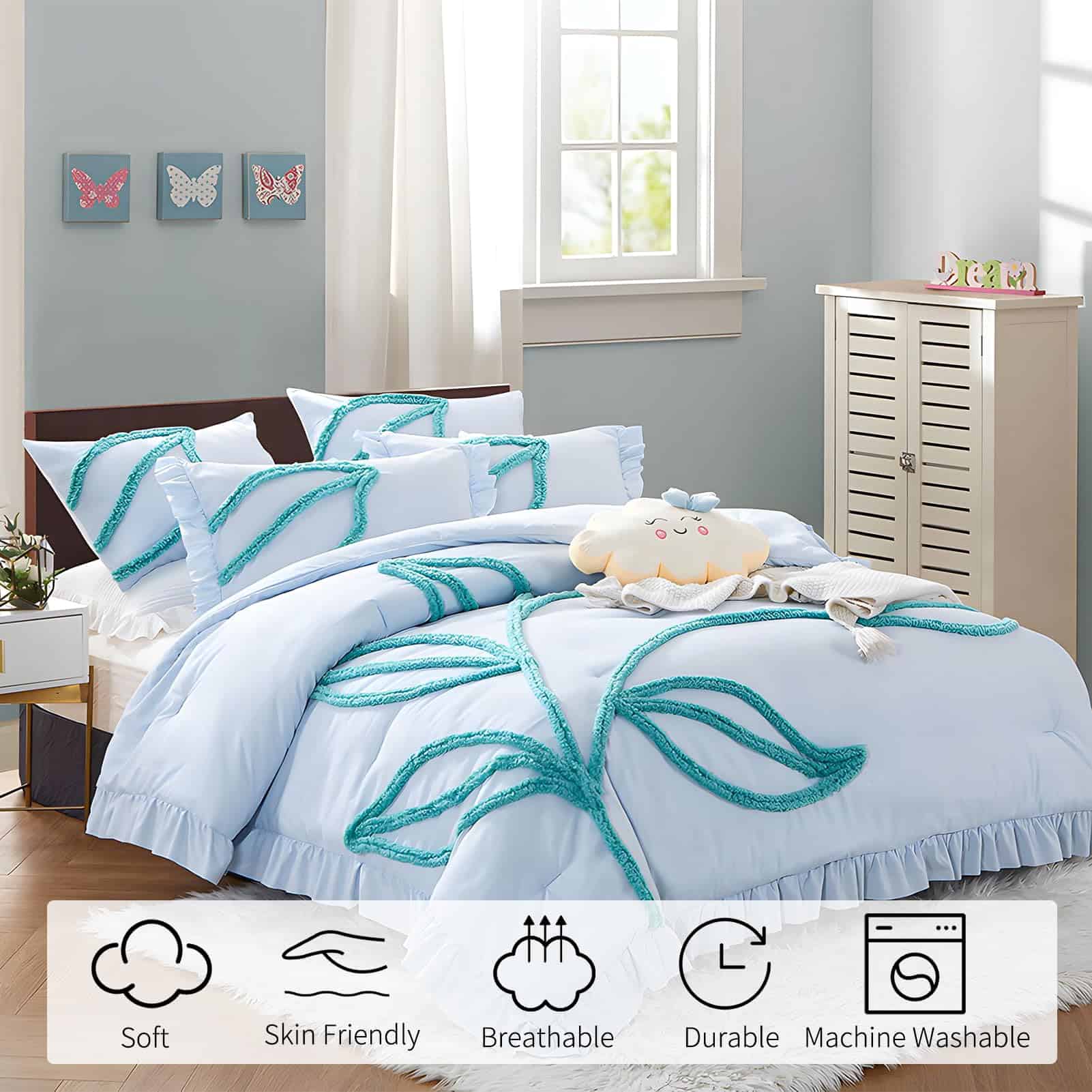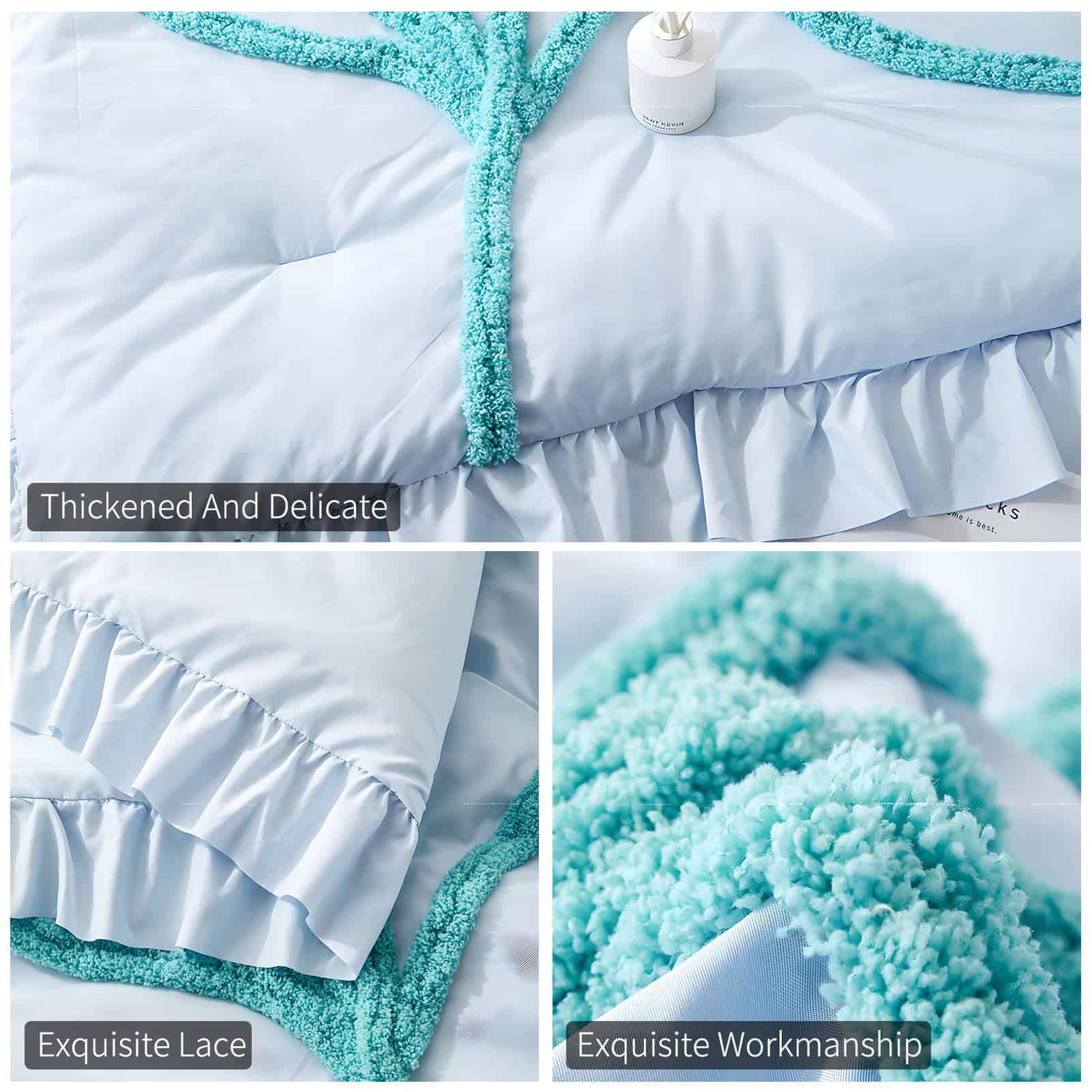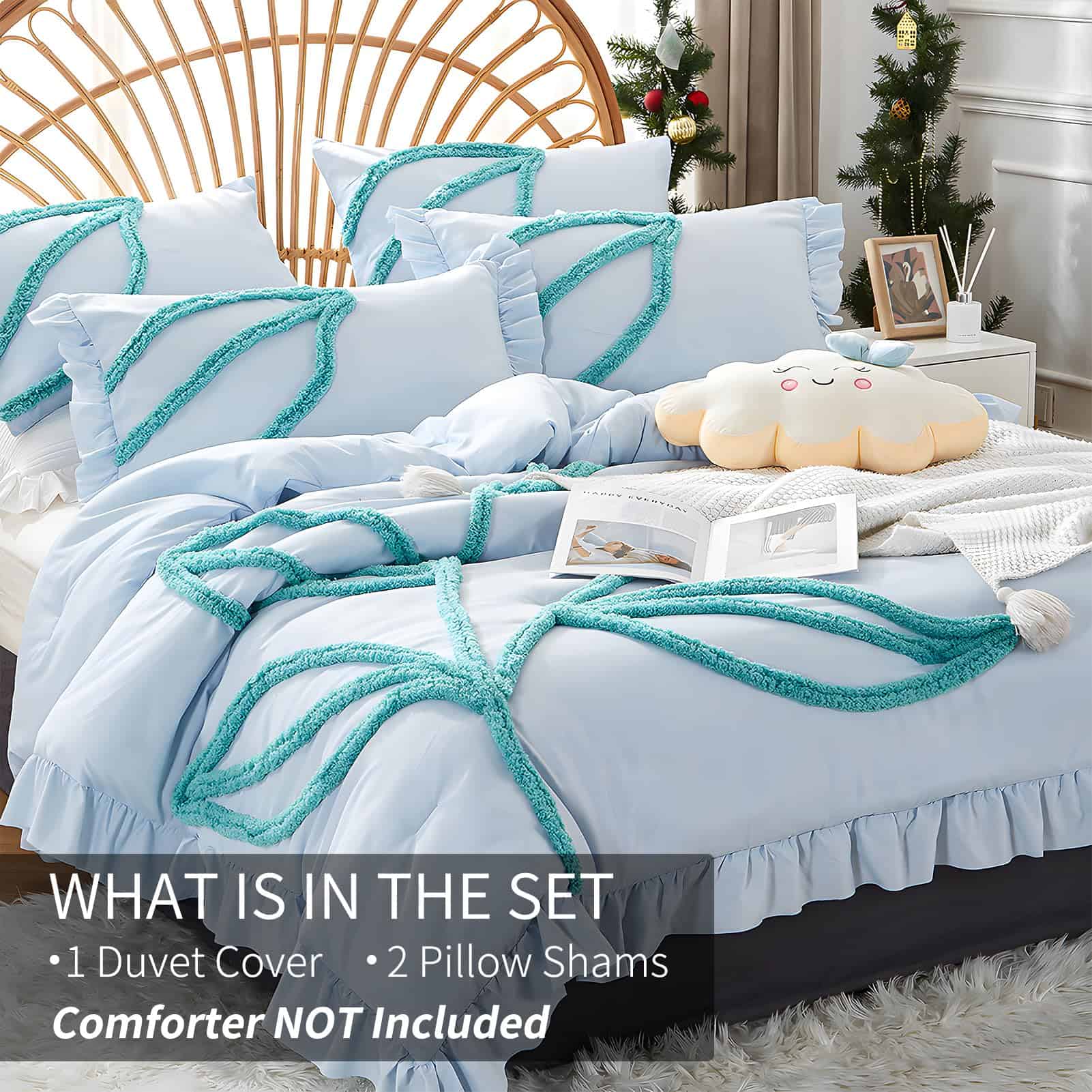 1. MATERIAL DE CALIDAD: La funda de edredón está hecha de algodón lavado de fibra química y material de microfibra de poliéster premium, lo que proporciona una textura acogedora, suave y transpirable para disfrutar de un sueño profundo. Está disponible en múltiples colores para adaptarse a cualquier decoración de dormitorio. El patrón único de flores y hojas acolchadas sólidas agrega un toque elegante y a la moda a tu dormitorio. 2. UN REGALO PERFECTO: Este juego de funda nórdica es hermoso y práctico, ideal para regalar a tu ser querido un regalo cómodo y romántico, ya sea para el Día de la Madre, San Valentín, Navidad, o simplemente para demostrar tu aprecio. 3. DURABILIDAD: La alta resistencia a la tracción de la funda de edredón la hace resistente y menos propensa a rasgarse o romperse. Además, al ser de fibra de poliéster, tiene una mejor función de aislamiento térmico y características de protección del medio ambiente. 4. DETALLES CUIDADOSOS Y CUIDADO SIMPLE: La funda de edredón cuenta con 8 corbatas internas en las esquinas para asegurar perfectamente el edredón, haciéndolo más fácil de usar. También tiene un cierre de cremallera que permite introducir el edredón sin esfuerzo. El cuidado es sencillo: lavar a máquina en agua fría, ciclo suave, secar a baja temperatura y no usar lejía. 5. CONTENIDO DEL PAQUETE: Este juego de funda nórdica king size incluye una funda de edredón king size de 104″x 90″ y dos fundas de almohada de 20″x 36″. No incluye edredón o relleno. Las dimensiones de los productos son aproximadas y pueden variar ligeramente debido a la medición manual.
