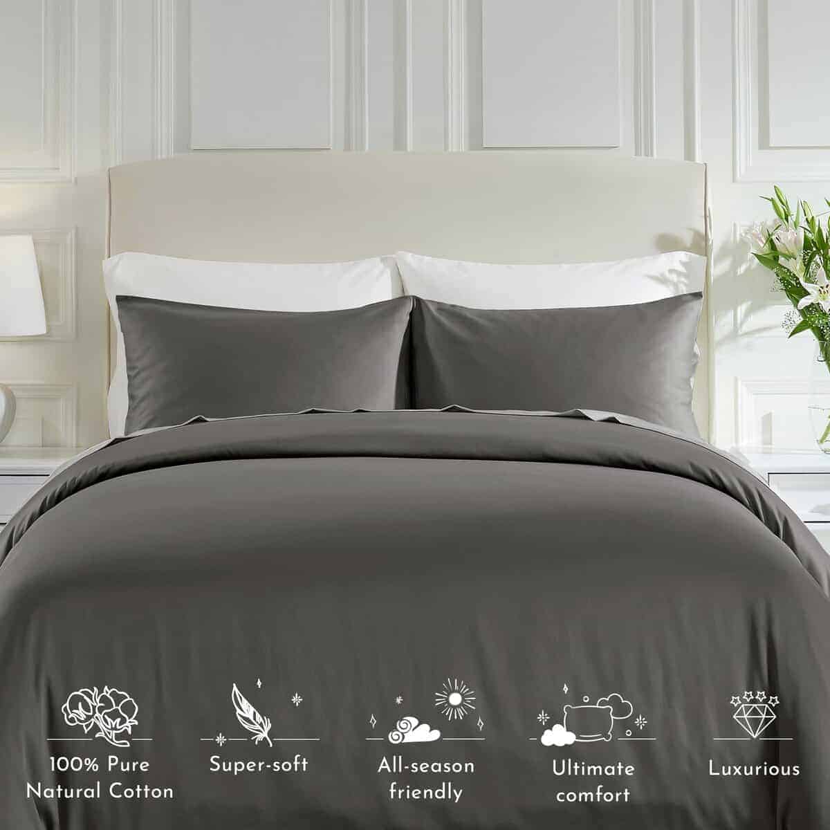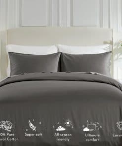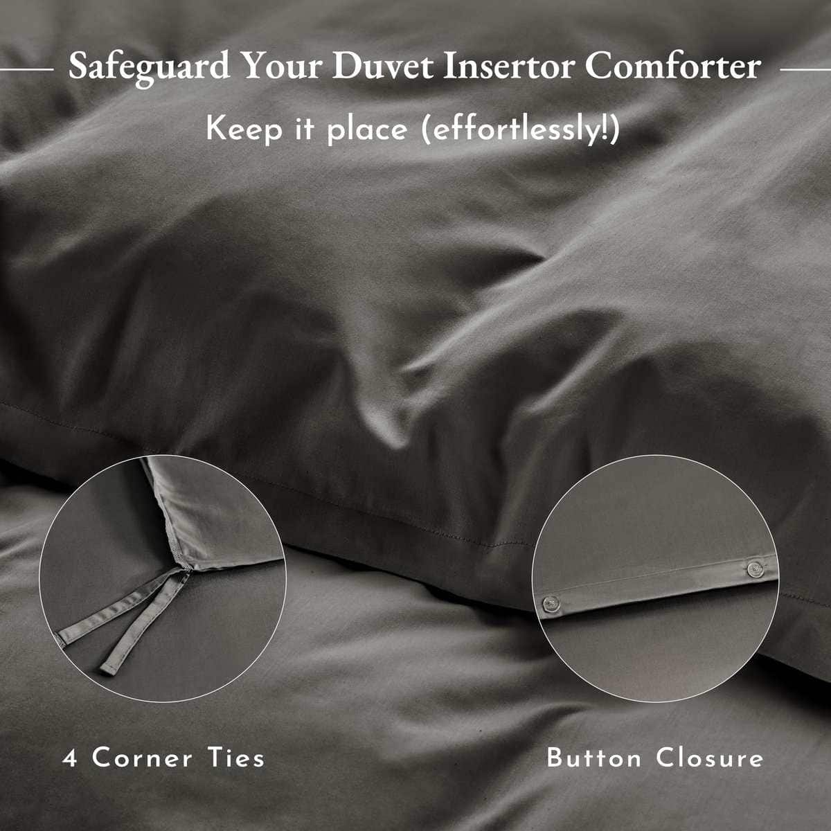 Lavado fácil y uso sencillo: Protege tu edredón sin tener que lavarlo por completo. Nuestro juego de funda de edredón king size es lavable a máquina y se puede secar en casa. Esta funda de edredón de algodón 100% cuenta con aperturas de botones y lazos internos para mayor comodidad. El aspecto: Imagina tu cama luciendo como una habitación de hotel de lujo con nuestro juego de funda de edredón king size. Nuestro tejido de satén de algodón tiene un hermoso brillo y apenas se arruga, lo que le da un aspecto nítido y elegante. Completa el set con sábanas a juego disponibles en el mismo tejido y color. Nuestro compromiso: Hemos donado más de 22,000 piezas de ropa de cama a organizaciones benéficas en Estados Unidos. Nuestro embalaje es libre de plástico. Fabricado en nuestra fábrica familiar en India, cada pieza es inspeccionada con calidad. Los productos defectuosos se reemplazan sin coste adicional. Disfruta de una política de devolución de 30 días, incluso después de usarlo.