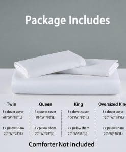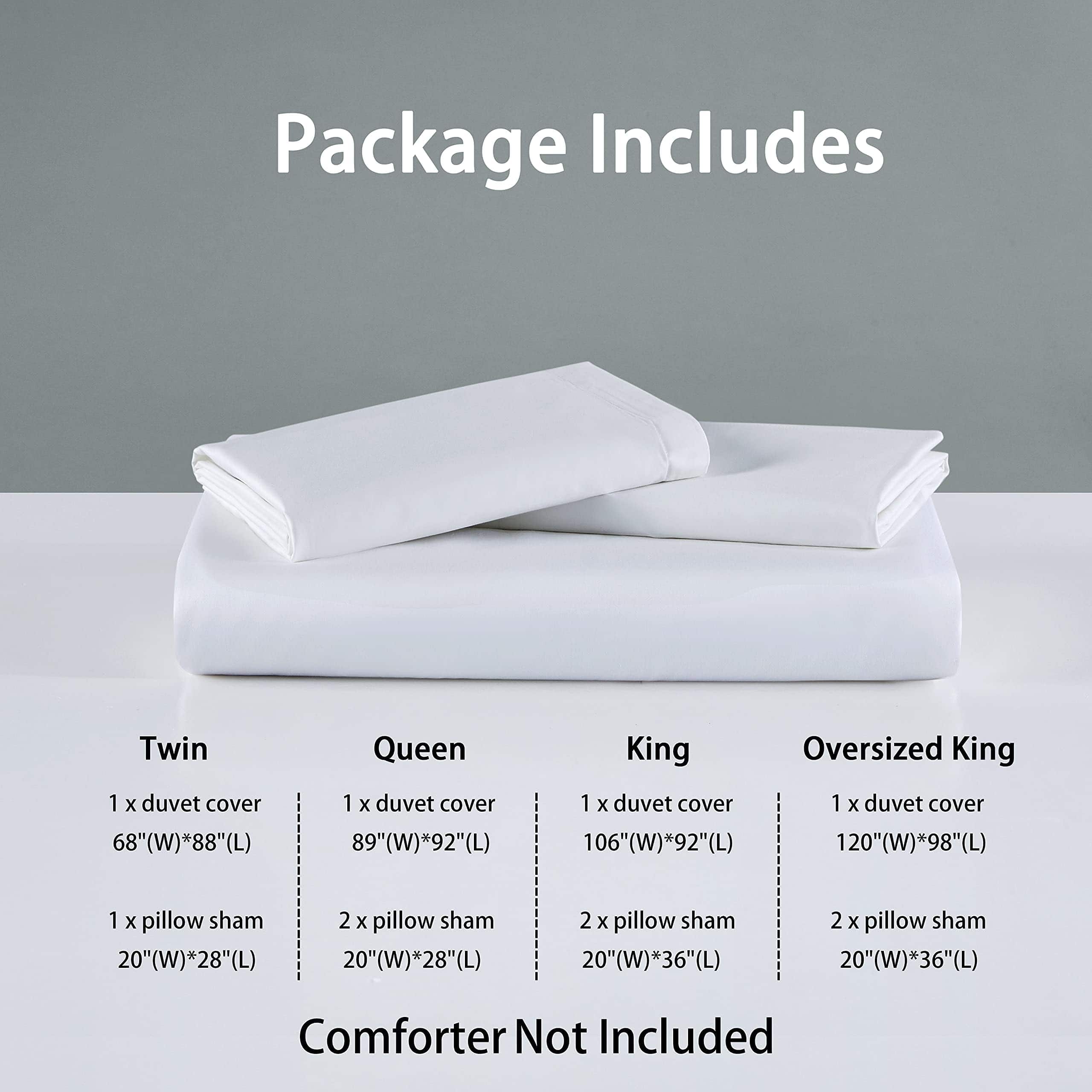 3. Juego de 2 piezas que incluye 1 funda de edredón de tamaño Individual 88 por 68 pulgadas, incluye 1 funda de almohada 20 por 28 pulgadas. La funda de edredón cuenta con un cierre de botón oculto con lazos internos que mantienen el inserto en su lugar, la funda de almohada cuenta con un cierre de sobre.
