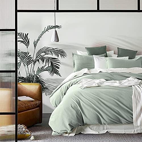 1. Juego de funda de edredón de algodón lavado a la piedra, con aspecto relajado y casual.