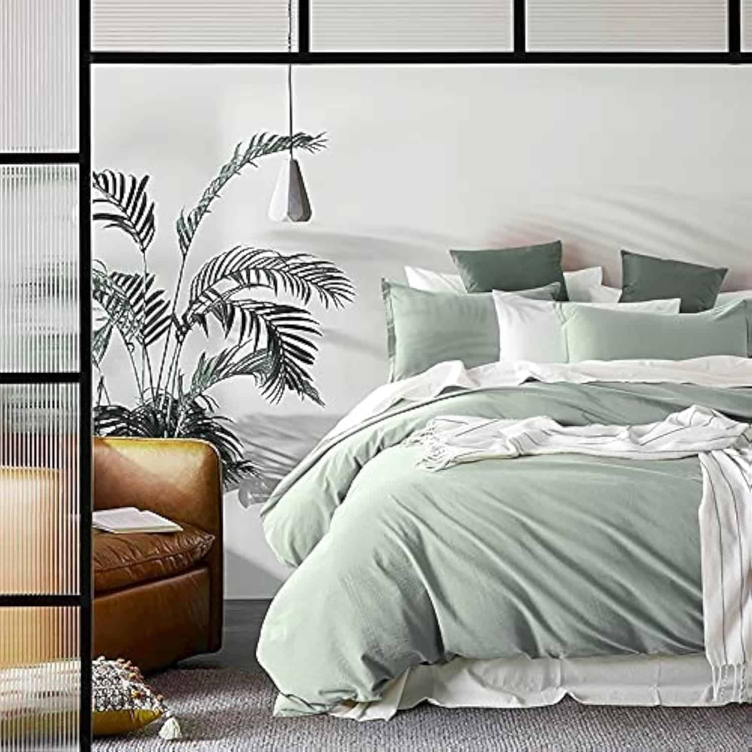 2. Protege tu inserto de edredón con funda de edredón lavable y tela natural pura. Variedad de colores lisos mate.