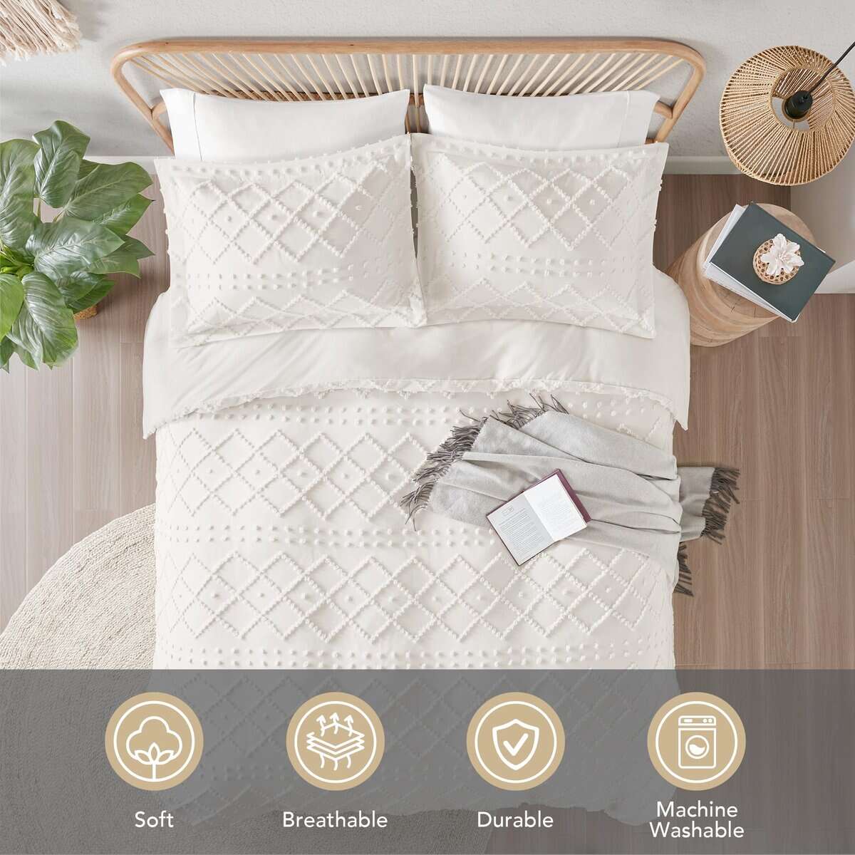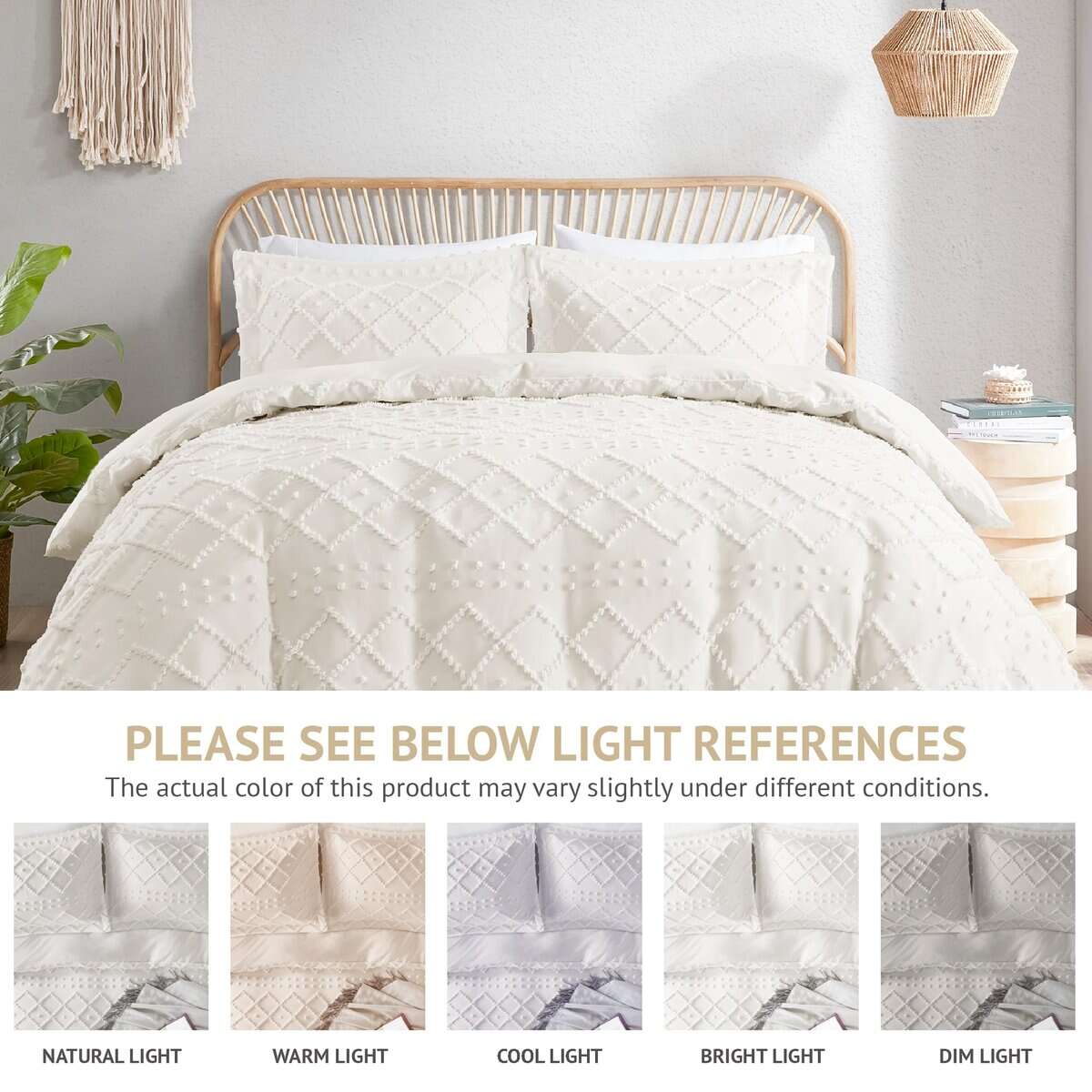 1. DISEÑO BOHO: Los juegos de funda de edredón Twyla cuentan con un patrón geométrico original y textura acolchada bordada. Su paleta de colores neutros le permite combinar fácilmente con cualquier estética, ya sea bohemia, campestre o shabby chic. ¡Eleva la decoración de tu dormitorio con los versátiles juegos de funda de edredón Twyla! 2. TEJIDO SUAVE Y TRANSPIRABLE: La funda de edredón Codi Twyla está hecha de microfibra esculpida duradera al 100% y microfibra sólida. La funda de edredón ligera absorbe la humedad, manteniendo frescos a los que duermen calientes y libres de sudor para una noche de descanso. 3. Cremallera Oculta: Las correas de esquina adjuntas dentro de la funda de edredón aseguran fácilmente el inserto de tu edredón en su lugar. Una cremallera oculta facilita insertar o quitar el edredón. 4. Duradero: El juego de funda de edredón Codi Twyla está hecho con un procesamiento textil de alta densidad, asegurando que el diseño acolchado no se rompa. Incluso después de múltiples lavados, la tela se mantiene suave y sedosa. 5. Mantenimiento: Lavable a máquina en agua fría/ciclo suave/secar en línea/secar en secadora a baja temperatura. Contiene: 1 Funda de Edredón (104″ x 90″) y 2 Fundas de Almohada (20″ x 26″). 6. SERVICIO ACTIVO: El servicio al cliente receptivo y atento estará esperando por ti las 24 horas del día, los 7 días de la semana. Por favor, envíanos un correo electrónico con cualquier inquietud que puedas tener. Cada comprador que nos contactó obtuvo una solución satisfactoria, así que compra con confianza.