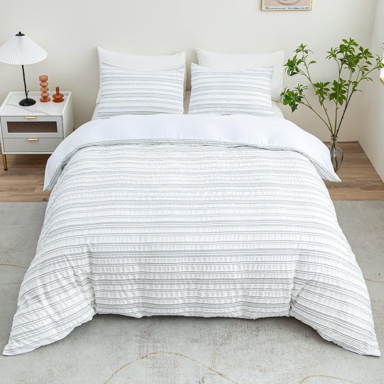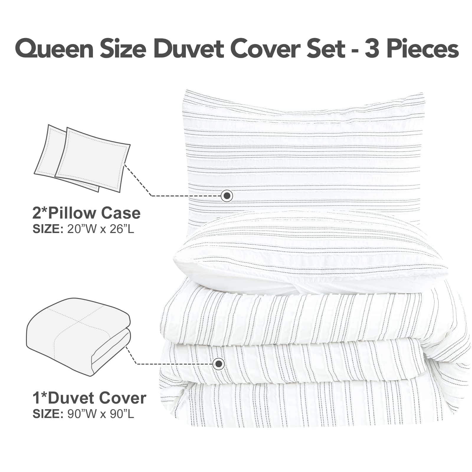 Imagina la sensación de lujo de envolverte en esta funda de edredón de alta calidad después de un largo día. El diseño de pliegues añade un toque de elegancia distintivo a tu dormitorio, creando un ambiente acogedor y sofisticado. Hecho con microfibra cepillada de primera calidad, esta funda de edredón no solo es increíblemente suave al tacto, sino que también es duradera y resistente a las arrugas. El cierre de botón invisible asegura que tu edredón permanezca en su lugar mientras duermes. Con su tamaño Queen de 90×90 pulgadas, este juego de funda de edredón es ideal para una cama de tamaño estándar. Sorprende a tus seres queridos con este hermoso regalo que elevará la decoración de cualquier habitación.