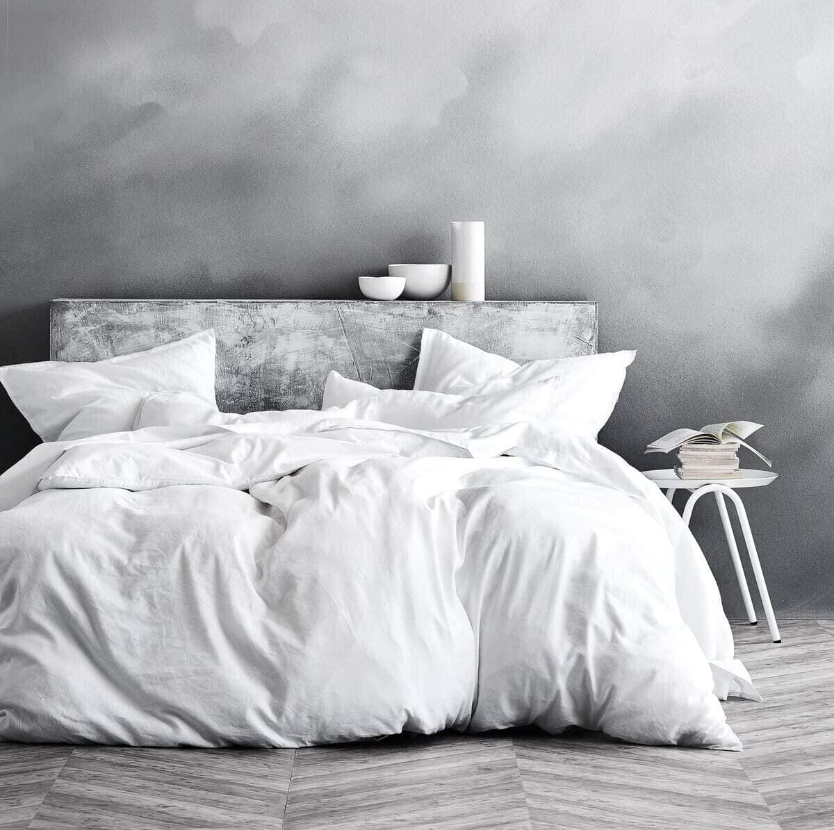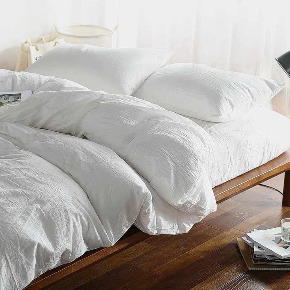 Juego de Funda de Edredón de Algodón Lavado -Blanco