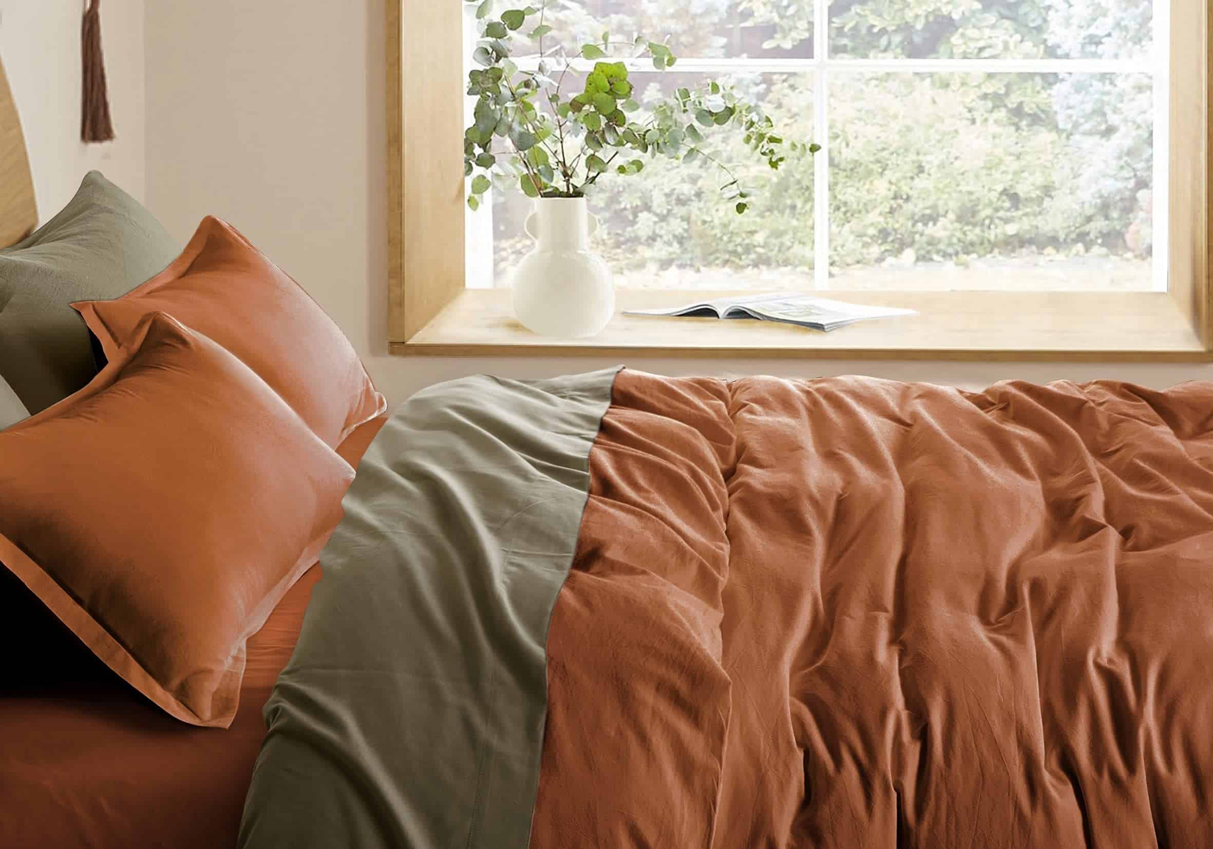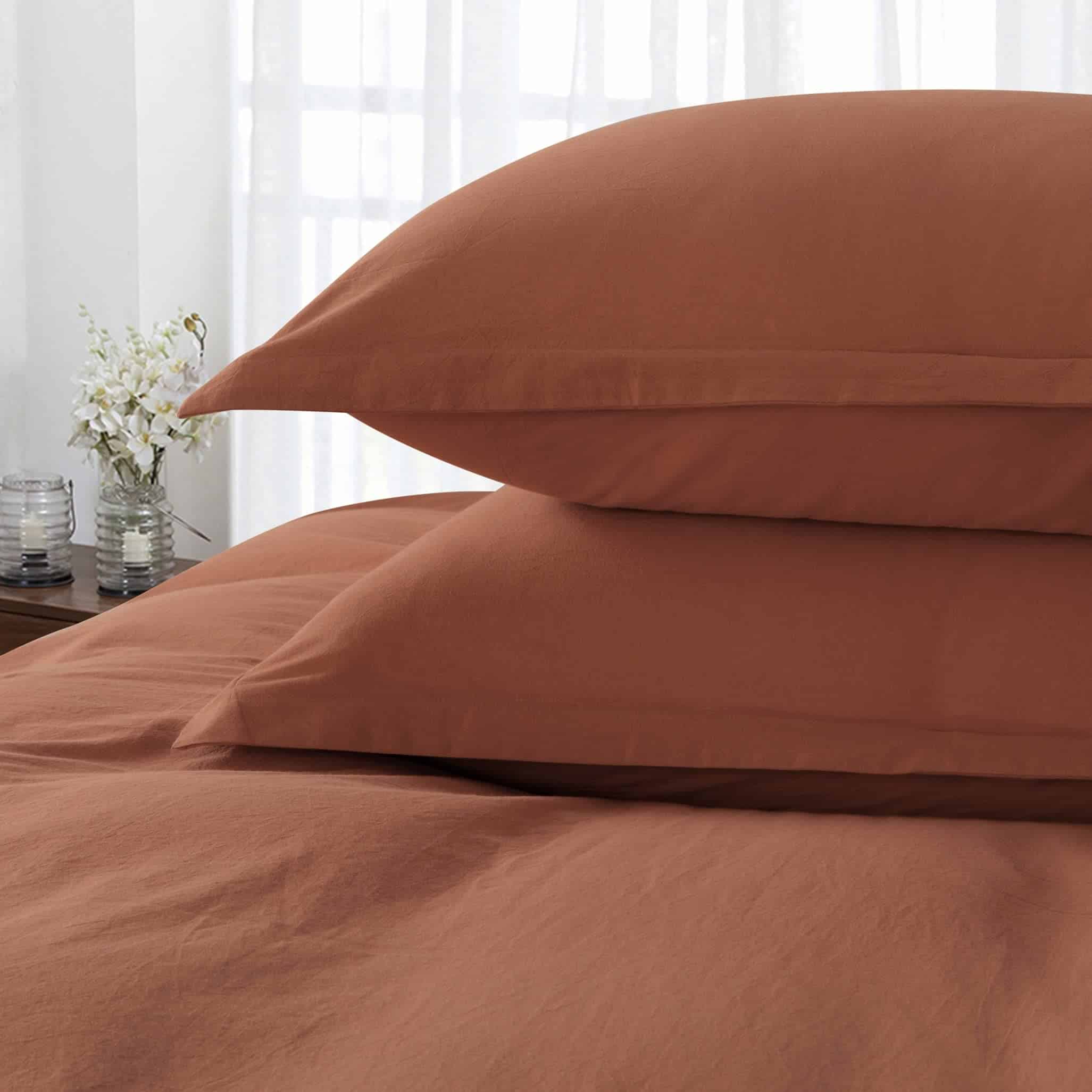 Juego de funda de edredón de algodón lavado a la piedra, con un aspecto relajado y casual. Proteja su inserto de edredón con una funda de edredón lavable y tela de algodón puro en tonos de naranja quemado, terracota, ámbar oscuro y arce. Variedad de colores sólidos mates. El set de 2 piezas incluye 1 funda de edredón tamaño Twin de 88 por 68 pulgadas, que incluye 1 almohada de 20 por 28 pulgadas. La funda de edredón cuenta con un cierre de botón oculto con lazos internos que mantienen el inserto en su lugar, y la almohada presenta un cierre de sobre. Cada componente de este producto, es decir, cada hilo, botón y otros accesorios, ha sido probado en busca de sustancias dañinas y, por lo tanto, el artículo es inofensivo para la salud humana. Nota: NO INCLUYE EDREDÓN.