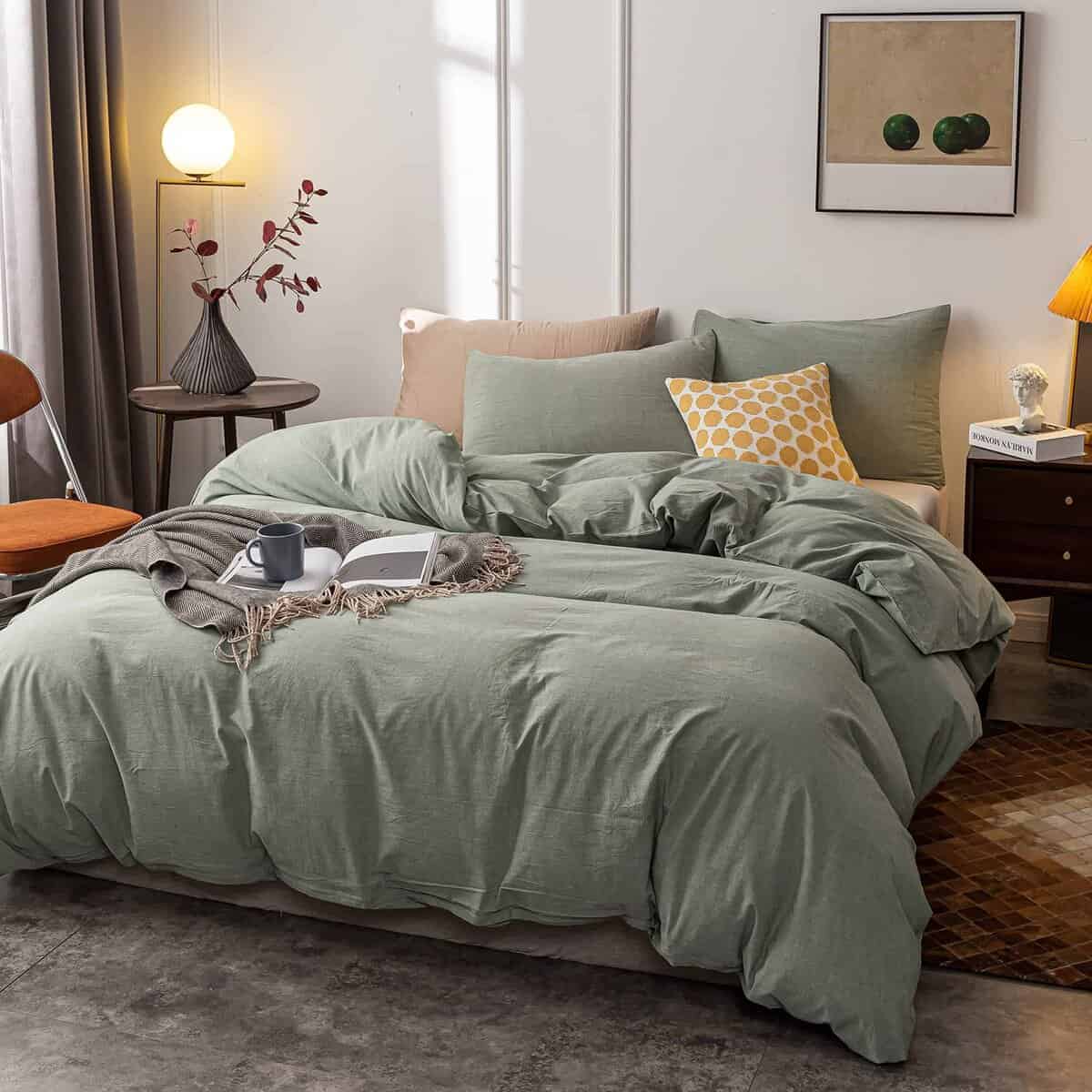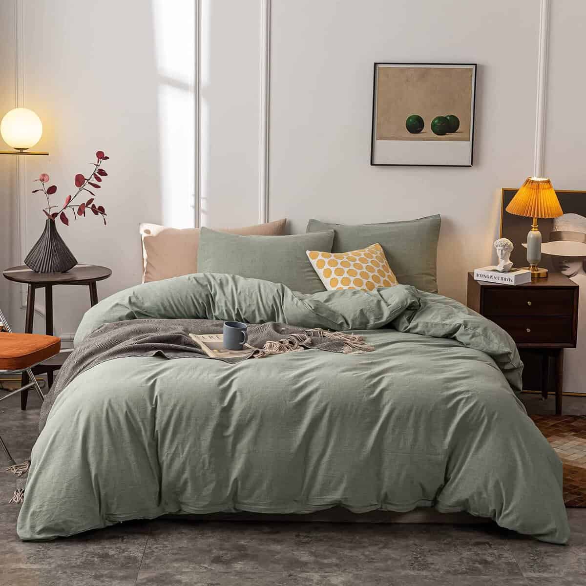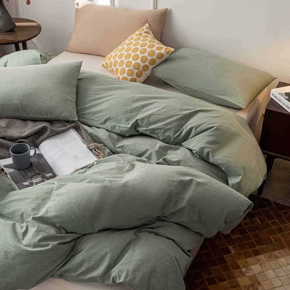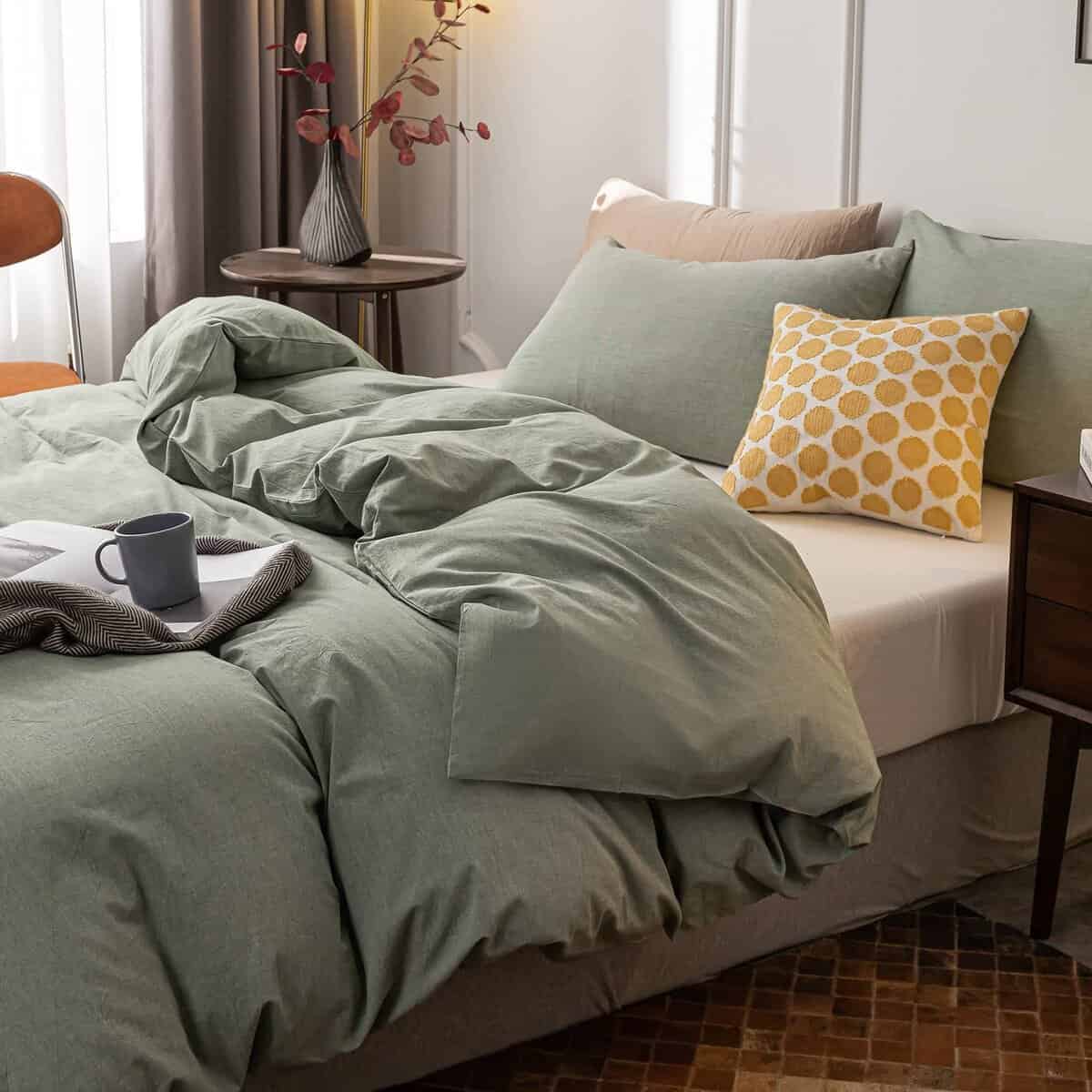 Juego de Funda de Edredón de Algodón Lavado para Cama Queen
