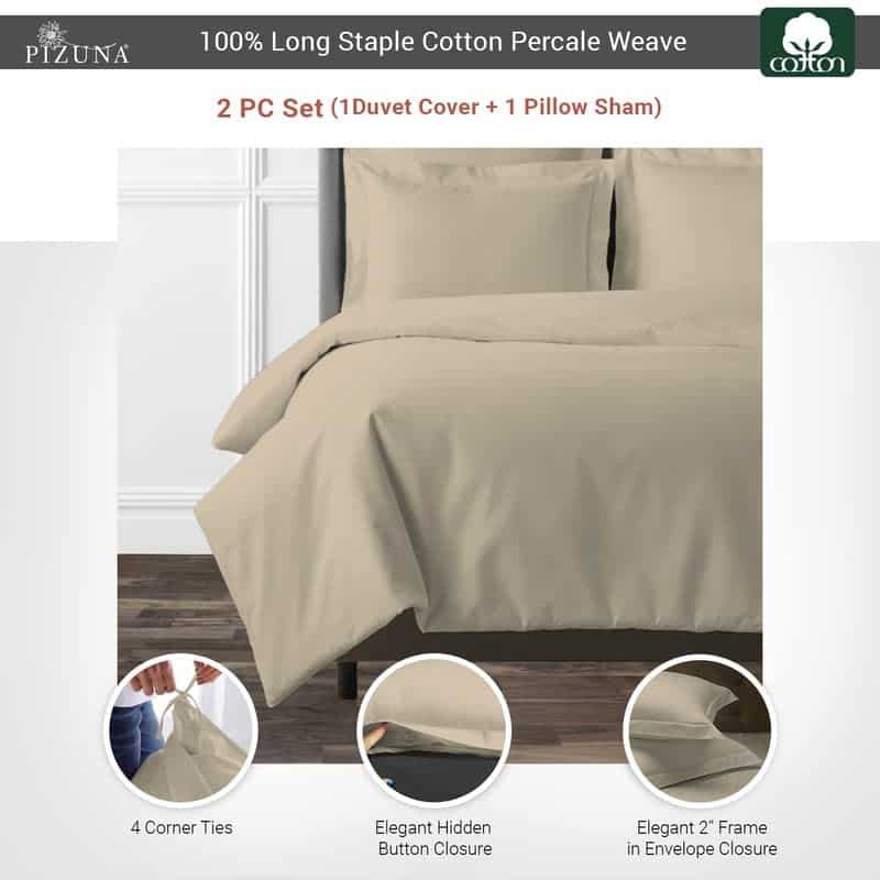 El juego incluye 1 funda de edredón percal individual (68 x 86 ) y 1 funda de almohada con elegantes volantes y cierre de sobre (20 x 26 ). Hecho de algodón mercerizado peinado 100% puro y natural, esta funda de edredón individual de percal de 210 hilos de Pizuna presenta un tejido percal cuadrado de un solo hilo. El algodón mercerizado y peinado hacen que esta funda de edredón individual de percal de algodón sea suave, resistente y crujiente. Las inspecciones rigurosas y los controles pieza por pieza son realizados por el equipo de Control de Calidad en Pizuna. Esta funda de edredón de percal de algodón está certificada por OEKO-TEX & AZO (2024), libre de sustancias sintéticas y respetuosa con el planeta, lo que la hace suave incluso para la piel más delicada. BSCI compatible, socialmente responsable y respetuoso con el medio ambiente, este juego de funda de edredón individual es lavable a máquina en un ciclo suave y secado a baja temperatura. El uso de lejía puede afectar a los colores. Diseñado para un mejor sueño, nuestros expertos en sueño internos estudian el comportamiento y los patrones de sueño del usuario, lo que resulta en una mejora del producto y un embalaje compacto. Disponible a nivel global en varios colores y tamaños, convierten estos juegos de ropa de cama de algodón en la opción de regalo perfecta para tus seres queridos.