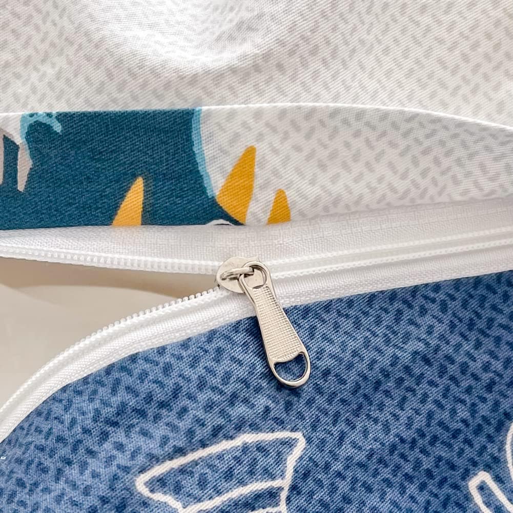 La funda de edredón tiene un cierre de cremallera metálica oculta extendida y 8 lazos interiores en las esquinas, lo que te permite anclar tu edredón dentro para evitar que se desplace