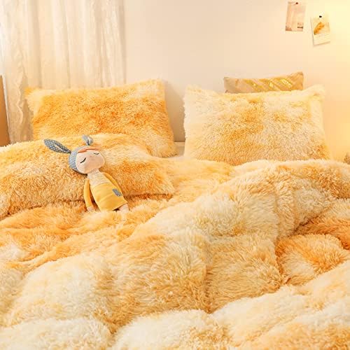 1. MATERIAL PREMIUM – El frente de la funda de edredón de piel sintética y la funda de almohada está hecha de tela de felpa de microfibra de poliéster 100 por ciento, y la parte trasera es de tela de terciopelo de cristal ultra suave. Resistente a las arrugas, resistente a la decoloración y anti-pilling. Agrega un toque de color elegante a tu habitación. También ofrece la mejor calidez y transpirabilidad cómoda. 2. MULTIUSO – En verano, esta funda de edredón ombre amarilla se puede usar como una manta para la cama sola para brindarte suficiente comodidad. En invierno, simplemente coloca el edredón o la colcha dentro de la funda de edredón de felpa y podrás abrazar fácilmente el calor sin temor al frío. 3. MEDIDAS Y PAQUETE – Full: 1 x funda de edredón 78″ x 90″, 2 x fundas de almohada 20″ x 26″. Queen: 1 x funda de edredón 90″ x 90″, 2 x fundas de almohada 20″ x 26″. King: 1 x funda de edredón 90″ x 104″, 2 x fundas de almohada 20″ x 36″. El edredón no está incluido. 4. ASPECTO ELEGANTE Y REGALO PERFECTO – Este juego de funda de edredón de felpa ombre amarillo de moda, exquisito y soñador puede dar sorpresas a cualquier habitación o sofá tuyo. Este hermoso juego de funda de edredón es un gran regalo para todos, en cualquier día festivo y ocasión especial. 5. LAVADO A MÁQUINA Y FÁCIL CUIDADO – Gira primero el lado de la felpa hacia adentro para evitar daños. Lavar a máquina en un ciclo suave o limpiar en seco. Secar a baja temperatura o secar en plano. Evita colgar para secar, de lo contrario causará deformación. No usar lejía. No planchar. Recomendamos lavar antes del primer uso porque saldrá un poco cuando el producto sea cortado y es más amigable con la piel.
