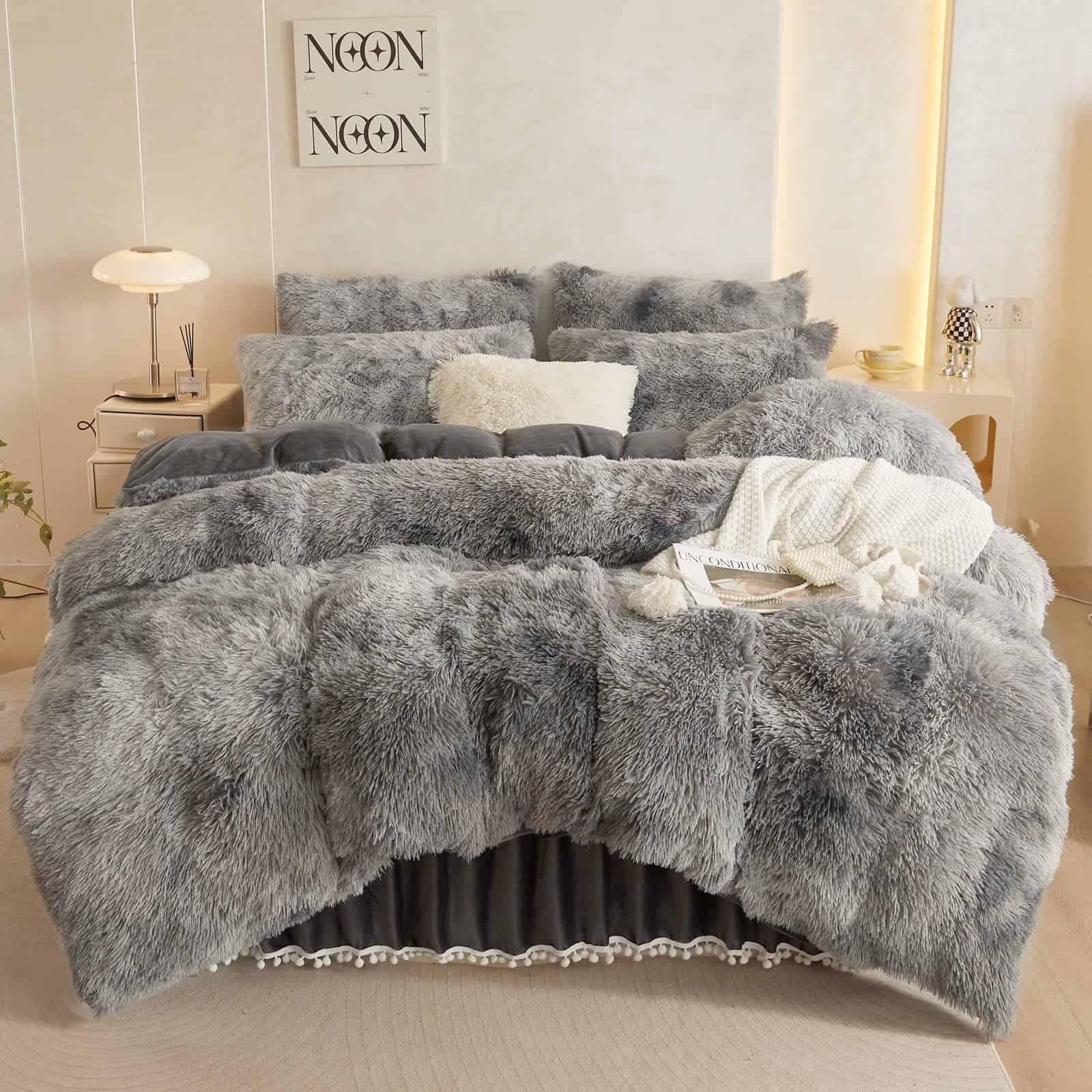 Juego de Funda de Edredón de Felpa HAIHUA para -Gris Oscuro