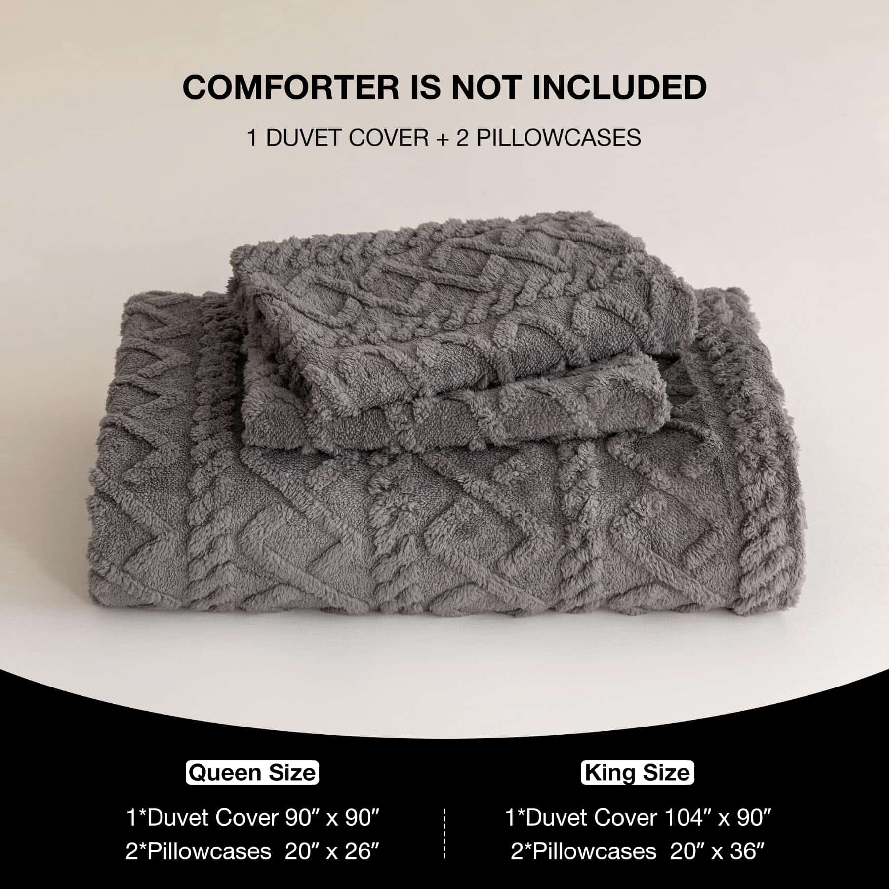 Funda de edredón peluda de Levoo de calidad premium. El material suave y esponjoso proporciona calidez constante en climas fríos y puede usarse como manta de cama en días calurosos. El diseño exquisito con patrones geométricos agrega elegancia a tu hogar. Incluye cremallera YKK y lazos de esquina para evitar que el edredón se amontone. Tamaño Queen que incluye funda de edredón de 90 x 90 y 2 fundas de almohada de 20 x 26. Instrucciones de cuidado: lavar a máquina con agua fría, secar suavemente a baja temperatura. ¡Un regalo perfecto para cualquier ocasión especial!