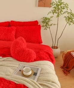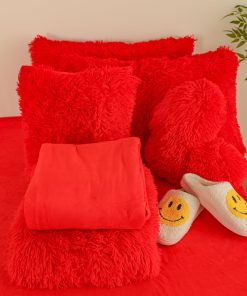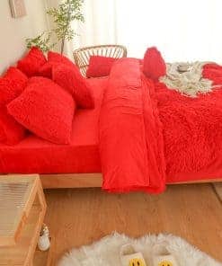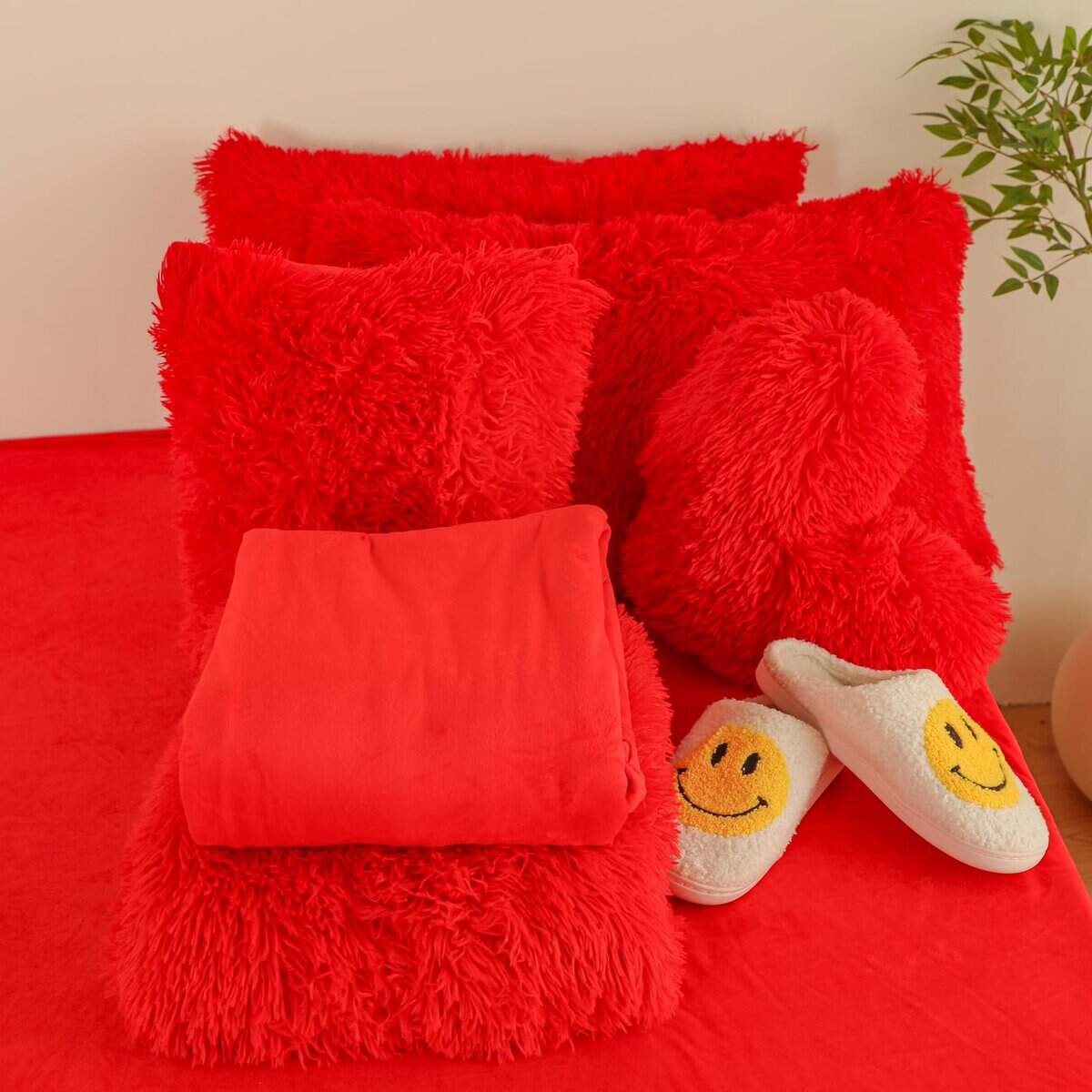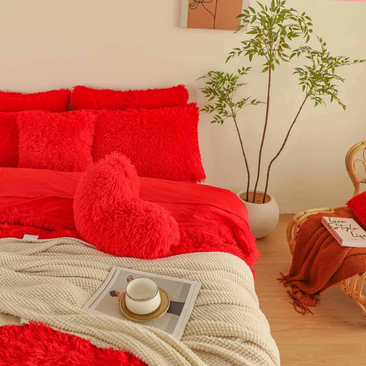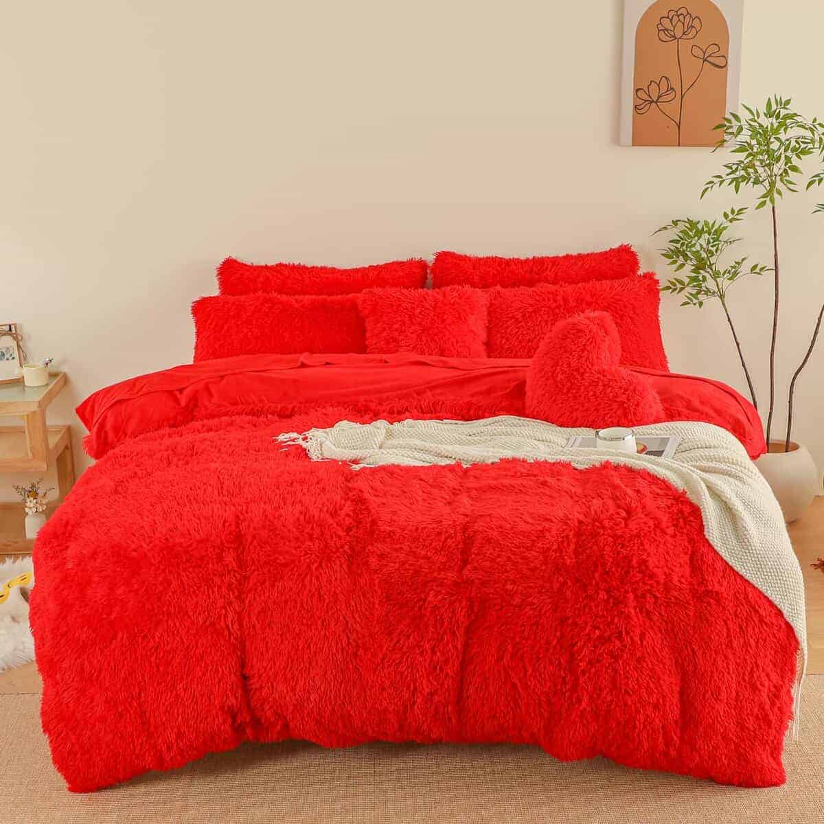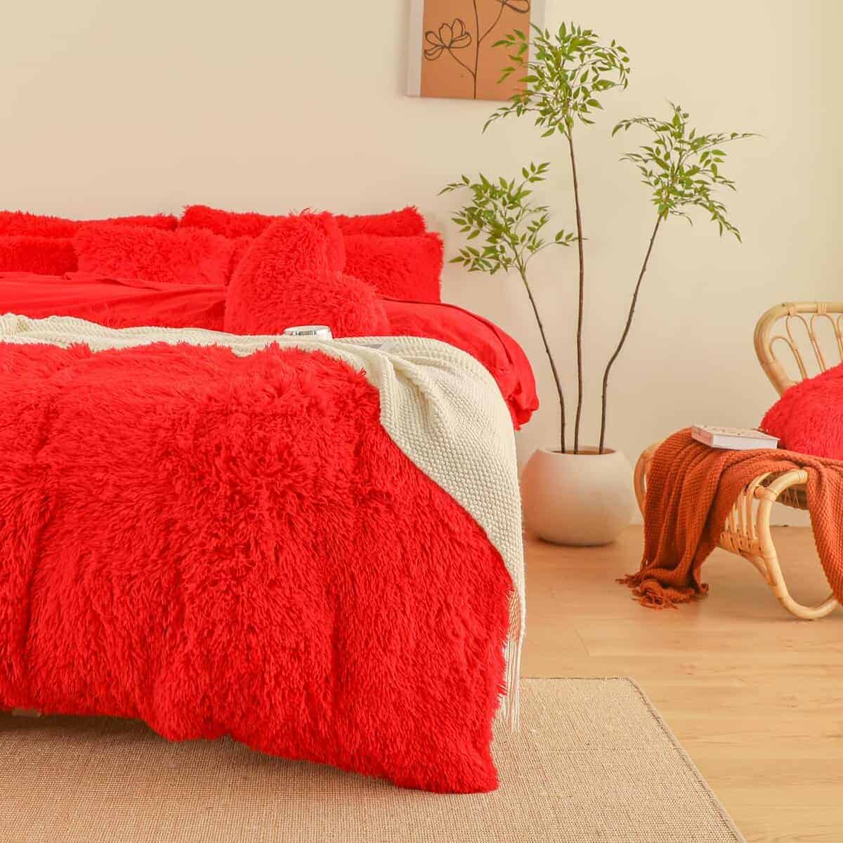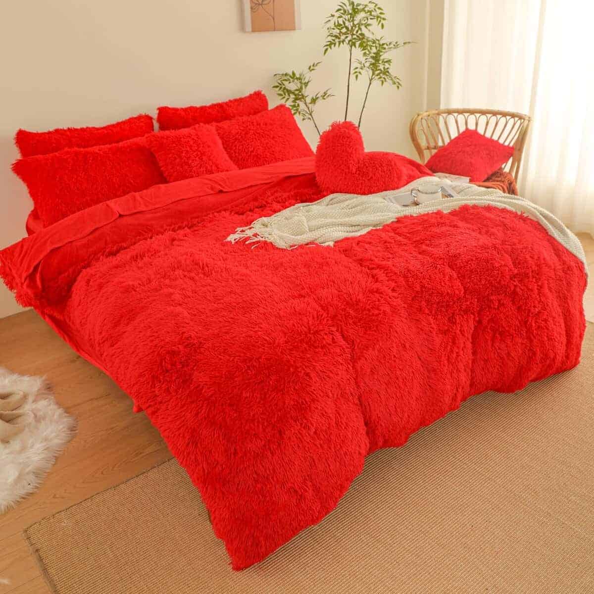 Juego de funda de edredón de felpa y peluche rojo HAIHUA
