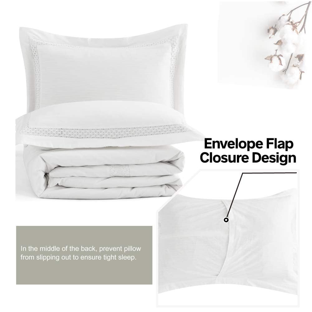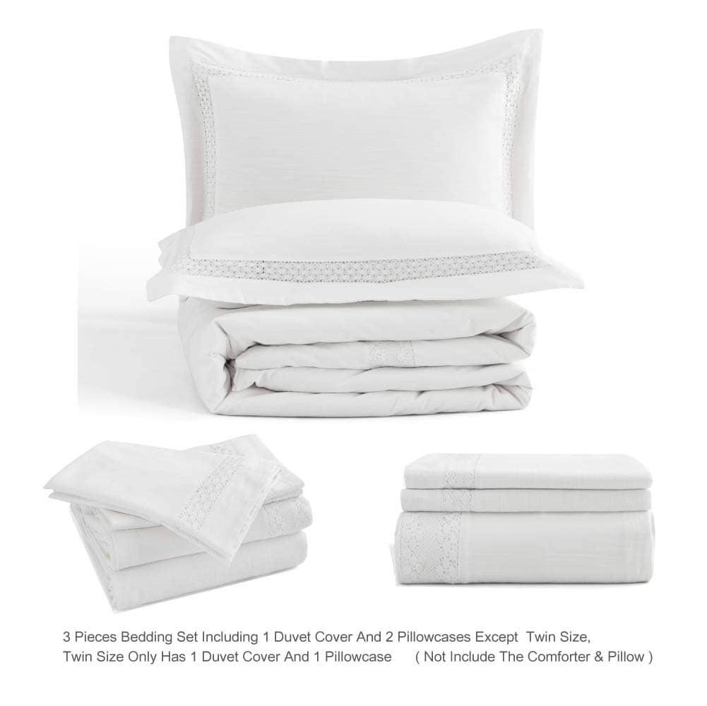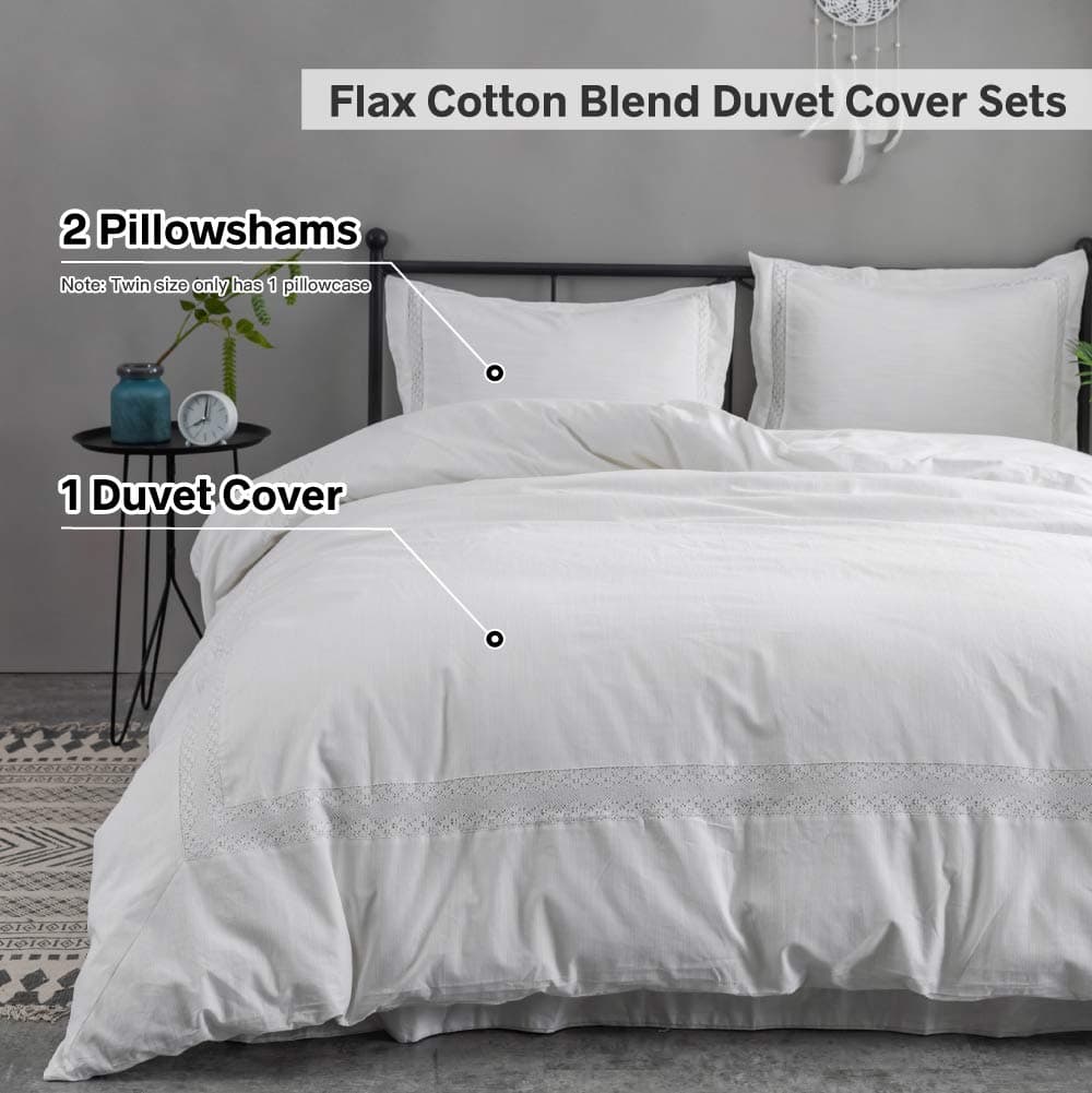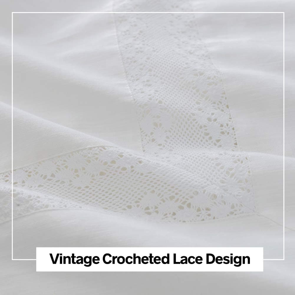 Juego de Funda de Edredón de Lino 3 piezas en Encaje Croché