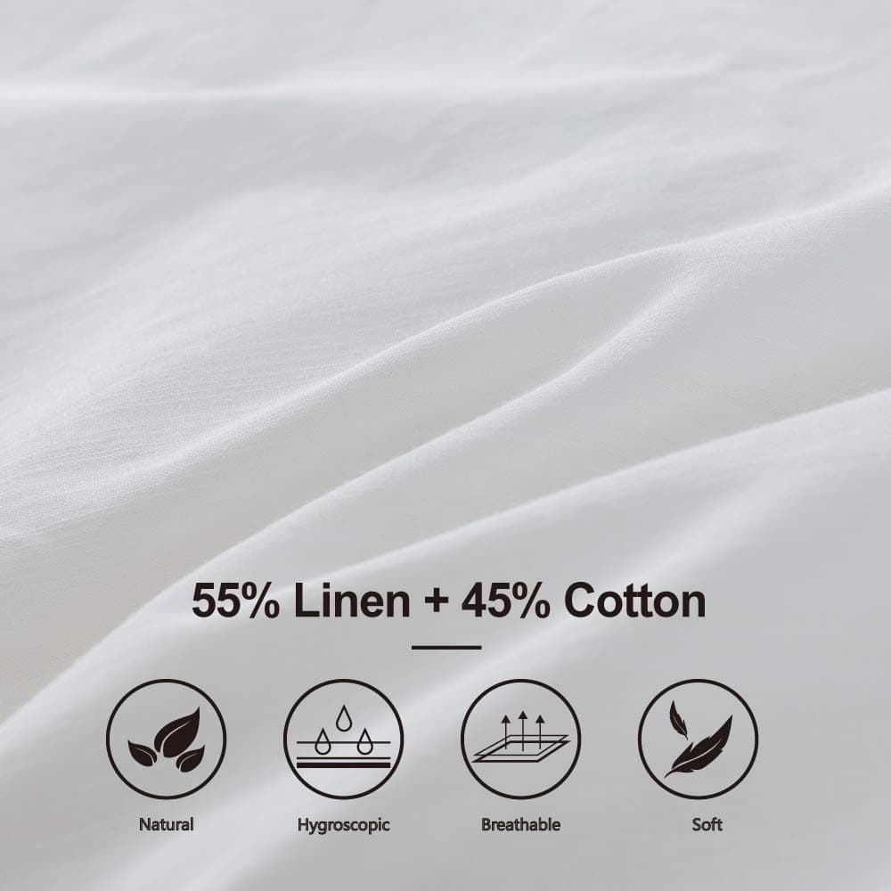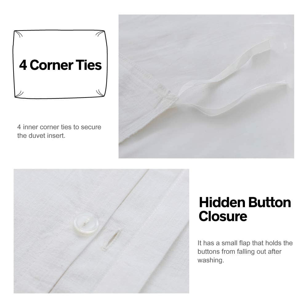 Este juego de funda de edredón está confeccionado con una mezcla de lino y algodón de alta calidad, lo que le brinda la suavidad del algodón y la resistencia del lino. El encaje croché francés le agrega un toque de elegancia y lujo a la decoración de tu habitación. El set King incluye una funda de edredón de tamaño generoso y dos fundas de almohada a juego para completar el look de tu cama. Además, la funda de edredón cuenta con cierre de botón y lazos internos para mantener tu edredón en su lugar y protegerlo del polvo. Es el regalo perfecto para diversas ocasiones, ya que es duradero, asequible y tiene un diseño elegante que se adapta a cualquier estilo. Nuestro servicio al cliente disponible 24/7 te brindará asistencia inmediata en caso de cualquier problema con el producto.