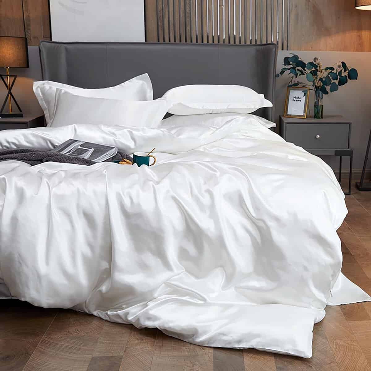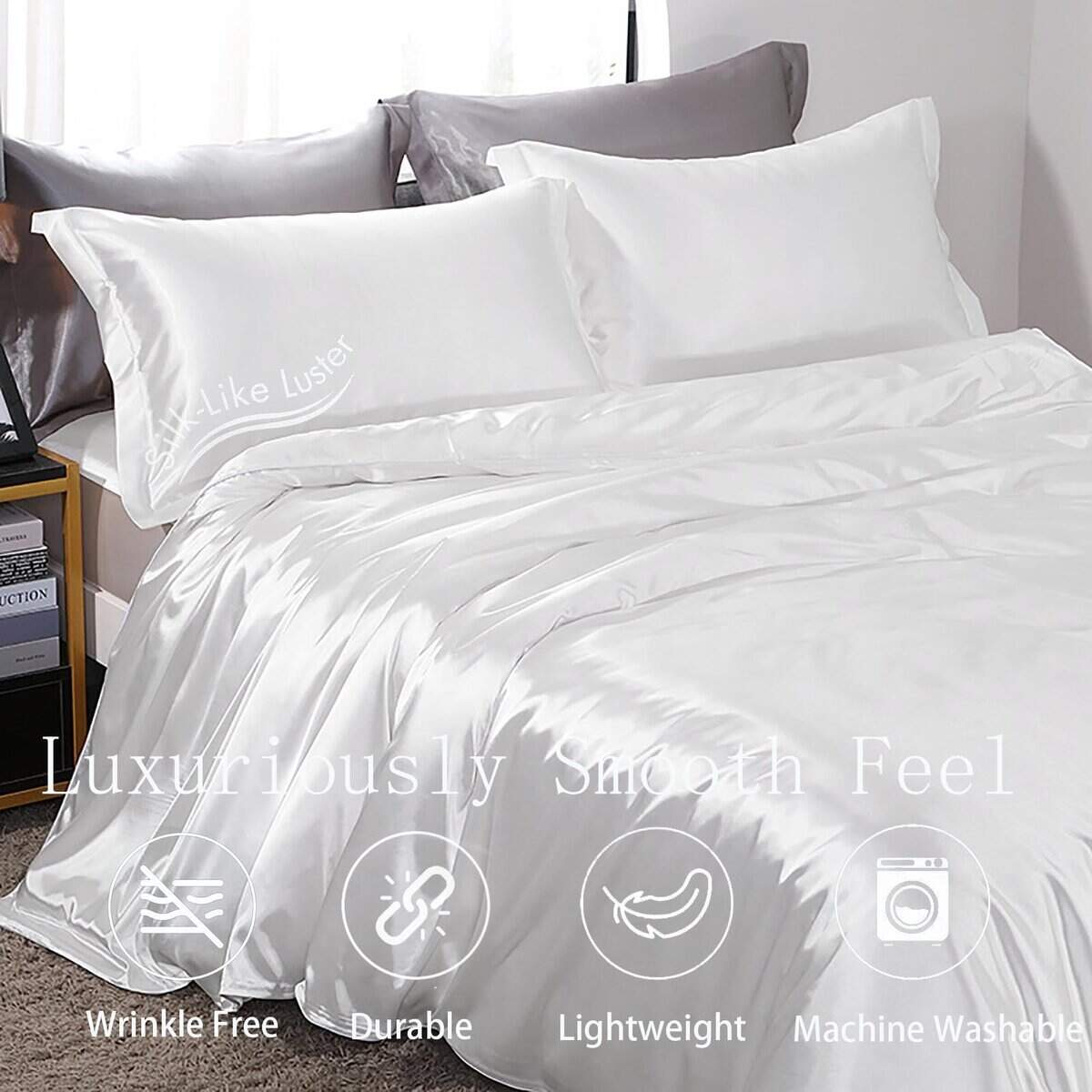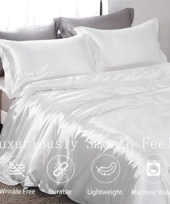 4. LO QUE RECIBES: El lujoso juego de funda de edredón satinado de 3 piezas incluye 1 funda de edredón satinada tamaño full/queen (90 x 90 ) y 2 fundas de almohada satinadas (20 x 30 ) (NOTA: ¡El edredón y las almohadas no están incluidos!). Cuatro lazos de esquina interiores aseguran la parte trasera del edredón en su lugar. Cierre de cremallera oculto para acceder fácilmente al edredón, manteniendo siempre limpio el edredón.