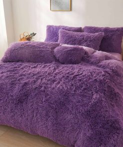 Juego de Funda de Edredón de Lujo Morado Oscuro Felpa FOPPA
