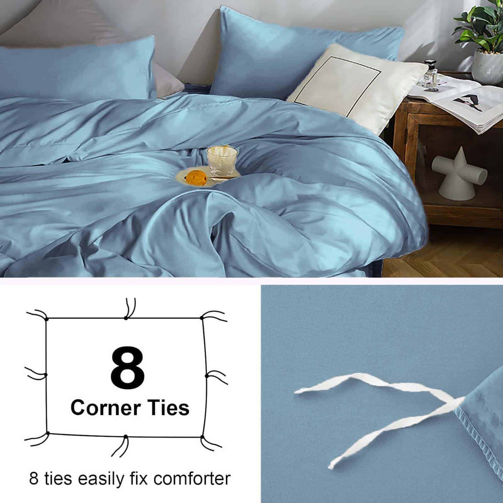 Detalles cuidadosos: Los ocho lazos en las esquinas dentro de la funda de edredón garantizan un ajuste seguro y previenen la acumulación de relleno. La cremallera puede sellar las mantas más rápido (y más fácil) que el cierre de botones tradicional