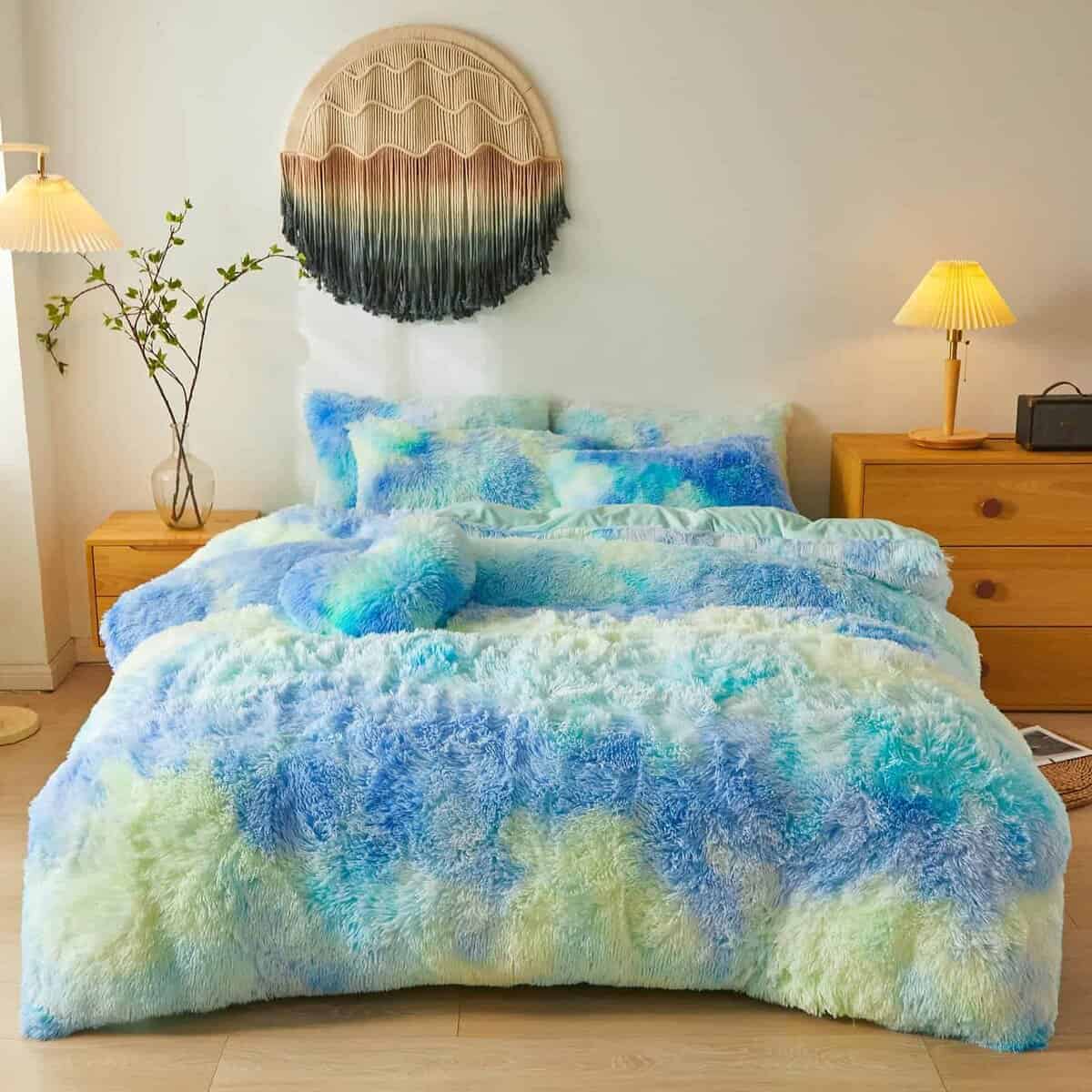 Delicado y soñador, este juego de funda de edredón de peluche de color verde menta con textura esponjosa combina tonos simples con un toque moderno, refrescando instantáneamente cualquier dormitorio o sofá. Las elegantes fundas de almohada añaden un efecto decorativo perfecto a este juego de funda de edredón de peluche con diseño de batik. El frente de la funda de edredón de peluche de color verde menta con diseño de batik está hecho de microfibra de poliéster 100% plush shaggy, y la parte trasera es de tela de terciopelo de cristal ultra suave. Aporta un toque de color elegante a tu habitación. Resistente a la decoloración, resistente a las arrugas y a las pelusas. También ofrece la mejor calidez y transpirabilidad cómoda. Cierre de cremallera oculta en la parte trasera de las fundas de almohada y en la parte inferior de la funda de edredón, fácil de limpiar, lazos en el interior para sujetar el edredón de forma segura en las esquinas. Instrucciones de cuidado: Lavar a máquina en agua fría en un ciclo delicado, dar la vuelta al exterior de peluche, secar en secadora a baja temperatura o secado al aire, no planchar. El juego de funda de edredón de peluche con diseño de batik de color verde menta es una gran opción para regalar a tu amor, a niños y niñas en diversas festividades como el Día de San Valentín y Navidad. Si tienes alguna necesidad o pregunta, por favor avísanos por correo electrónico (haz clic en ventas de Besfunny, y luego haz clic en preguntar) y te proporcionaremos una solución satisfactoria de manera oportuna. Tu experiencia de compra siempre será nuestra prioridad