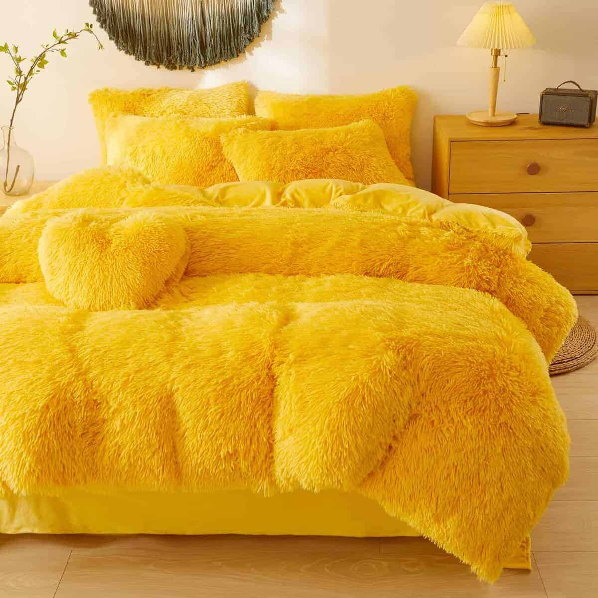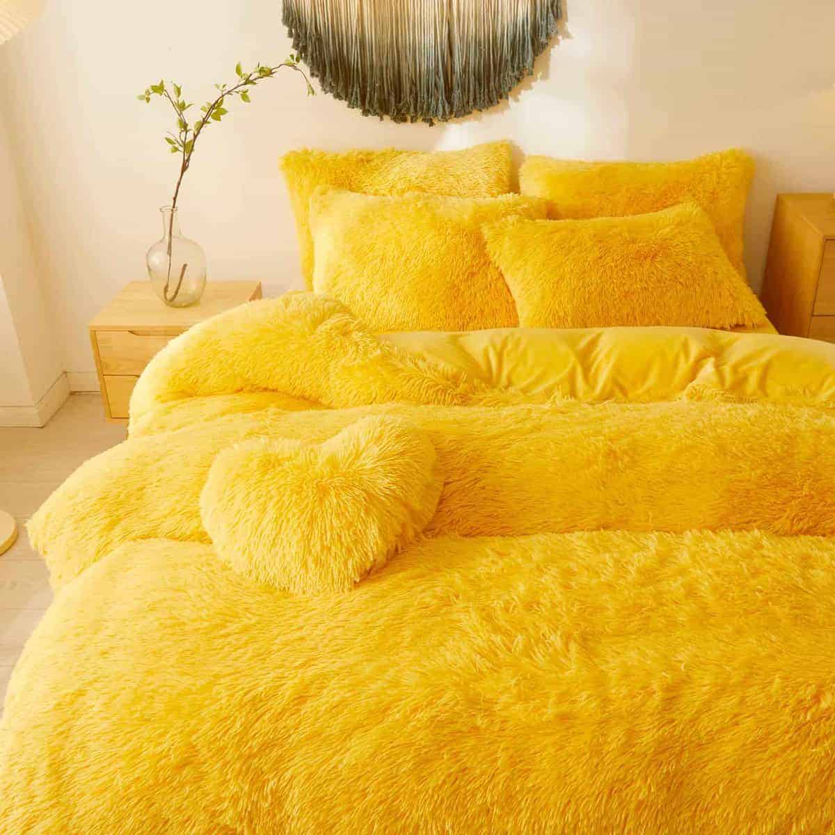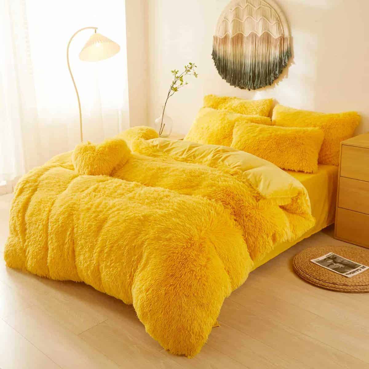 Juego de Funda de Edredón de Piel Sintética Amarilla, Ultra