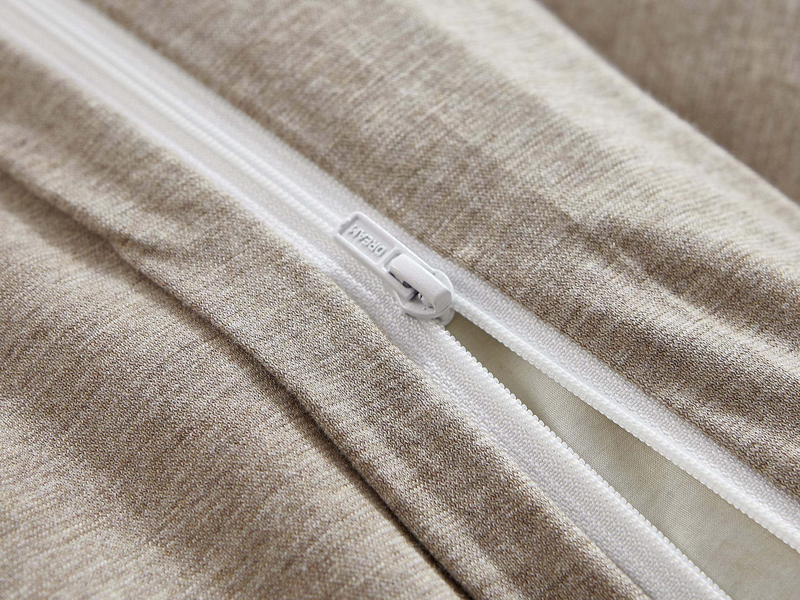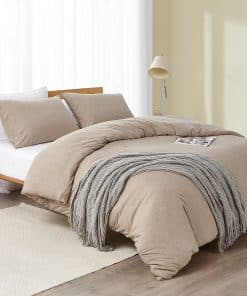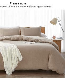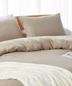 Material 100% algodón natural de punto de jersey con patrón de rayas brezo. La tela elástica tricotada tiene un tacto súper suave en la piel para una experiencia de dormir cómoda. Incluye 1 funda de edredón de tamaño Twin 68″ x 90″ y 1 funda de almohada 20″ x 26″. Cierre de cremallera y lazos en las esquinas para asegurar tu edredón en su lugar. Diseñado con hilo mélange para crear un efecto de color único. Fácil de cuidar, lavable a máquina, no usar blanqueador, secar en secadora a temperatura normal, planchar a temperatura media.